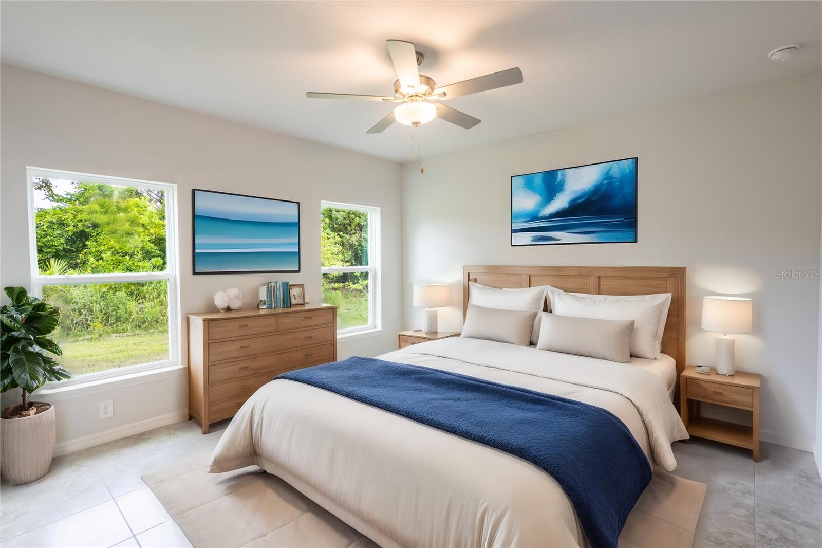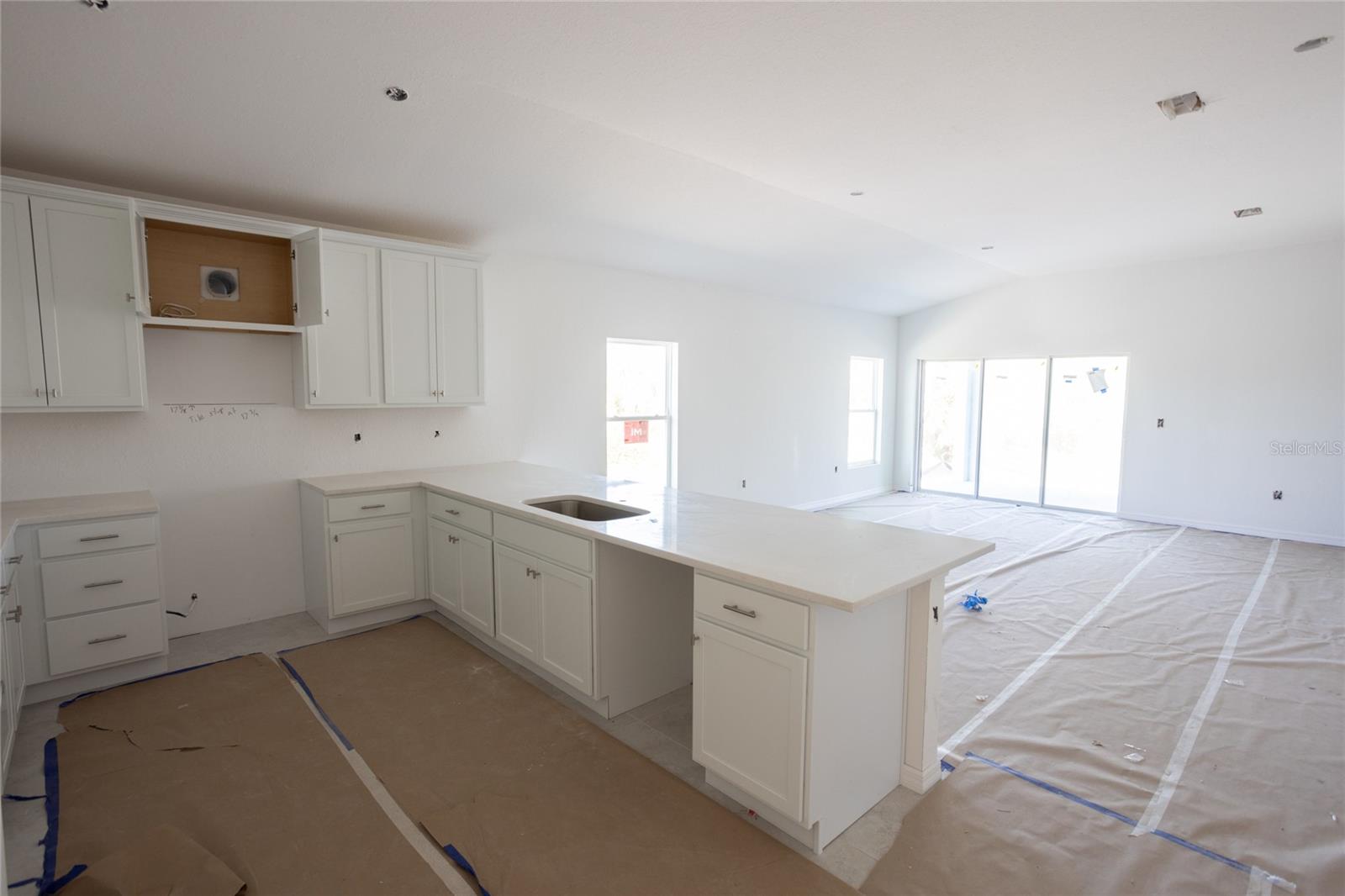 Under Construction. Elevate your lifestyle with the opulence of the Sanibel floorplan presented by Carpenter Homes—a masterpiece within the Florida Living Series, certified by the Florida Green Building Coalition (FGBC). This home features 4 bedrooms and 2 full bathrooms. This dream home is designed and built to immerse you in luxury! As you enter, a beautiful kitchen welcomes you, with an expansive, oversized bar that seamlessly flows into the living and dining area. The finesse of soft-close cabinets and upgraded quartz countertops add a functional touch of luxury to the kitchen. Kitchen upgrades include a Moen kitchen faucet, garbage disposal, and sleek stainless steel energy efficient appliances. This home exudes sophistication with a vaulted ceiling that unveils a covered lanai with 9-foot 3-panel sliding glass doors, creating an indoor-outdoor haven. Additionally, Carpenter Homes provides an upgraded lighting package including pendants over the kitchen bar, and vanity fixtures in both bathrooms, accenting the overall lighting design. Ceiling fans in each bedroom, as well as the great room, helps to circulate air flow and keep you cool in the Florida weather. Complimenting the expansive living area is Magnisi ceramic tile flooring. The Owner's suite is a sanctuary of indulgence, showcasing dual sinks, impeccably tiled walls in the shower, and a generously sized walk-in closet. The home boasts Magnisi upgraded tiled walls in in the second bath/shower, a quartz vanity top, and Moen faucets and shower/tub trim kits. The ampleness of this home continues with a utility room, and additions such as energy-efficient R-4.1 insulation on concrete exterior walls, Taexx tubes for pest control, and fabric hurricane shutters for every window. The Florida friendly landscaped yard is complemented by an irrigation system with a rain sensor to help maximize efficiency. The expansive 3-car garage, complete with 2 garage door openers and four remotes, not only provides ample space for your everyday needs but also ensures the utmost convenience and versatility for all your storage and parking requirements. Step into a world where extravagance meets eco-conscious living—your forever home awaits, a testament to timeless elegance and modern sustainability. Available to view any time.