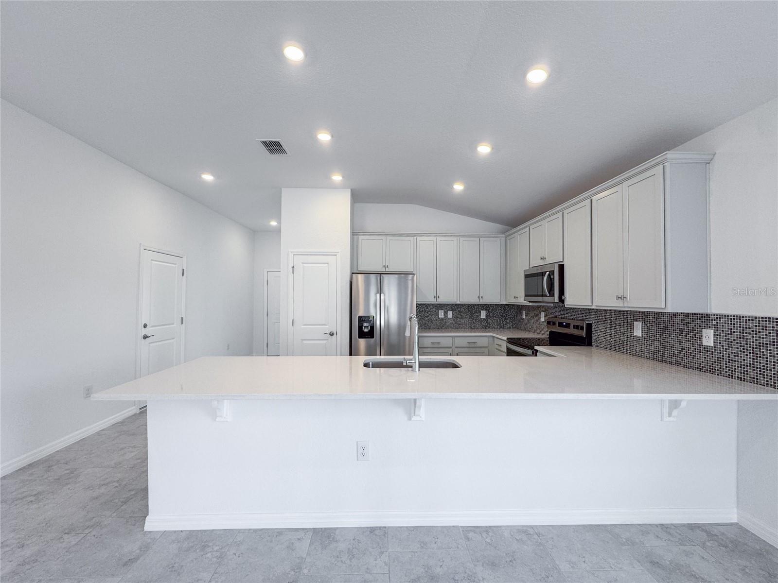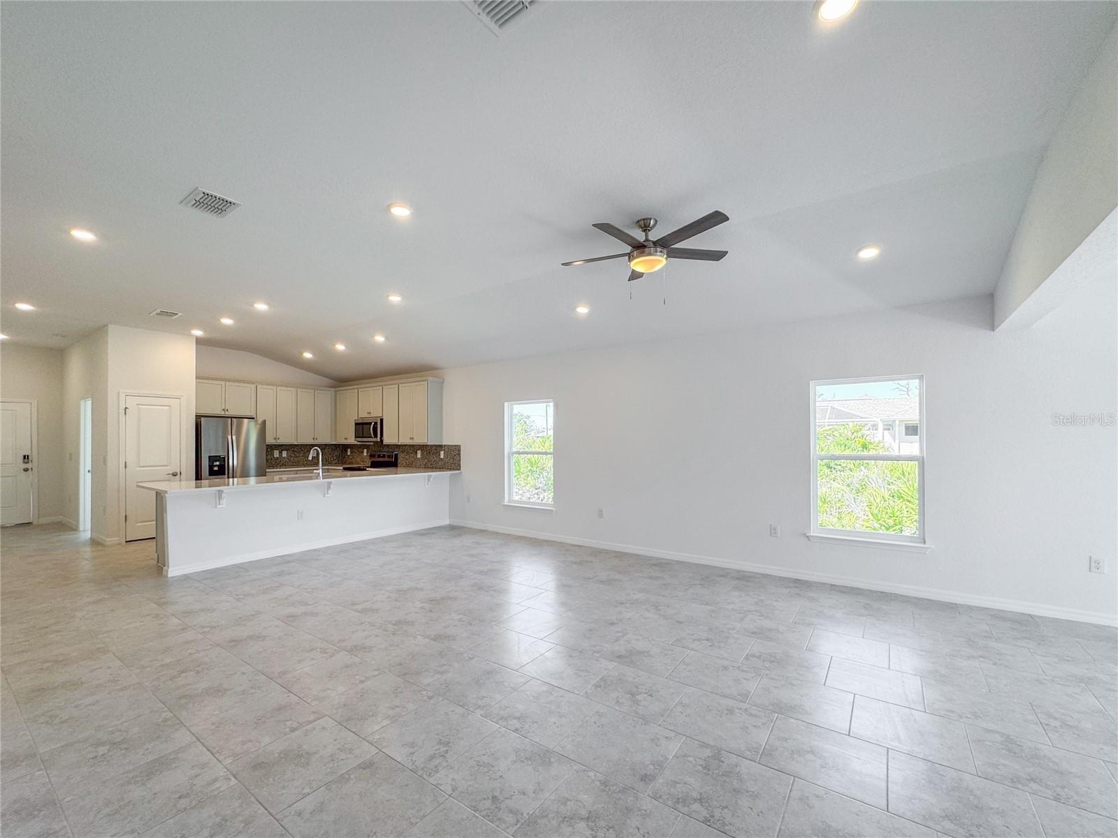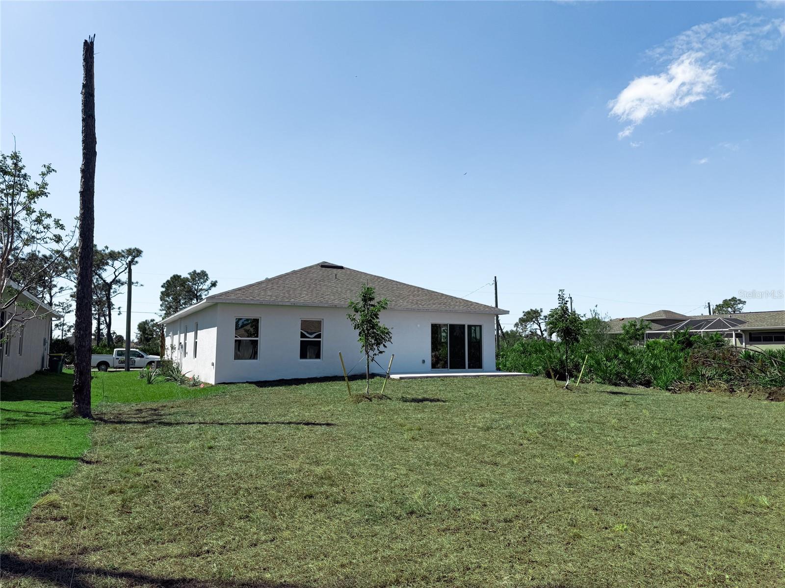 ***NEW CONSTRUCTION, MOVE-IN READY!*** Elevate your lifestyle with the opulence of the Sanibel II floorplan presented by Carpenter Homes—a masterpiece within the Florida Living Series, certified by the Florida Green Building Coalition (FGBC). This home features 4 bedrooms and 2 full bathrooms. This dream home is designed and built to immerse you in luxury. As you enter, a beautiful kitchen welcomes you, with an expansive, oversized bar that seamlessly flows into the living and dining area. The finesse of soft-close cabinets, Anatolia Bliss Mosiac backsplash, and upgraded quartz countertops add a functional touch of luxury to the kitchen. Kitchen upgrades include a Moen Sleek chrome kitchen faucet, garbage disposal, and sleek stainless steel energy efficient appliances. This home exudes sophistication with a vaulted ceiling that unveils a spacious Florida room, creating an indoor/outdoor haven. Additionally, Carpenter Homes provides an upgraded brushed nickel lighting package including pendants over the kitchen bar, and vanity fixtures in both bathrooms, accenting the overall lighting design. Brushed nickel finish ceiling fans in each bedroom, as well as the great room, helps to circulate air flow and keep you cool in the Florida weather. Complimenting the expansive living area is ceramic plank flooring. The Owner's suite is a sanctuary of indulgence, showcasing dual sinks, impeccably tiled Magnisi 8x12” walls in the shower, and a generously sized walk-in closet. The home boasts Magnisi upgraded tiled walls in in the second bath/shower, a quartz vanity top, and Moen Genta chrome faucets and shower/tub trim kits. The ampleness of this home continues with a utility room, and additions such as energy-efficient R-4.1 insulation on concrete exterior walls, Taexx tubes for pest control, and fabric hurricane shutters for every window. The Florida friendly landscaped yard is complemented by an irrigation system with a rain sensor to help maximize efficiency. The expansive 2-car garage, complete with garage door opener and two remotes, not only provides ample space for your everyday needs but also ensures the utmost convenience and versatility for all your storage and parking requirements. Step into a world where extravagance meets eco-conscious living—your forever home awaits you, a testament to timeless elegance and modern sustainability! Available to view any time.