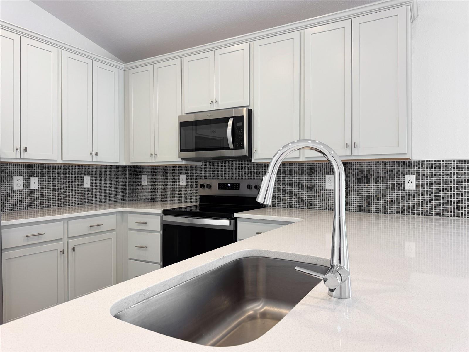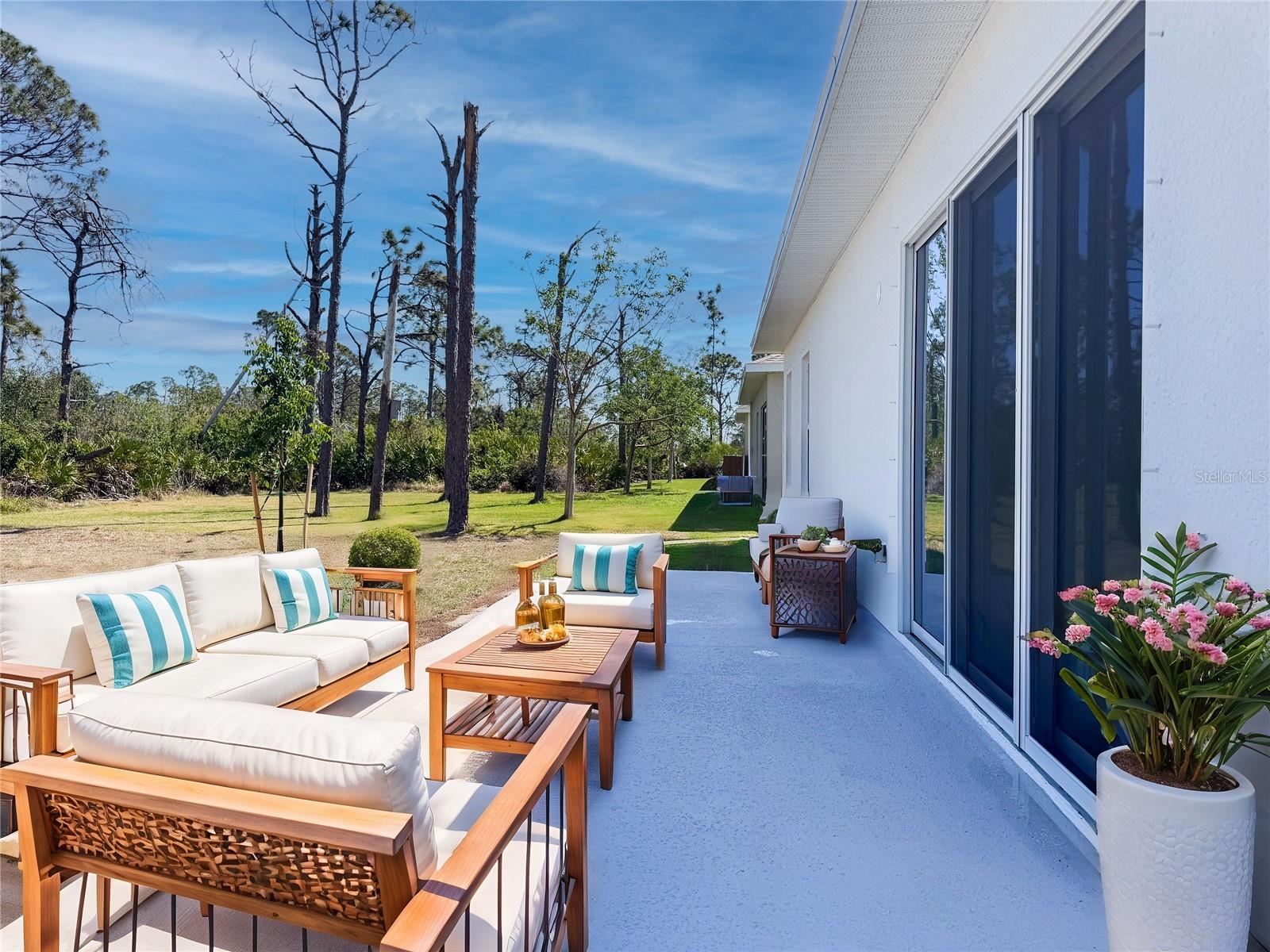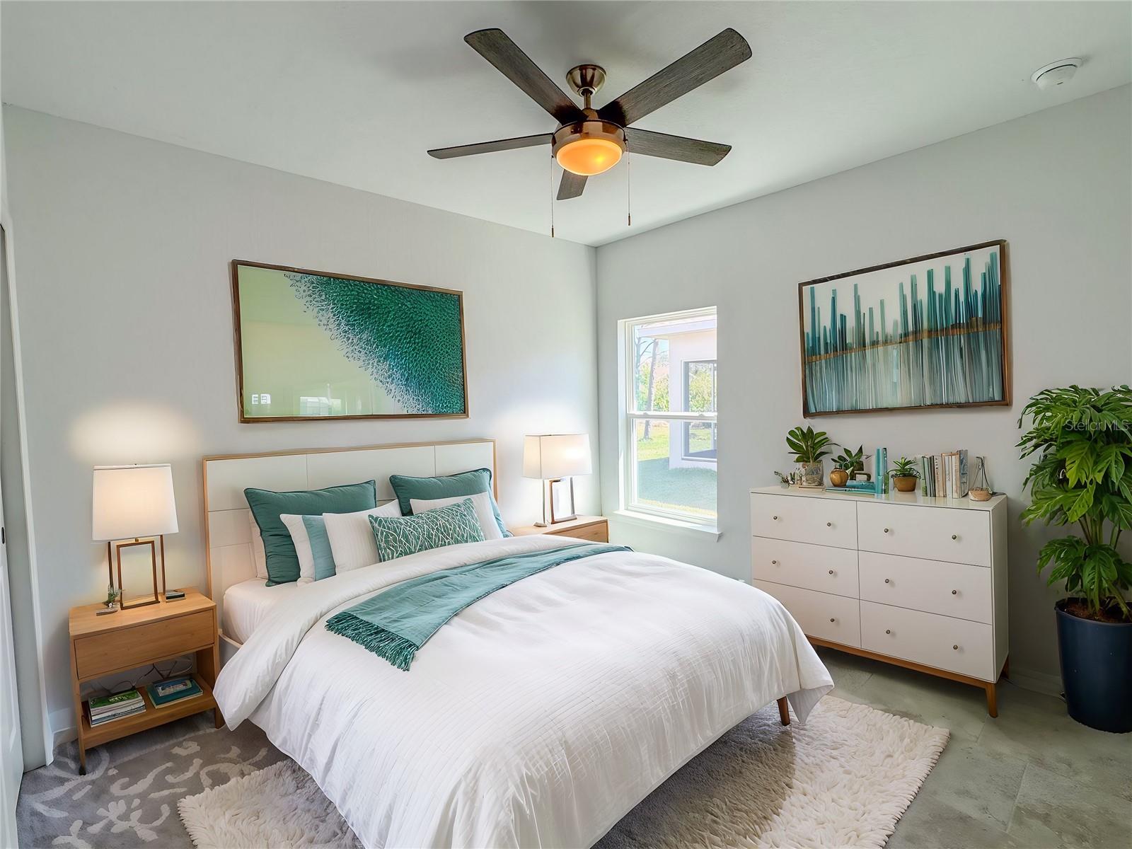 ***NEW CONSTRUCTION, MOVE-IN READY!*** Elevate your lifestyle with the opulence of the Sanibel II floorplan presented by Carpenter Homes—a masterpiece within the Florida Living Series, certified by the Florida Green Building Coalition (FGBC). This home features 4 bedrooms and 2 full bathrooms. This dream home is designed and built to immerse you in luxury. As you enter, a beautiful kitchen welcomes you, with an expansive, oversized bar that seamlessly flows into the living and dining area. The finesse of soft-close cabinets, Anatolia Bliss Mosiac backsplash, and upgraded quartz countertops add a functional touch of luxury to the kitchen. Kitchen upgrades include a Moen Sleek chrome kitchen faucet, garbage disposal, and sleek stainless steel energy efficient appliances. This home exudes sophistication with a vaulted ceiling that unveils a spacious Florida room, creating an indoor/outdoor haven. Additionally, Carpenter Homes provides an upgraded brushed nickel lighting package including pendants over the kitchen bar, and vanity fixtures in both bathrooms, accenting the overall lighting design. Brushed nickel finish ceiling fans in each bedroom, as well as the great room, helps to circulate air flow and keep you cool in the Florida weather. Complimenting the expansive living area is ceramic plank flooring. The Owner's suite is a sanctuary of indulgence, showcasing dual sinks, impeccably tiled Magnisi 8x12” walls in the shower, and a generously sized walk-in closet. The home boasts Magnisi upgraded tiled walls in in the second bath/shower, a quartz vanity top, and Moen Genta chrome faucets and shower/tub trim kits. The ampleness of this home continues with a utility room, and additions such as energy-efficient R-4.1 insulation on concrete exterior walls, Taexx tubes for pest control, and fabric hurricane shutters for every window. The Florida friendly landscaped yard is complemented by an irrigation system with a rain sensor to help maximize efficiency. The expansive 2-car garage, complete with garage door opener and two remotes, not only provides ample space for your everyday needs but also ensures the utmost convenience and versatility for all your storage and parking requirements. Step into a world where extravagance meets eco-conscious living—your forever home awaits you, a testament to timeless elegance and modern sustainability! Available to view any time.
