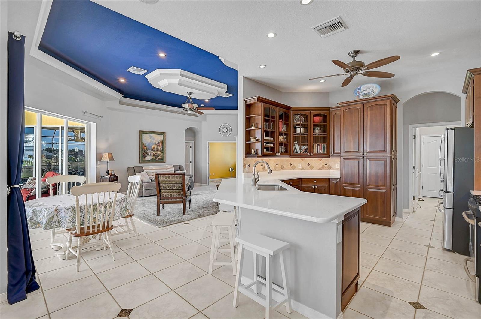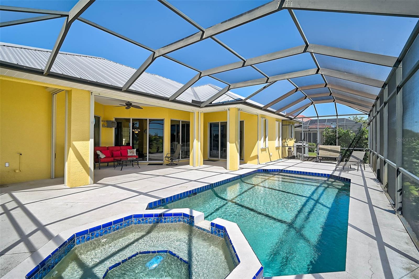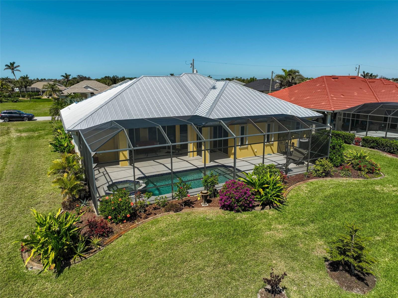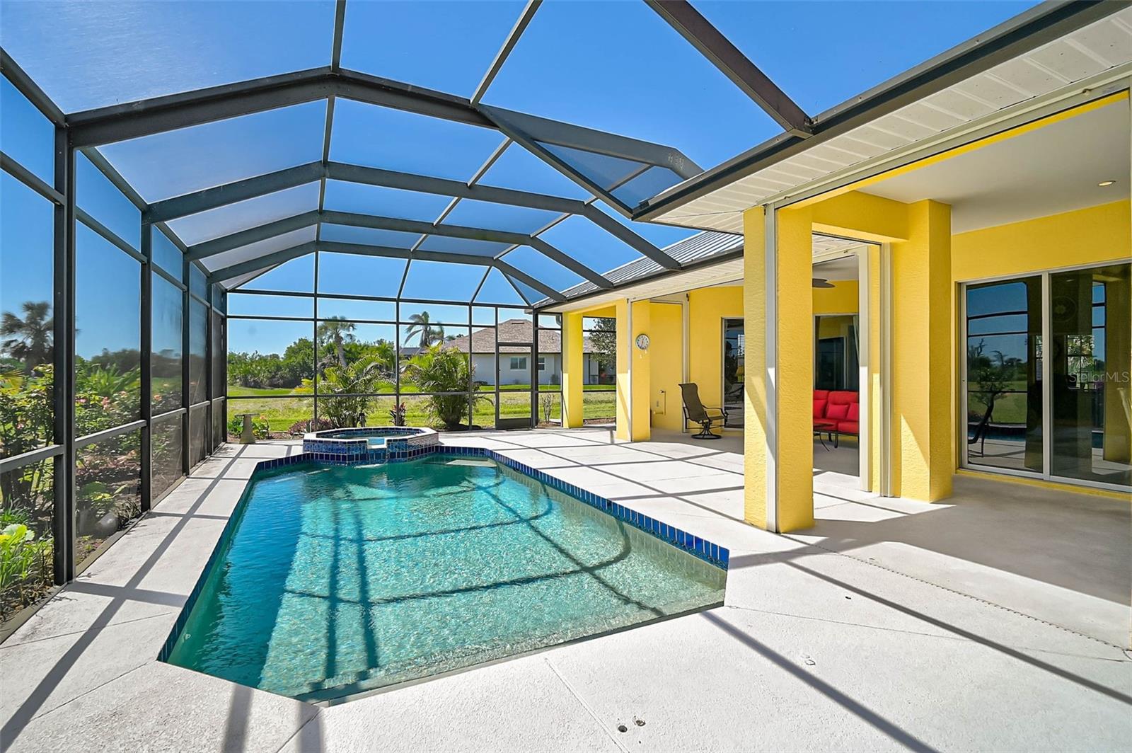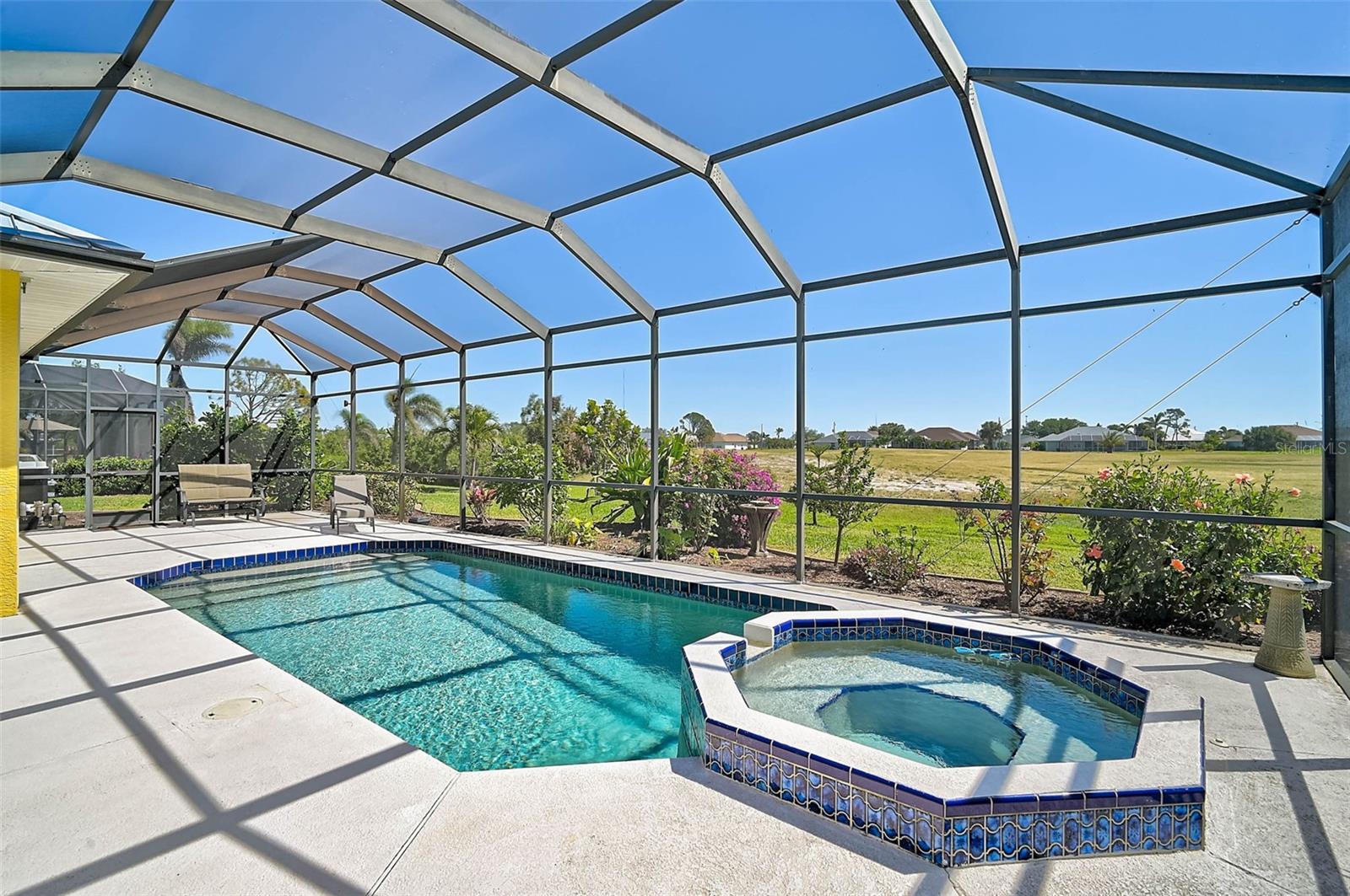 Find your Private Oasis in this Beautifully Maintained 3 Bed, 3 Bath, Open Concept Beauty with Heated Pool and Jacuzzi with Panoramic Golf Course Views! Worry-Free with NO FLOOD INSURANCE Required and so many updates! - New HVAC -- New White Stone Kitchen Countertops -- New Top-End Dishwasher -- New Refrigerator -- New Electric Pool Heater -- Fresh Exterior Paint -- 40-Year Standing Seam Metal Roof in 2023 -- Electric Smart Storm Screens on Lanai and Accordion Hurricane Shutters in 2020 for storm protection and reduced Homeowners Insurance. Located in a quiet part of Rotonda West, which offers something for everyone, both community-planned or for the individual. There's so much more. Come see for yourself. Check out the virtual tours and schedule a private showing today.