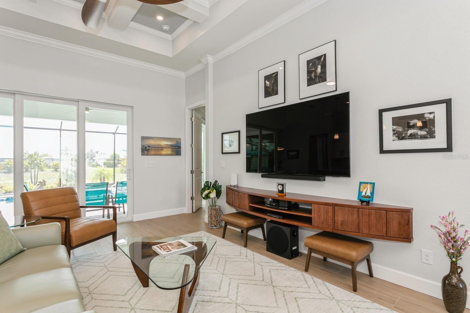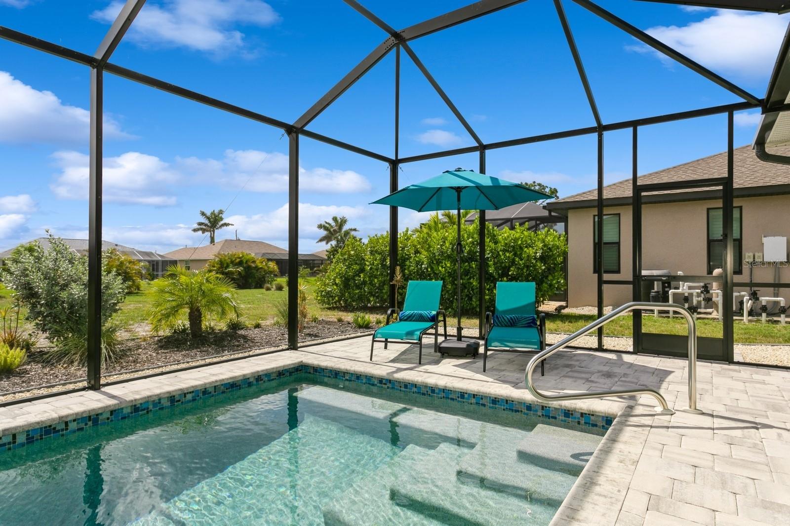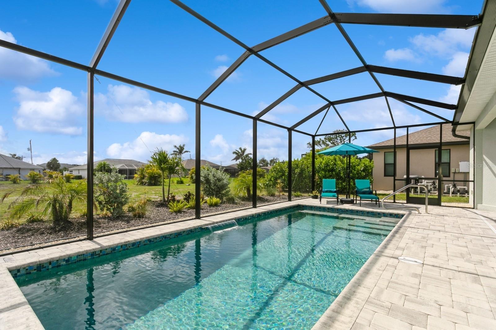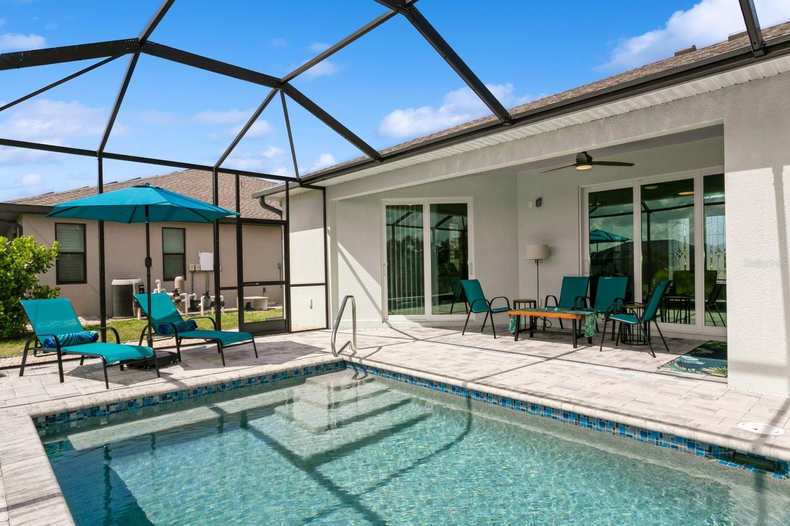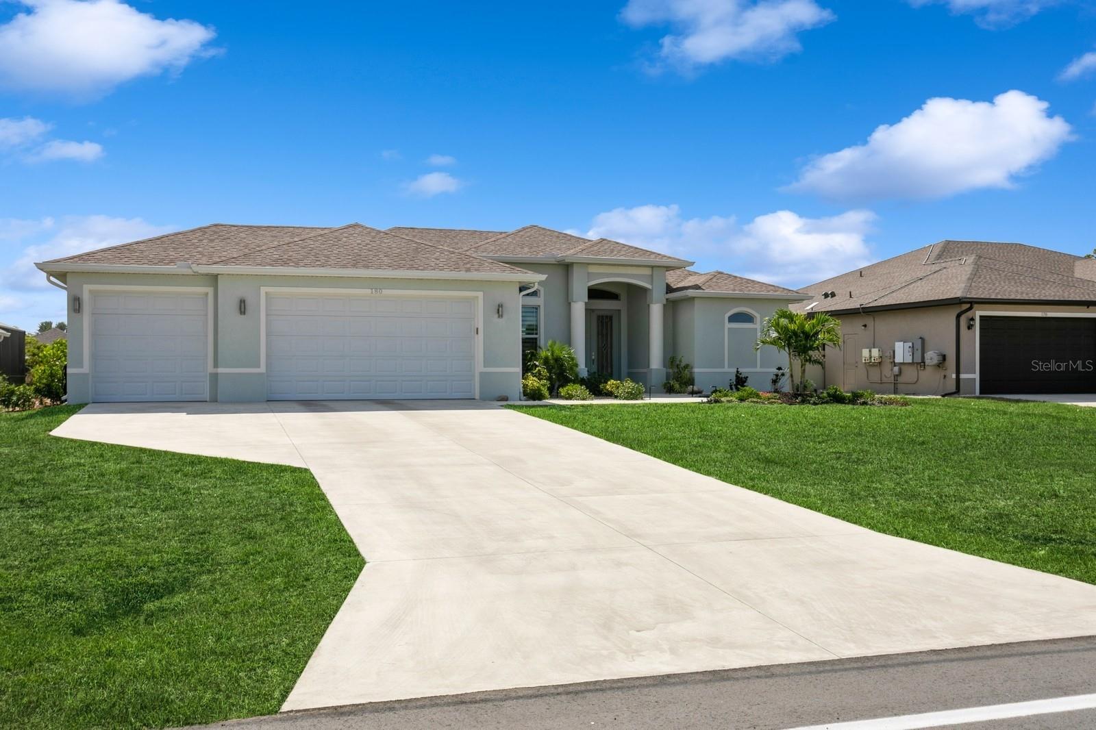 BETTER THAN NEW! Don’t wait to build--you can move right into this stunning 2.5 yr old custom-built contemporary pool home featuring multiple builder and owner upgrades in the highly sought-after golfing community of Rotonda West, set back on prestigious Rotonda Blvd North! With an oversized 80’ x 200’, .37-acre homesite in preferred X flood zone, this young, tastefully-designed open-concept home boasts a bright and open contemporary split floor plan. This design separates the primary suite from bedrooms 2 & 3 with guest bath, ensuring privacy on opposite sides of the home’s main living area. Step through the barrier-free glass double doorway into the soaring vestibule and gaze through the main living area, out to the inviting lanai and glistening heated saltwater pool. Notice the soaring ceilings with contrasting color and double crown molding trim package. Contemporary custom high-efficiency lighting & fans, main coffered ceiling with extra lighting, bedroom pan ceilings, 8’ doors, multiple pocket doors, 90-degree sliders, 5 ¼” base trim and sleek wood plank porcelain tile floors throughout the home. This truly is a chef’s kitchen, equipped with luxury GE Profile stainless steel appliances, self-closing cabinetry, in-cabinet Shelf Genie slide-out shelves, large island (50” D x 9’9.5” L) with seating and cabinet storage on both sides. Beautiful level 3 Quartzite countertops throughout the house, with custom tile backsplash in kitchen. Primary suite bathroom features an oversized “car wash” shower with matching benches, porcelain tile, decorative tile accents, sealed stone floor, plus a separate and luxurious soaking tub. Double-pane insulated impact hurricane-resistant glass windows and doors throughout provide effortless protection without shutters. Appreciate the spacious 3-car garage w/custom epoxy & Polyaspartic floor coating, along with the home’s new roof (Feb 2023) w/upgraded water-resistant barrier for an extra protection layer. Custom 11’x25’ pool features a durable Pebbletech coating, decorative & reflective tile and arch waterfall with paver surround, 1.8 variable speed pump, heater, outdoor shower and 18’x37’ pool cage with adjoining paver patio and walkway. Decorative Kustom Kurbing, stone and new custom landscaping and lighting envelop the entire house. Pride of ownership shines brightly; Furnishings negotiable, Newly installed front and back yard Irrigation system, matching set of LG front load washer & dryer with drawer pedestals, schedule an appointment today!