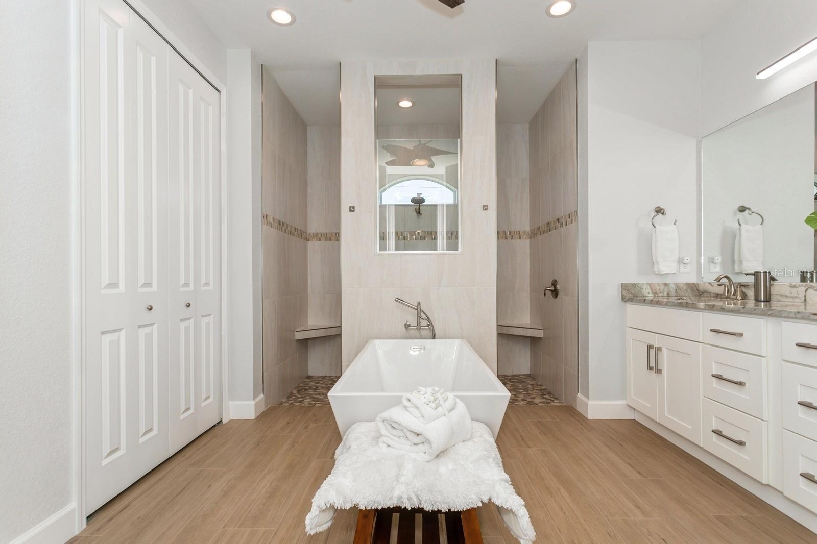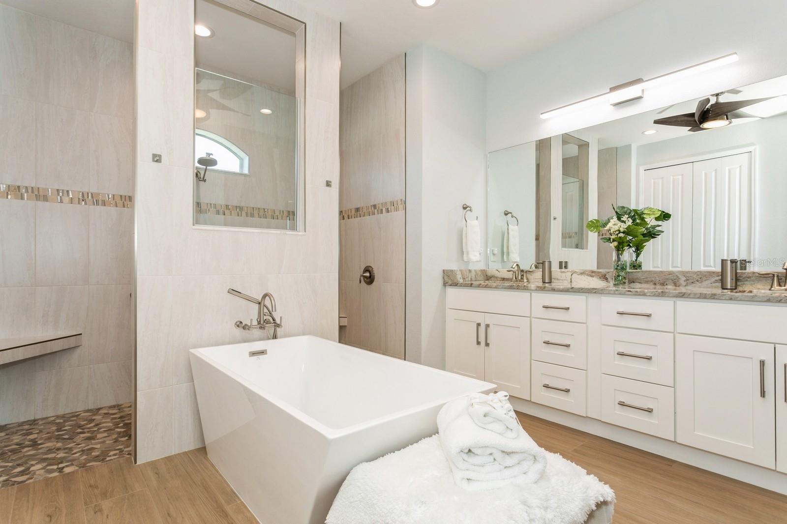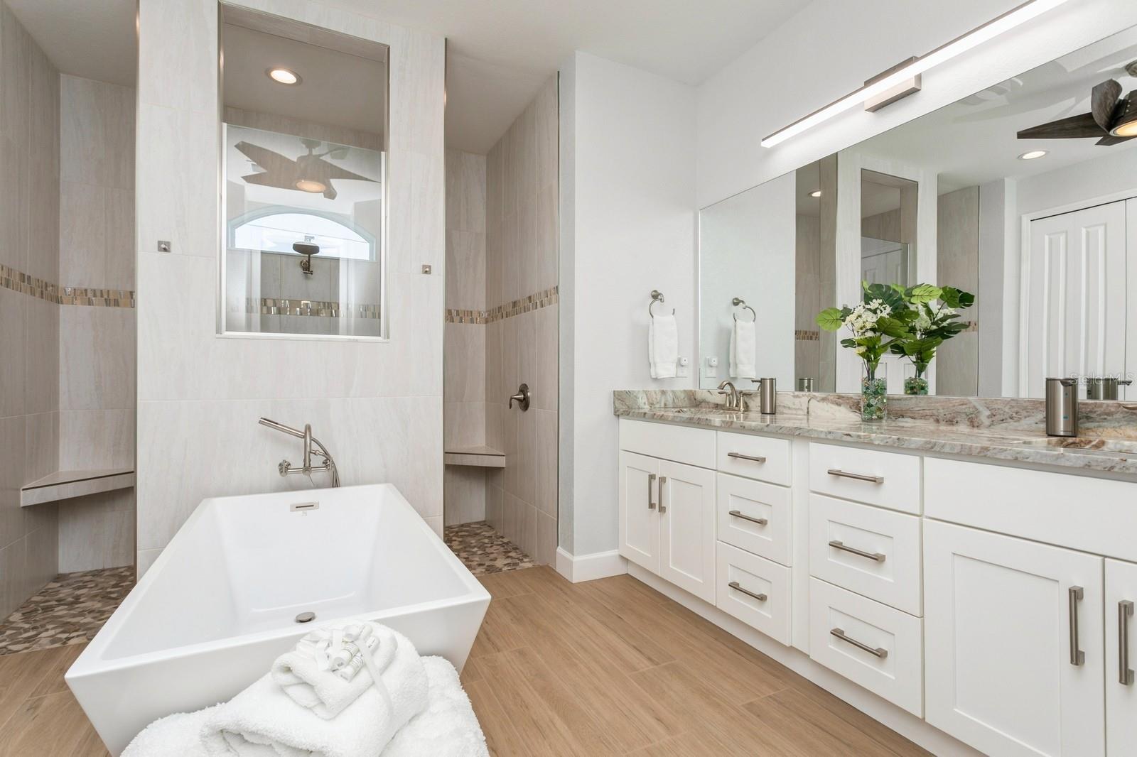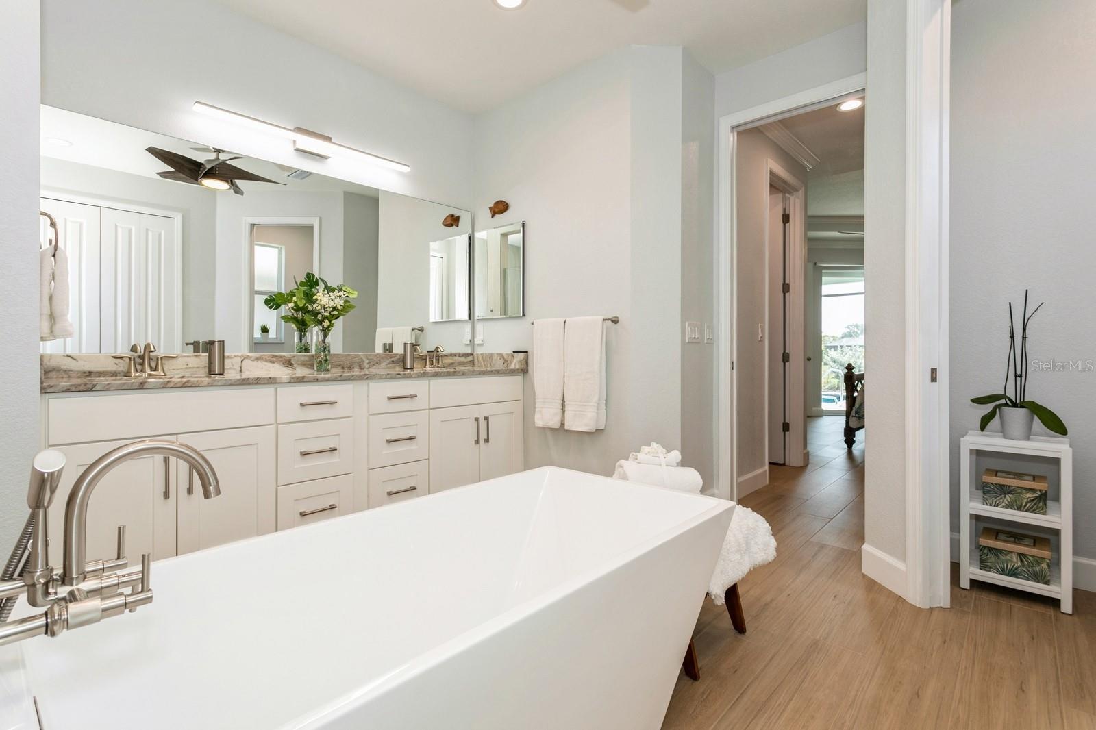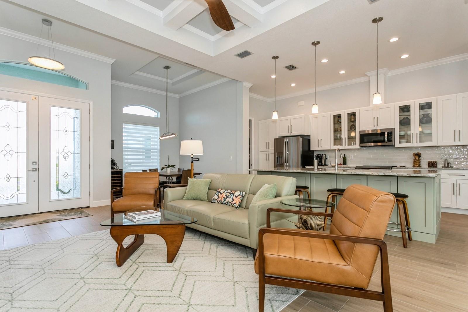 BETTER THAN NEW! Don’t wait to build--you can move right into this stunning 2.5 yr old custom-built contemporary pool home featuring multiple builder and owner upgrades in the highly sought-after golfing community of Rotonda West, set back on prestigious Rotonda Blvd North! With an oversized 80’ x 200’, .37-acre homesite in preferred X flood zone, this young, tastefully-designed open-concept home boasts a bright and open contemporary split floor plan. This design separates the primary suite from bedrooms 2 & 3 with guest bath, ensuring privacy on opposite sides of the home’s main living area. Step through the barrier-free glass double doorway into the soaring vestibule and gaze through the main living area, out to the inviting lanai and glistening heated saltwater pool. Notice the soaring ceilings with contrasting color and double crown molding trim package. Contemporary custom high-efficiency lighting & fans, main coffered ceiling with extra lighting, bedroom pan ceilings, 8’ doors, multiple pocket doors, 90-degree sliders, 5 ¼” base trim and sleek wood plank porcelain tile floors throughout the home. This truly is a chef’s kitchen, equipped with luxury GE Profile stainless steel appliances, self-closing cabinetry, in-cabinet Shelf Genie slide-out shelves, large island (50” D x 9’9.5” L) with seating and cabinet storage on both sides. Beautiful level 3 Quartzite countertops throughout the house, with custom tile backsplash in kitchen. Primary suite bathroom features an oversized “car wash” shower with matching benches, porcelain tile, decorative tile accents, sealed stone floor, plus a separate and luxurious soaking tub. Double-pane insulated impact hurricane-resistant glass windows and doors throughout provide effortless protection without shutters. Appreciate the spacious 3-car garage w/custom epoxy & Polyaspartic floor coating, along with the home’s new roof (Feb 2023) w/upgraded water-resistant barrier for an extra protection layer. Custom 11’x25’ pool features a durable Pebbletech coating, decorative & reflective tile and arch waterfall with paver surround, 1.8 variable speed pump, heater, outdoor shower and 18’x37’ pool cage with adjoining paver patio and walkway. Decorative Kustom Kurbing, stone and new custom landscaping and lighting envelop the entire house. Pride of ownership shines brightly; Furnishings negotiable, Newly installed front and back yard Irrigation system, matching set of LG front load washer & dryer with drawer pedestals, schedule an appointment today!