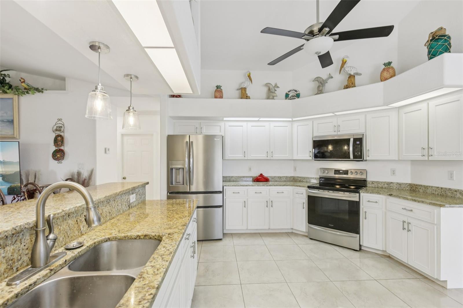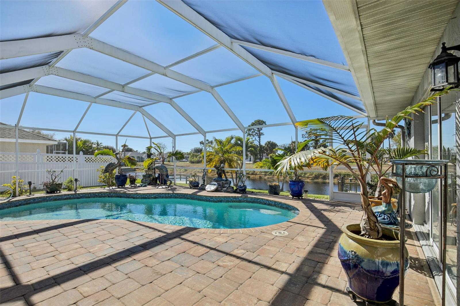 Waterfront and Water views! Terrific location on one of the most sought-after streets in Rotonda, this 4-bedroom, 3-bath home offers over 2,360 square feet of nicely updated living space. The heart of the home is a kitchen designed for real life, featuring sleek granite surfaces, plenty of cabinetry (refaced within the last 3 years), and a layout that flows easily from the breakfast bar to the sunny morning nook. In 2025 the kitchen was updated with a new refrigerator, dishwasher and microwave. Recent major updates provide peace of mind, including a new roof and A/C system installed in 2023, along with a brand new garage door and front door. You’ll find new carpeting throughout the living area and a primary suite that feels like a true getaway, complete with its own set of glass doors and a bathroom featuring dual sinks. Outside, the backyard has been transformed with fresh landscaping, fenced in, a private dock, and a saltwater pool (heated) that was recently resurfaced and finished with stone pavers. Whether you’re relaxing on the screened-in porch watching the water along the canal or taking the short 10-minute drive to local beaches, this property makes it easy to enjoy the Florida sunshine. Plus, with five golf courses and tennis courts just around the corner, there is always something to do close to home.