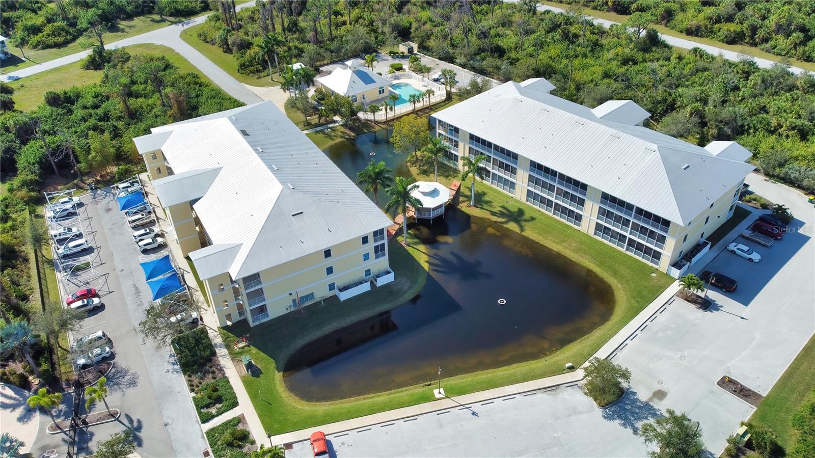 Three Bedroom, Two Bathroom Top Floor Condo with a Water View. (Yes there is an ELEVATOR.) Located inside the Gated Community of Waterside Residences of Rotonda West. As you come through the front door you can see all the way to the back sliders for added light. Spacious kitchen with Granite Countertops, Breakfast Bar, Undermount Sink, and Pantry. There is also a separate Dining Area, The Ceilings are 12 ft high with Recessed Lighting in Dining and Living area. The Guest Bedrooms and Bath are located in the front of the unit. Guest Bathroom has Tub/Shower and Linen Closet for added Storage. Laundry Closet is located inside the unit. The Main Suite features its own Full Bathroom with a Walk-in Shower, Dual Sink Vanity, Tray Ceiling and Walk-in Closet. The Screened Lanai overlooks the Pond and Gazebo. Additional Storage on the Lanai as well. Amenities include the following Outdoor Grills, Clubhouse, Heated Swimming Pool, and Spa. Only minutes from BEACHES, GOLFING, FISHING, SHOPPING, and RESTAURANTS.