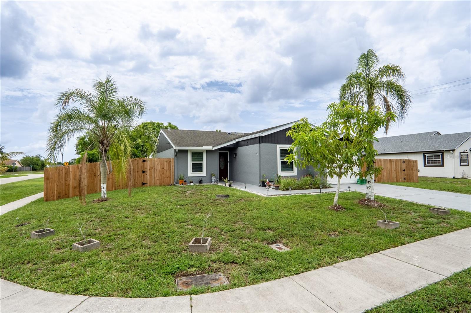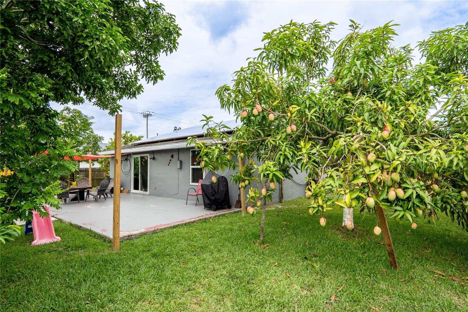 Beautifully updated 3-bedroom, 2-bathroom home situated on a spacious corner lot in prime West Palm. This home features a renovated kitchen, new flooring in the primary bedroom, and upgraded compact windows, a sliding glass door, and a new front door. It also includes 28 solar panels and a brand-new AC unit installed in 2024 for energy efficiency and comfort, roof was installed 2017. The generous backyard offers mature fruit trees and plenty of space to relax or entertain, with tranquil water views from both the back and side of the home. Located in a quiet, well-established neighborhood with no HOA or CDD fees, and just minutes from major highways and popular shopping destinations, this home offers both comfort and convenience. It has been a pet free home and is in immaculate condition.