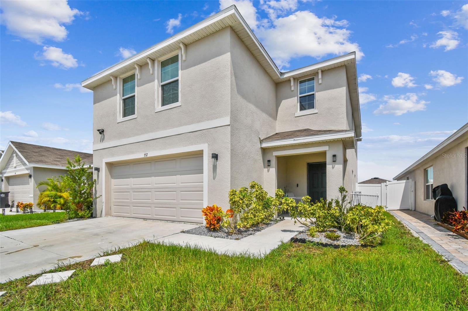 Imagine a harmonious blend of modern living and sustainable energy located minutes from the ocean! This stunning 2021-built residence offers an idyllic lifestyle just a stone's throw from the sandy shores of Little Harbor Beach, shopping, restaurants, and more. This 2-story haven boasts 4 bedrooms and 2.5 baths, perfectly designed for family life and serene retreats. A 2-car garage adds convenience to your everyday living. The heart of the home features an inviting open concept design, with tile floors throughout, making it ideal for social gatherings and easy cleanup! The spacious kitchen has granite countertops, a generous walk-in pantry, stainless steel appliances, and an expansive breakfast bar perfect for quick meals or morning coffee chats. On the second level, the upstairs loft offers a flexible space for fitness, work, or play, along with a conveniently located laundry room on the same floor. With all bedrooms upstairs, there is plenty of privacy for the family. Retreat to the owner's primary suite, complete with a large walk-in closet and a sleek double vanity and walk-in shower. Outdoors the fully fenced yard provides privacy and comfort for entertaining with an extended patio and fixed sunshades to enjoy the warmer weather. ADDITIONAL FEATURES OF THIS HOME: Enjoy minimal electric bills averaging about $50/month, thanks to SOLAR PANELS and robust 2nd level concrete walls and the benefit of the water softener system recently installed. As if the home itself wasn't enough, the amenities center is located down the street featuring a resort-style pool, sporting courts, a dog park, and scenic hiking/walking trails for your leisure. With quick access to major highways, easy commutes to Tampa, Sarasota, and St. Pete metro areas are less than a 45-minute drive away! This home isn’t just a dream—it’s a unique opportunity waiting for you. Embrace a lifestyle where the sun's power meets modern living in a serene lakeside setting. Schedule a tour today and make it yours! ***Take advantage of a VA assumable mortgage, making this dream home even more accessible.***