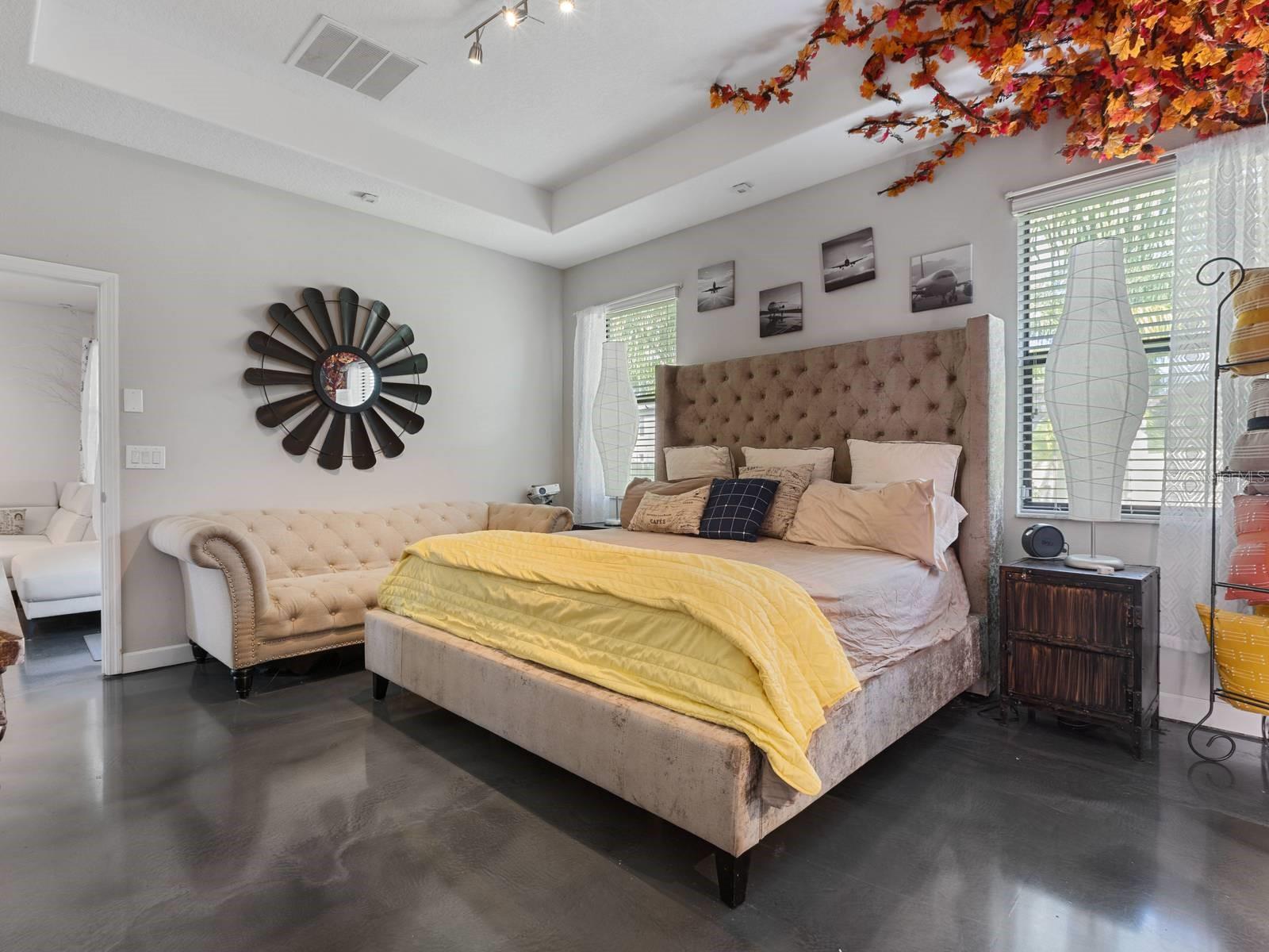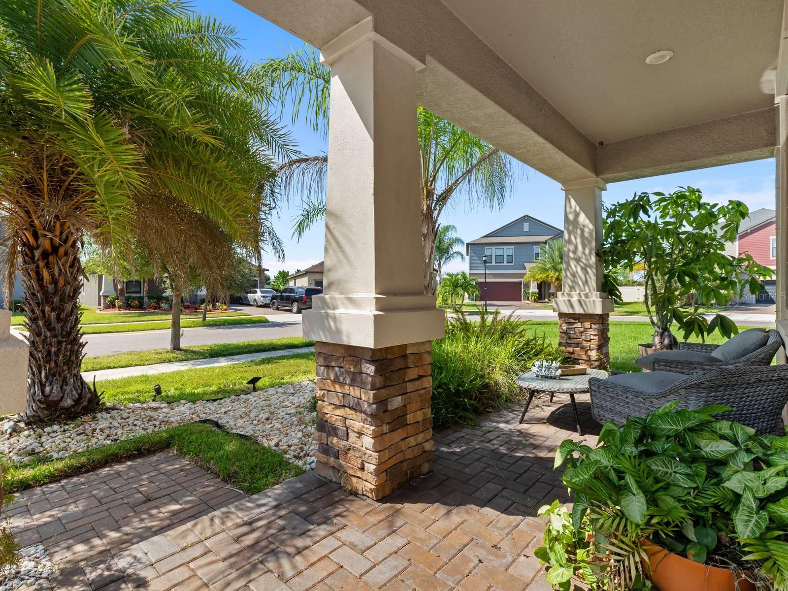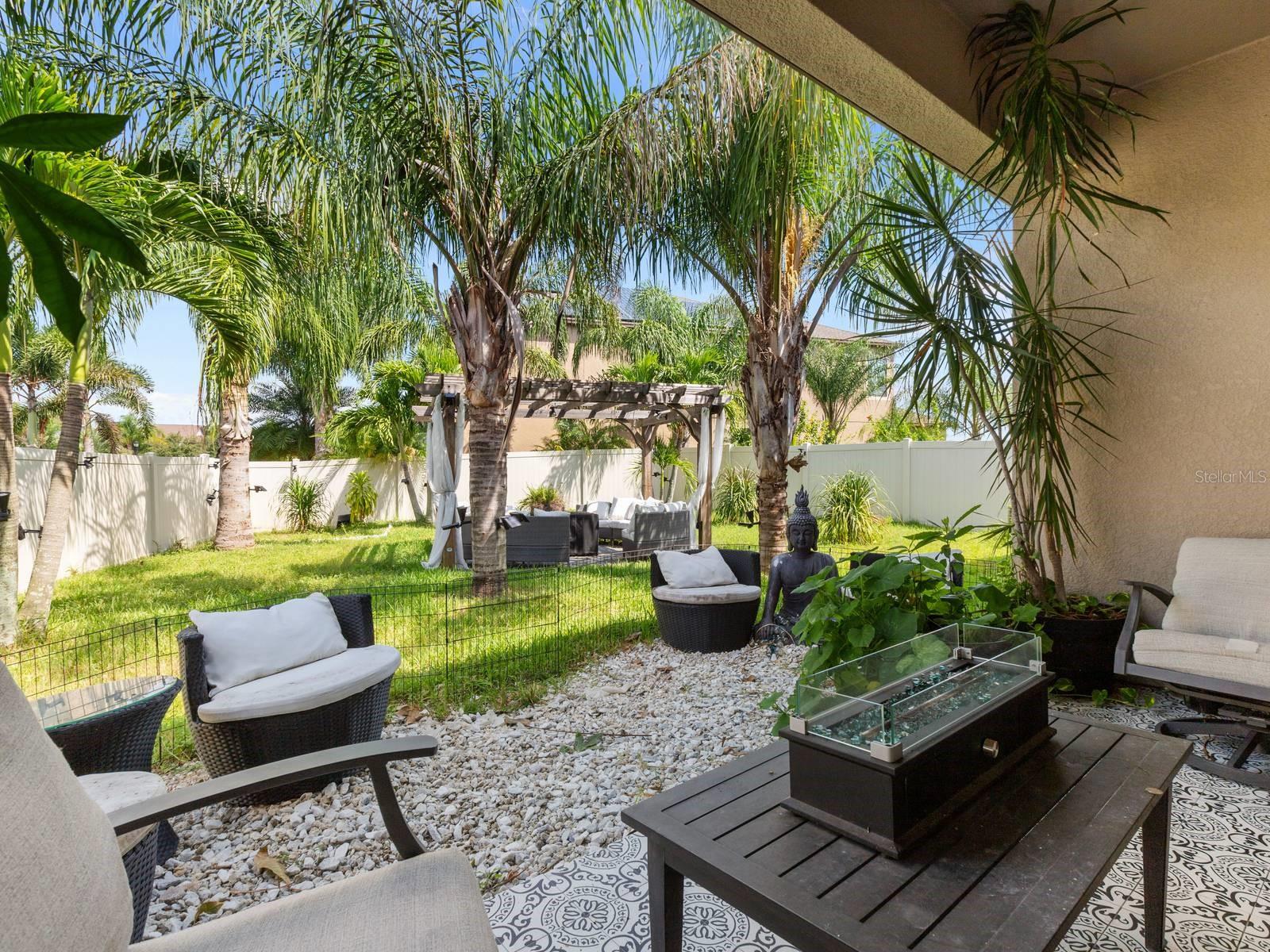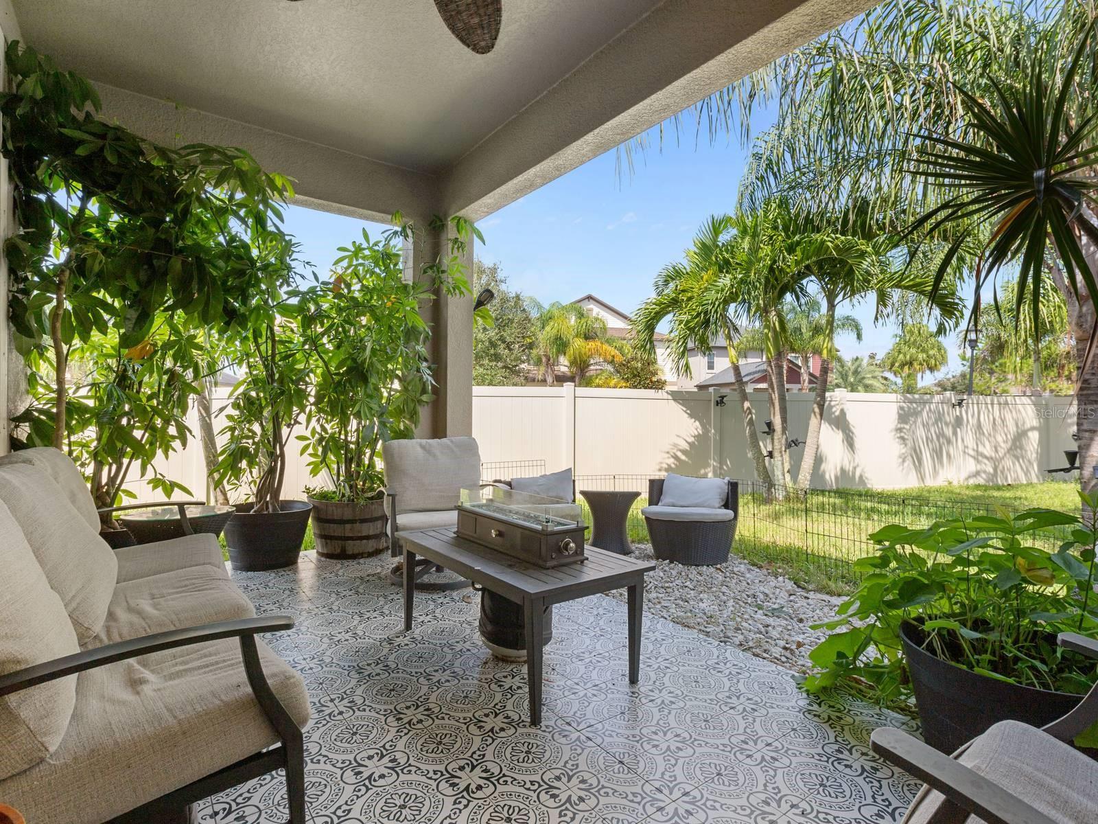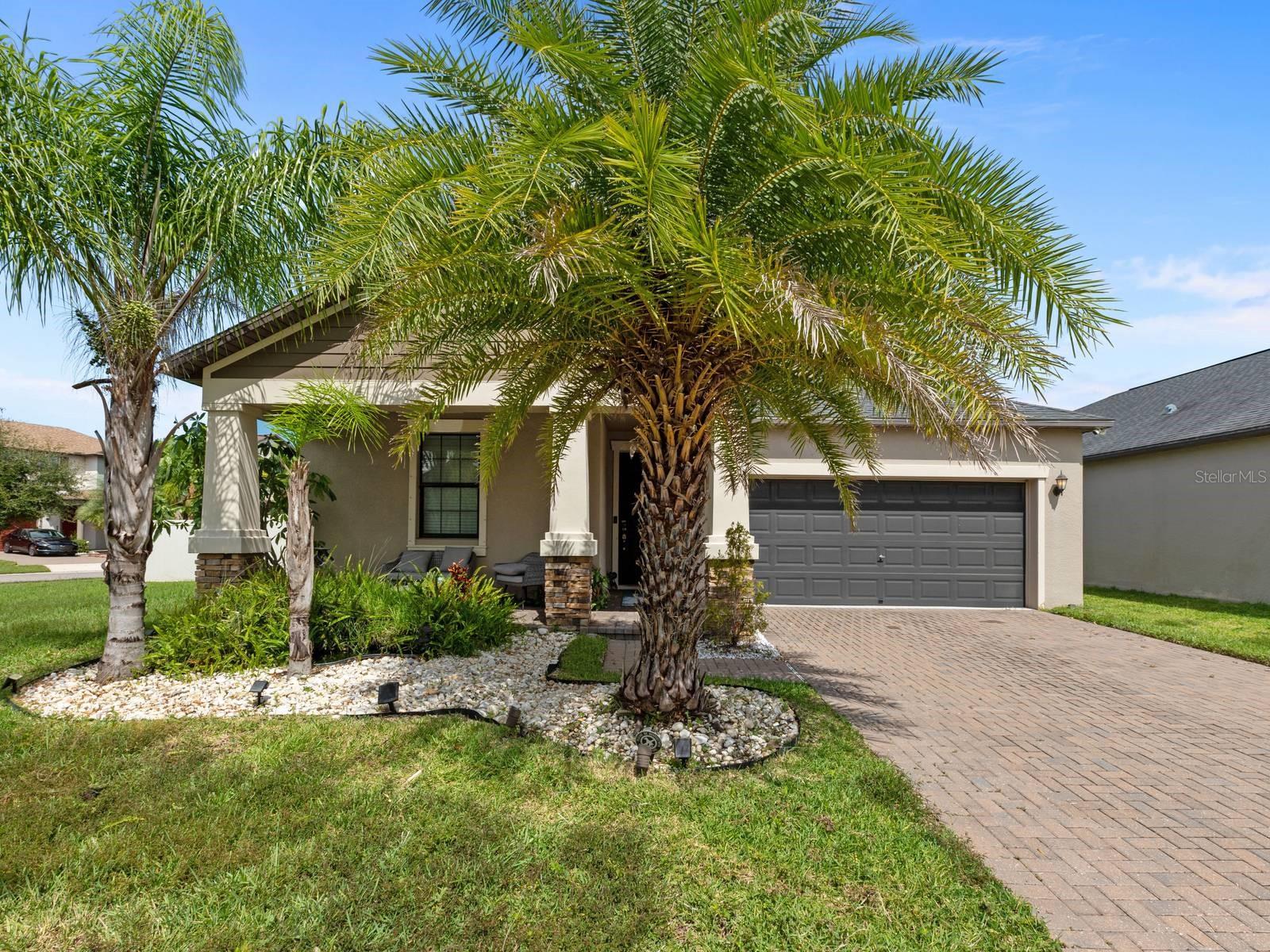 Fabulous North Carolina Floor Plan is 2061 Square Feet, 4 Bedroom, 3 Full Baths and 2 car garage Single Family Home. This Lennar model is one of the most popular plans. Enjoy resort-style living in the highly sought-after Belmont community with a low HOA! You will be impressed from the moment you arrive, with the custom design features throughout, including Custom Epoxy 3D Flooring and brick highlighted walls in the foyer, dining room and primary ensuite and soft glittered walls! The Hurricane Shutters will not only ease your mind but save you money on your homeowner's insurance! The Oversized corner lot offers privacy with no side neighbors and a completely fenced in back yard creating a fabulous curb appeal. Upon entering, the high ceilings create an airy ambiance with lots and natural light and neutral colors. The kitchen is spacious with lots of cabinets and counter space. A chef's delight kitchen with granite countertops, elegant wood cabinetry, and stainless-steel GE appliances, including a gas range. The pantry provides additional storage, while the kitchen island provides ample barstool seating, seamlessly blending with the dining space and perfect for entertaining. Overlooking the spacious family room, adjacent is the primary suite. The owner's suite is a sanctuary, featuring an En-Suite bathroom adorned with a custom mirror, dual sinks set in a granite countertop vanity a step-in shower, separate garden tub and large walk-in closet. Two bedrooms are located at the front of the home separated with a full bathroom. The covered attached patio is adorned with a trendy tile and views of mature Palm Trees and private yard. Completely fenced in with maintenance free PVC Vinyl fencing, perfect for your 2 or 4 legged friends and family. Lots of yard space for gardening or enjoying the cool Florida nights! Furniture is optional to stay! The Belmont community offers a resort-style living with amenities including community pools, tennis and basketball courts, a playground, dog park, and scenic sidewalks for leisurely strolls. Community events are offered for fun, while Belmont even boasts its own elementary school, Belmont Elementary. What more could you want? Weekends come alive with nearby farmer's markets, and lots of shopping, dining options and close to Entertaiment and beaches. Great location close to US 301, US 41 & I-75 just minutes away, offering easy commutes to the military base, Tampa, St. Pete, and Sarasota. This home is an invitation to a lifestyle where every detail is designed for your comfort, enjoyment and has custom touches throughout! Welcome Home!