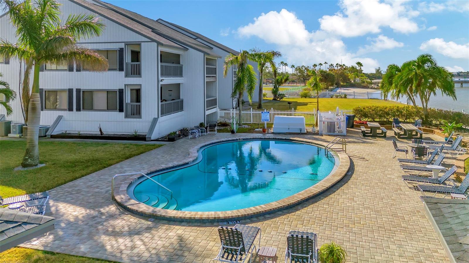 Waterfront Condo with Stunning Views and Florida Style Amenities! Every day can be a vacation! Seller offering $10k concession to Buyer…pay your closing costs or buy down your rate! Live the ultimate Florida lifestyle in this waterfront end-unit condo offering breathtaking partial and full water views from every window! This high-and-dry residence is perfectly situated on the bay, with direct access to the water for kayaking and paddle-boarding from the community launch. Kayak and a paddle board included! Enjoy magnificent sunsets by the heated community pool, just steps from your door. Inside, the condo features stainless and black appliances, washer and dryer. The flooring is carpet-free except for the primary bedroom, ensuring easy maintenance. The newly remodeled spa-like primary bathroom is a true retreat, featuring a walk-in shower, porcelain Jacuzzi tub, rain showerhead, and dimmable lighting. The primary bedroom and living room both open to the patio with stairs leading directly to the waterside, perfect for enjoying the serene surroundings. Watch wildlife like dolphins and manatees from your patio! This condo comes with a dedicated parking space and is within walking distance to beachside restaurants and the marina. Furniture is negotiable, and the monthly fee includes water, 24-hour security, WiFi, cable, pest control, and more! Don’t miss this opportunity to own a piece of paradise in Tampa Bay!