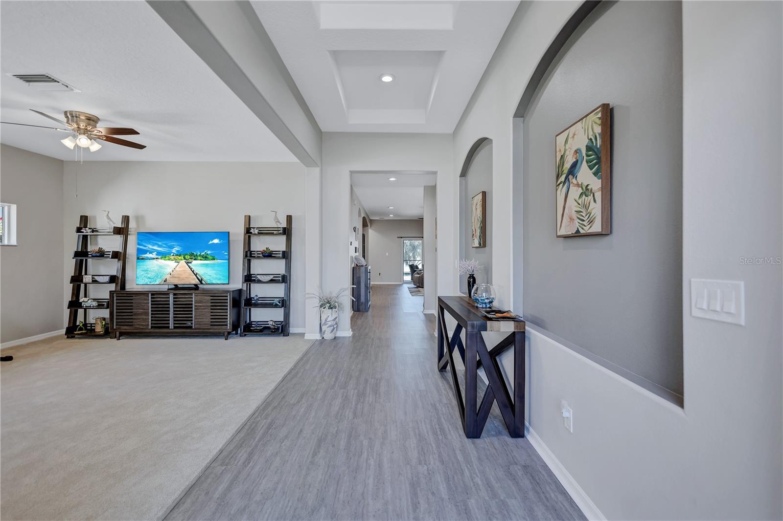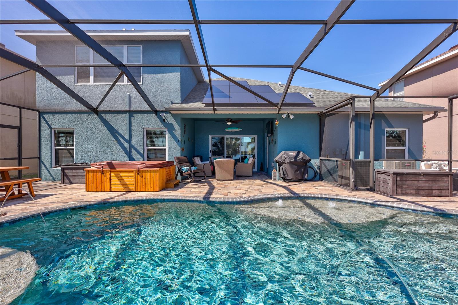 Discover this phenomenal home in a gated community, offering over 3,000 sq. ft. of beautifully updated living space! Step into the welcoming foyer, setting the tone for the elegance and comfort this home provides. With multiple living spaces, this home is perfect for entertaining—whether hosting a gathering or enjoying a quiet evening in. Featuring 4 bedrooms, 3 bathrooms, and a spacious loft, there’s plenty of room for family and guests. The 3-car garage offers ample storage, while the paid-off solar panels (installed in 2023) and brand-new impact windows and doors enhance energy efficiency and storm protection. Enjoy peace of mind with a new roof (2023), two new AC units (2023), and whole-house surge protection—including both AC units and the pool system (2024). Additional updates include a new water heater (2025), new sprinkler controls (2024), and a new pool T-cell (2024). Step outside to your private oasis—a heated saltwater pool with amazing LED lighting, plus a freestanding spa for ultimate relaxation. The screened-in patio ensures year-round enjoyment, making indoor-outdoor living a breeze. This home truly has it all! Don’t miss your chance to make it yours—schedule your private showing today!