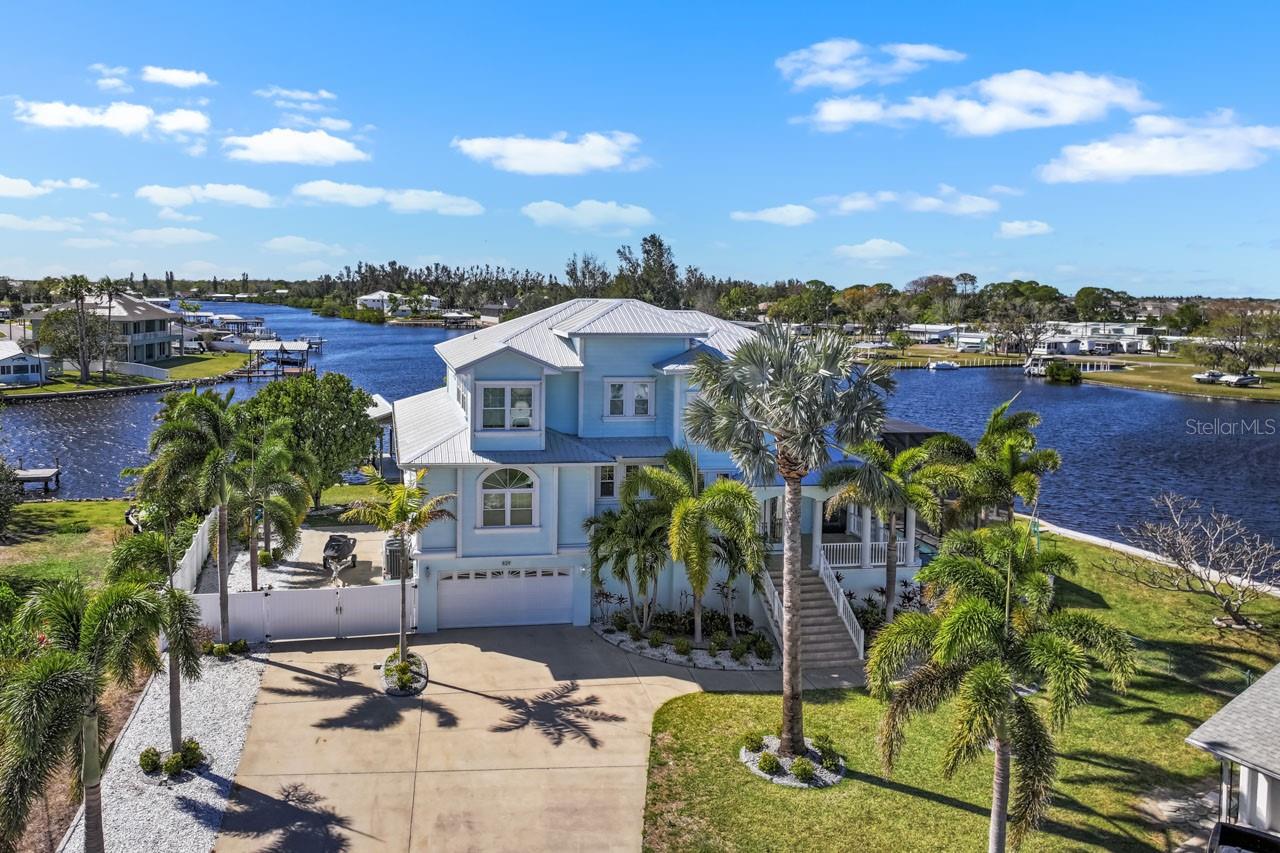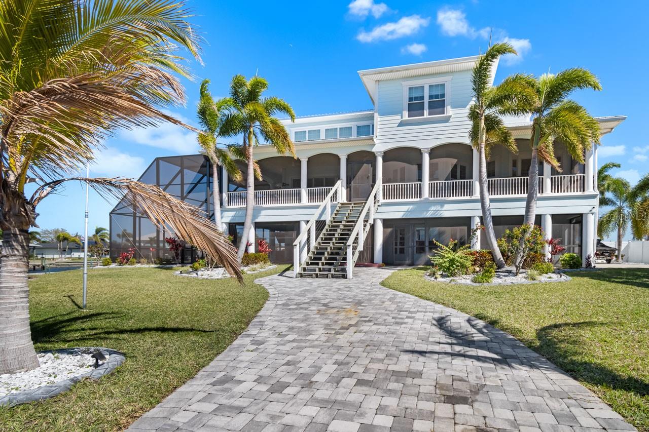 Waterfront Luxury Home in a Prime Location – Make the Florida dream a reality! 3-bedroom + IN-LAW SUITE, 2.5-bathroom, 2-car OVERSIZED garage WATERFRONT home with SALTWATER POOL, METAL ROOF, BOAT LIFT with 2 SLIPS & 10,000-lb capacity on a CUL-DE-SAC with NO CDD or HOA. The overabundance of features include: NEWER seawall, irrigation system, paver deck & screen enclosure, WRAP-AROUND LANAI & BALCONY, front porch, WATER SOFTENER, recessed lighting, CROWN MOLDING, expansive high ceilings, HARDWOOD STAIRS, columns, archways, ELEVATOR, under-stair storage, GRANITE COUNTERTOPS, TRAY CEILINGS, ceiling fans, IMPACT-RATED WINDOWS, beautiful landscaping with MATURE PALM TREES & STAMPED CURBING, TILE FLOORING THROUGHOUT - the list of highlights is seemingly endless! Enter through the beautiful two-story foyer into the Great Room, where the wall-to-wall sliders frame the magnificent panoramic water view. The kitchen is a chef's dream, with STAINLESS STEEL appliances, CUSTOM WOOD CABINETRY, an ISLAND with PREP SINK, a BREAKFAST BAR with double sink, a wall oven & separate range/oven, and the picturesque dinette area overlooking the water. Travel down the hall to find the Laundry Room, Half Bath, and on into the MAIN FLOOR PRIMARY SUITE. Tranquility at every corner of this stunning bedroom: DUAL WALK-IN CLOSETS, balcony access, tray ceiling, and an absolutely incredible bathroom featuring DUAL-SINK VANITY, makeup/vanity area, NEWER WALK-IN SHOWER (only 2 years old), and a legitimate JACUZZI TUB for ultimate relaxation. Venture to the top floor to access the open loft and both secondary bedrooms, each with their own WALK-IN CLOSETS and en-suite access to the JACK & JILL BATHROOM complete with a DUAL-SINK VANITY and tub/shower combination! The ground level of this amazing abode houses a WORKSHOP with its own cabinetry and pool access, along with the spectacular IN-LAW SUITE. Comprised of a 14X14 bedroom with WALK-IN CLOSET, a full bathroom including DUAL-SINK VANITY and tub/shower combination, a 13X31 Great Room mixing living, dining, and kitchenette areas with its own refrigerator, range, microwave, sink, this suite has a PRIVATE ENTRANCE and is sure to provide a comfortable stay for any long-term guest. This one-of-a-kind property represents all the best parts of the Florida Waterfront Lifestyle. Don’t miss out on securing this lavish home.