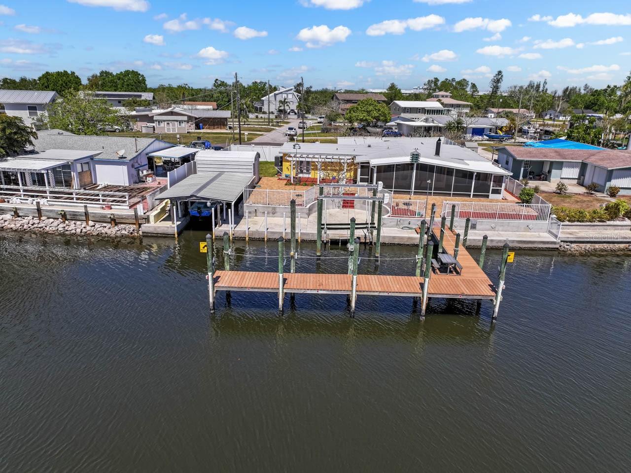 Idyllic 3 bed, 2 bath, WATERFRONT home with a NEW ROOF (September 2024), FRESH interior & exterior paint, NO HOA/CDD, completely renovated, and move-in ready! Homeport your sailboat, catamaran, cruiser, or trawler on the 45-ft face DOCK in deep water on the main channel of the Little Manatee River less then one mile from the open water of Tampa Bay, and on out to the Gulf. In addition to the face dock, there is a 35-ft slip plus a 6k/12k BOAT LIFT, and a covered BOAT HOUSE WITH LIFT. Electric and water at all berths! Enjoy tranquil privacy, as the 95 feet of riverfront faces the preserve. The interior of this beautifully updated coastal cottage features NEW ITALIAN PORCELAIN TILE and PLANTATION SHUTTERS throughout! There are river views from all rooms and a functional WOOD-BURNING FIREPLACE. The kitchen has CUSTOM HICKORY CABINETRY, GRANITE COUNTERTOPS, STAINLESS STEEL appliances, and BREAKFAST BAR with pendant lights. The spacious primary bedroom has NEW CARPET, a NEW ceiling fan, an EN-SUITE BATHROOM, and opens through FRENCH DOORS to the river. Hear and see porpoises and manatees frolicking and feeding in the water as you entertain guests year-round on the expansive 500+ sqft COVERED & SCREENED LANAI - an exceptional extension of living and dining space. Beside the boathouse is plenty of other storage in the large shed and two smaller side sheds. The property is FULLY FENCED and located at the end of a CUL-DE-SAC. It has an ARTESIAN WELL for irrigation, yard, and dock use to help substantially reduce the county water bill. There is plenty of room on this large lot to add a pool and an additional 3-car garage. Additional features include: PAVER DRIVEWAY, covered front entry, attached 1-car garage, backyard pergola, OUTDOOR SHOWER, interior laundry room with built-in cabinetry & shelving, CHAIR RAIL & WAINSCOTING, updated bathrooms, and a WALK-IN CLOSET in the back bedroom off the Family Room. This remarkable home is a boater's dream come true, and the location is truly one-of-kind. Don't miss your chance to live the Florida waterfront lifestyle!