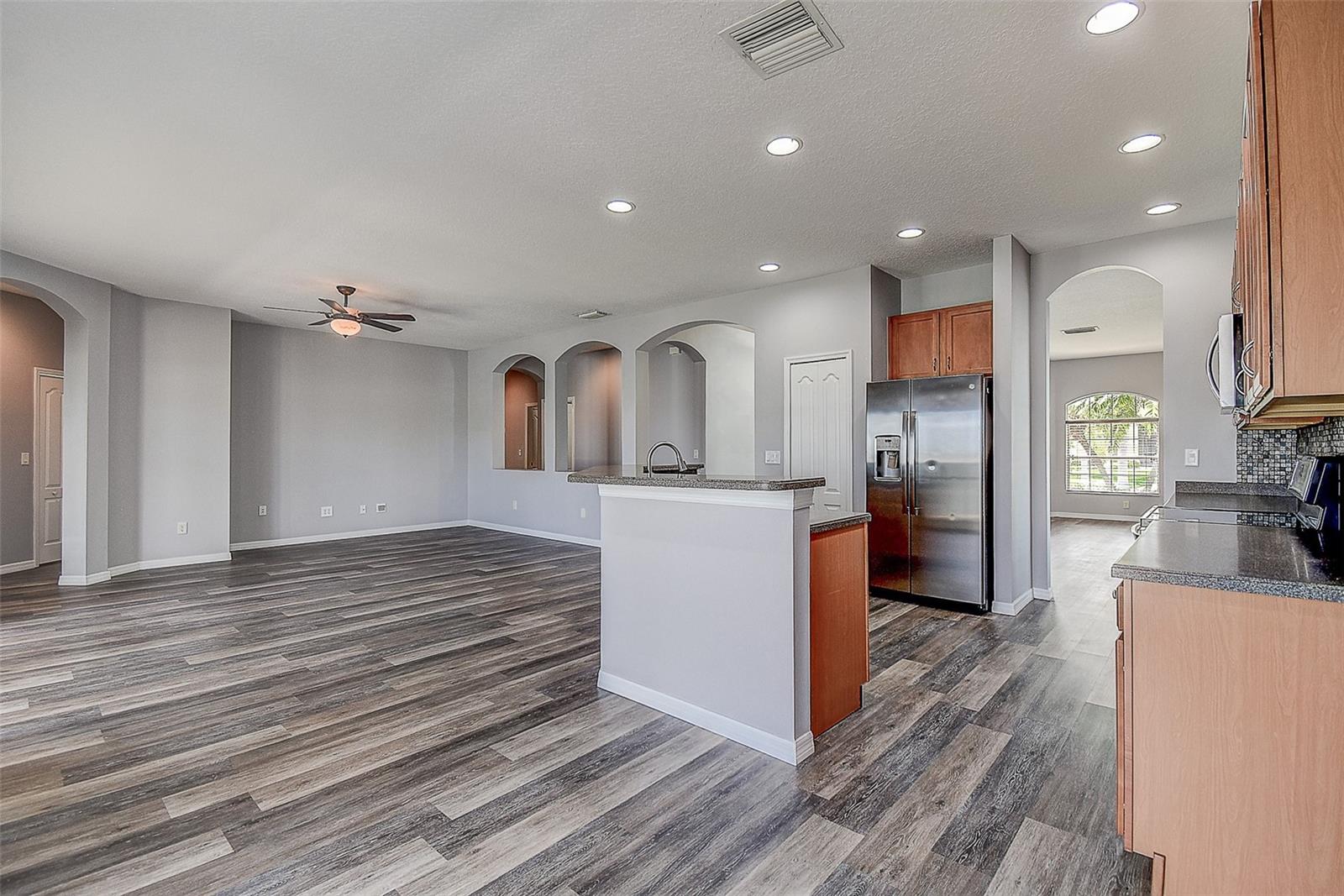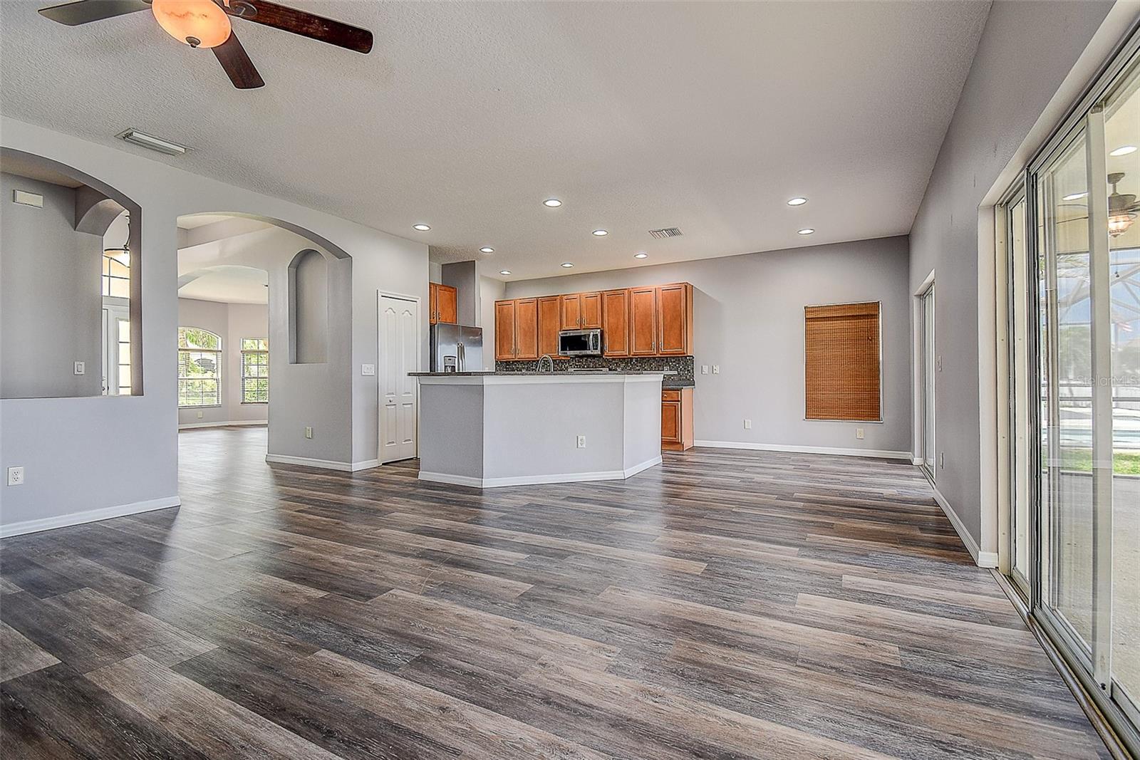 Welcome to this charming, single-story residence nestled in the heart of a gated community, offering a perfect blend of comfort, convenience, and style. With four spacious bedrooms and two full bathrooms, this home spans over 2,300 square feet of heated living space, with a total area of 3,277 square feet, ensuring plenty of room for both everyday living and entertaining. As you step inside, you are greeted by an open floorplan that seamlessly connects the main living areas. The high ceilings and an abundance of natural light create a welcoming atmosphere, making this home feel bright and airy. The living room, a central gathering space, flows effortlessly into the kitchen and dining areas, perfect for hosting family and friends. The kitchen, designed with both form and function in mind, features a range of appliances, including a cooktop, dishwasher, microwave, and refrigerator, as well as ample counter space for meal preparation. A cozy eating space in the kitchen adds an intimate touch for casual dining. The split bedroom layout ensures privacy for the homeowners, with the primary bedroom located on one side of the home and the three secondary bedrooms on the other. The primary bedroom is generously sized, with a walk-in closet providing ample storage space for all your belongings. The other three bedrooms, though not equipped with built-in closets, offer flexibility for use as bedrooms, home offices, or hobby rooms to suit your personal needs. Additional highlights of the home include a large family room, perfect for movie nights or relaxation, and a bright Florida room that provides additional living space with views of the beautifully landscaped surroundings. The home also offers convenient features such as ceiling fans, vinyl and carpeted flooring, storm windows, and a full-size laundry room with hookups for both a washer and dryer. Step outside to the enclosed patio, where you can enjoy the serene water views of the nearby lake, providing the perfect backdrop for outdoor gatherings or quiet reflection. The community also boasts a variety of amenities, including a clubhouse, park, playground, community pool, and tennis courts, ensuring that residents always have something to enjoy just steps from their front door. With a well-maintained yard, a three-car garage, and additional parking space, this home offers everything you need to live comfortably and in style. Situated on a 0.16-acre lot, the property is perfect for anyone looking to enjoy a low-maintenance lifestyle with access to exceptional amenities. This is more than just a home; it’s a lifestyle waiting for you. If you’re seeking a spacious, move-in ready home with room to grow, in a community that offers all the modern conveniences you need, look no further. This property truly has it all.