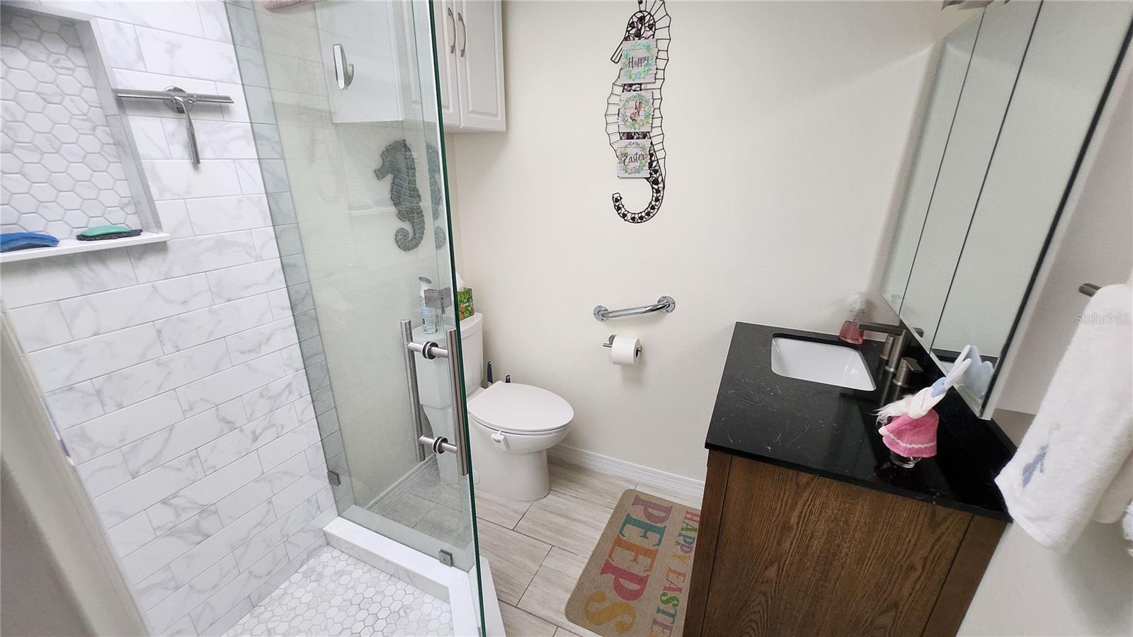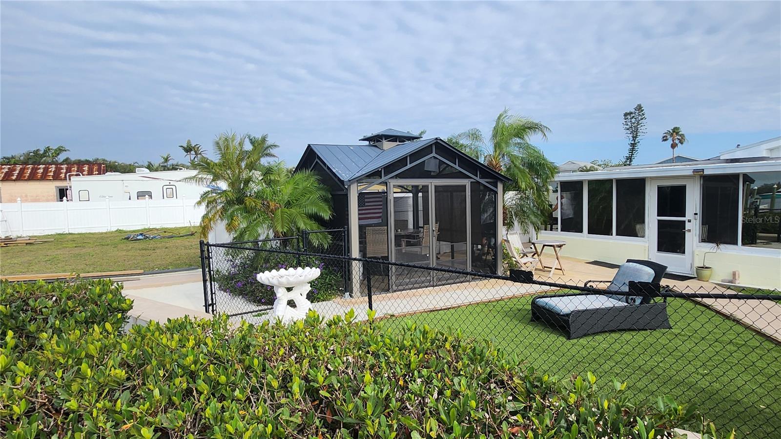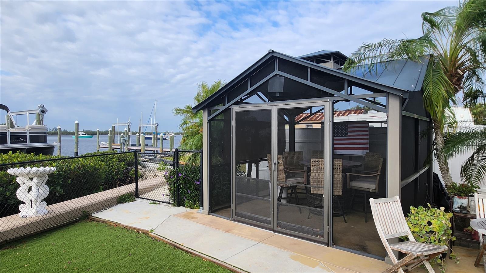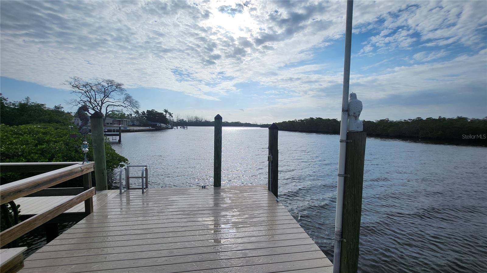 Stunning private waterfront Oasis is waiting for you. This 3-bedroom 2-bath has it all and then some. Completely remodeled with all new stainless-steel appliances, Quartz countertops and new flooring. Both bathrooms are beautifully tiled and modern. Master bath has double sinks with shower. Large Master Bedroom with walk-in closet. Large Florida room with A/C looking out over the water. The kitchen has a built-in microwave and oven. Also, cooktop with stainless-steel overhead exhaust fan. Terrazzo and tile floors throughout. Completely fenced in yard with front gate at the driveway entrance. The Backyard is a great place for your pets to play, along with a pavilion for entertaining. A large dock with a boatlift is great for fishing with 5 minute access to Tampa Bay and the Gulf. Property includes a garden shed and a 20’ x 45’ garage with 2 overhead doors and pass door. Plenty of off-street parking with an RV pad and hook up with 50-amp service large enough for a 45’ RV. New windows, roof, and solar installed in 2021 along with a new A/C and Air handler installed in 2025. If that was not enough there is also an Artesian well on the property. No HOA No CDD This is a must see and enjoy.