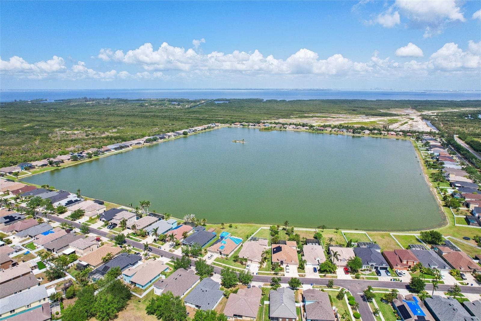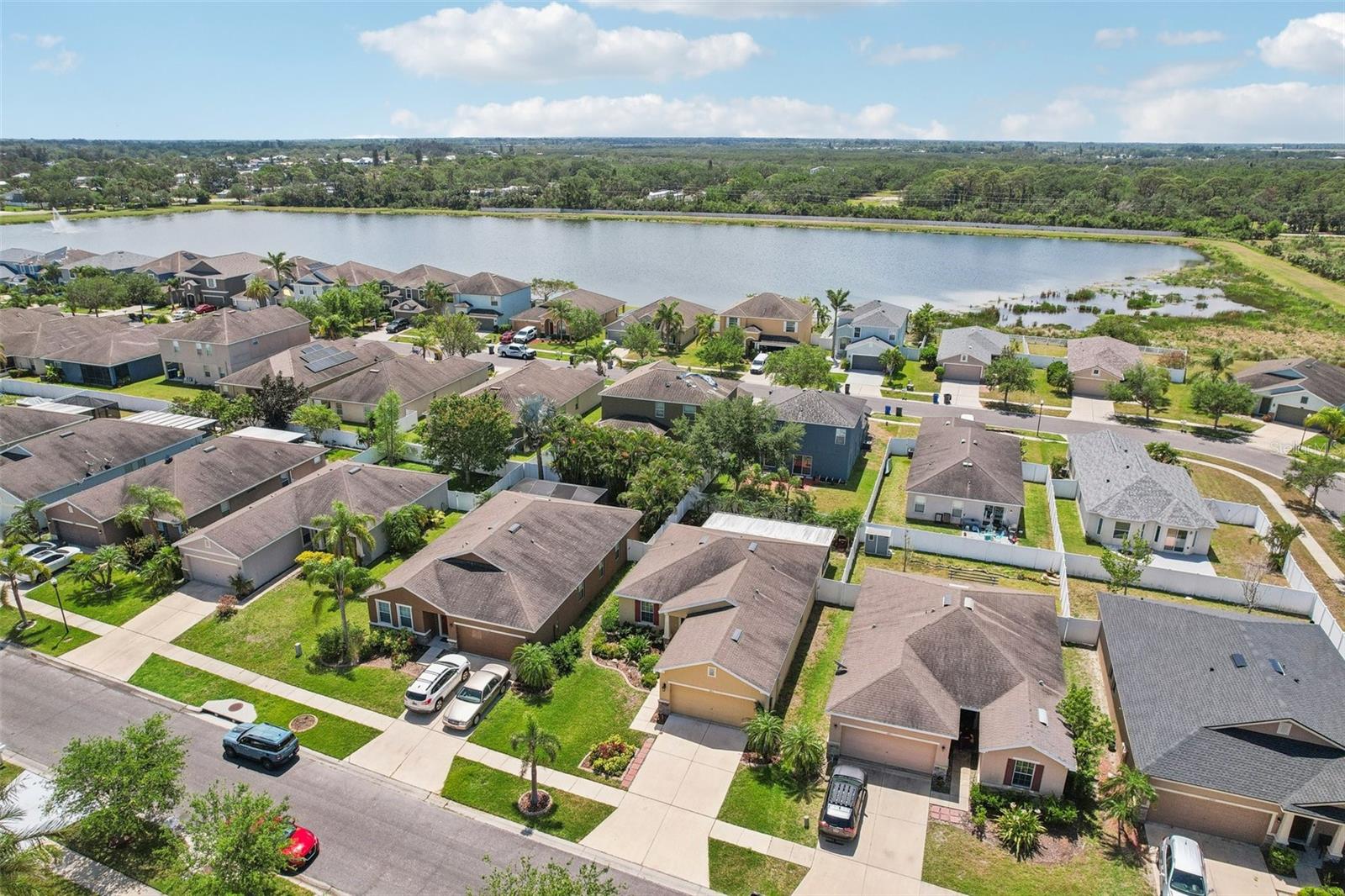 Seller is putting on a BRAND NEW ROOF—big savings for you as the future homeowner! Welcome to your sanctuary in the heart of the vibrant, gated Mira Lago community! This beautifully designed 3-bedroom, 2-bathroom home offers the perfect blend of comfort and style. Step inside where the living room boasts a beautifully crafted accent wall. with a thoughtfully crafted split floor plan with laminate flooring in each bedroom - ensuring space and peace for every guest. The kitchen has corian countertops, rich dark wood cabinetry, and perfect space for dining and entertaining. Enjoy a large screened-in Florida room that overlooks your fenced-in, palm tree-lined backyard. Smart home features like a programmable thermostat, driveway and doorbell cameras offer both convenience and peace of mind. The garage includes overhead storage, maximizing functionality without sacrificing space. Enjoy the peaceful lakes and walking trails, amenity center, pool, playground, and multi-purpose sport court. Just minutes away you can stop by E.G. Simmons State Park, offering kayak tours, camping, nature trails, boat ramps, and scenic picnics along the bay. With easy access to Tampa, St. Pete, MacDill AFB, shopping, dining, and Florida’s world-renowned beaches, this home truly offers it all.