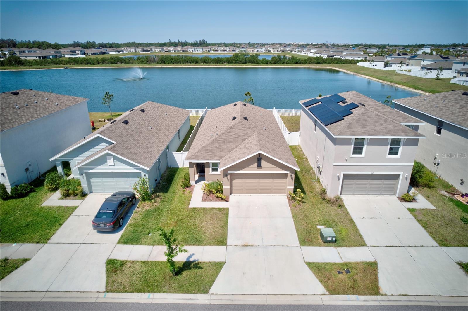 Welcome Home!! Have a look at this Beautiful Block Construction home built only 4 years ago that comes with a stainless steel appliance package, granite counters in the kitchen, and smart home technology! Just minutes from I-75, homeowners have ease of access to daily commutes and local area attractions such as Bahia Beach, Little Harbor, Shell Point Marina and Simmons Park. The Community includes clubhouse, pool, kids park, dog park, pickle ball court!. New Carpet has just been added and the Patio Concrete floor has been extended and screened in all around in 2024 offering a very relaxed and resort feeling! Property is fenced all around and backs into a delightful water/pond view that delivers an awesome visual of the sunset every night! Home will not Last, Act Now :)