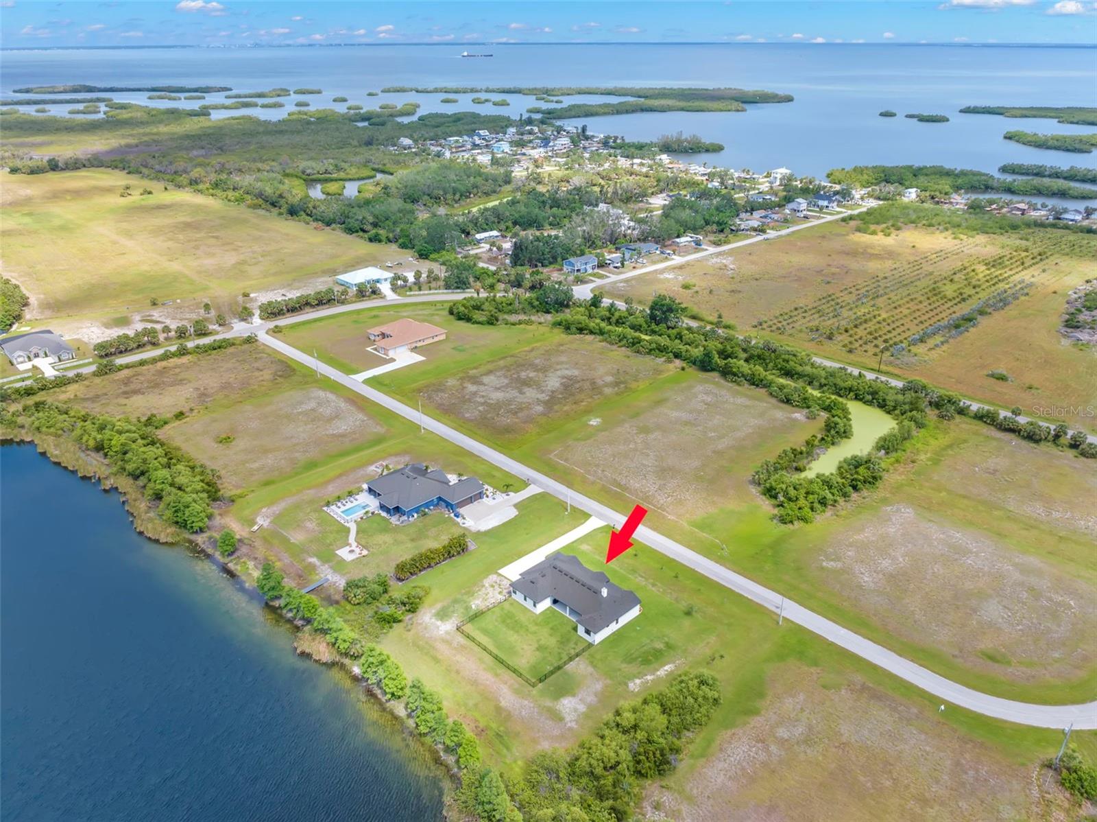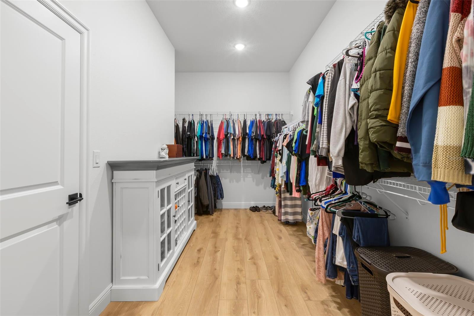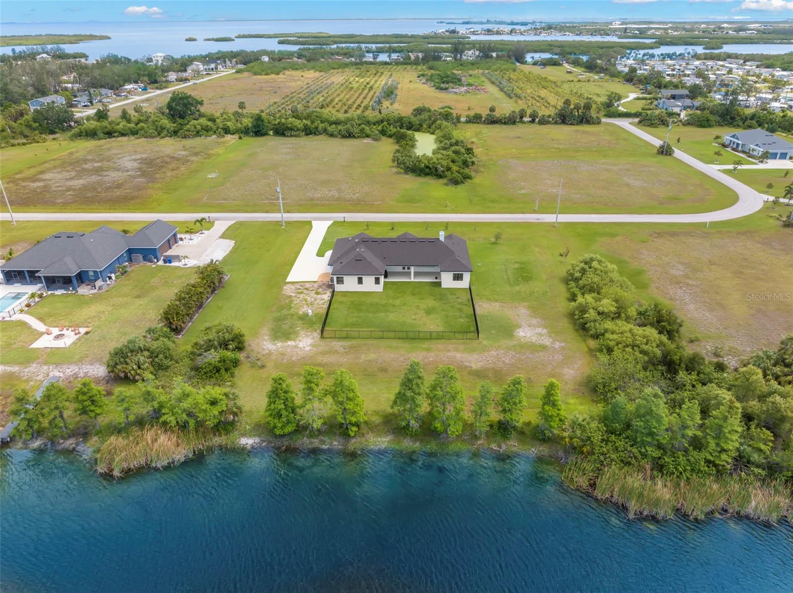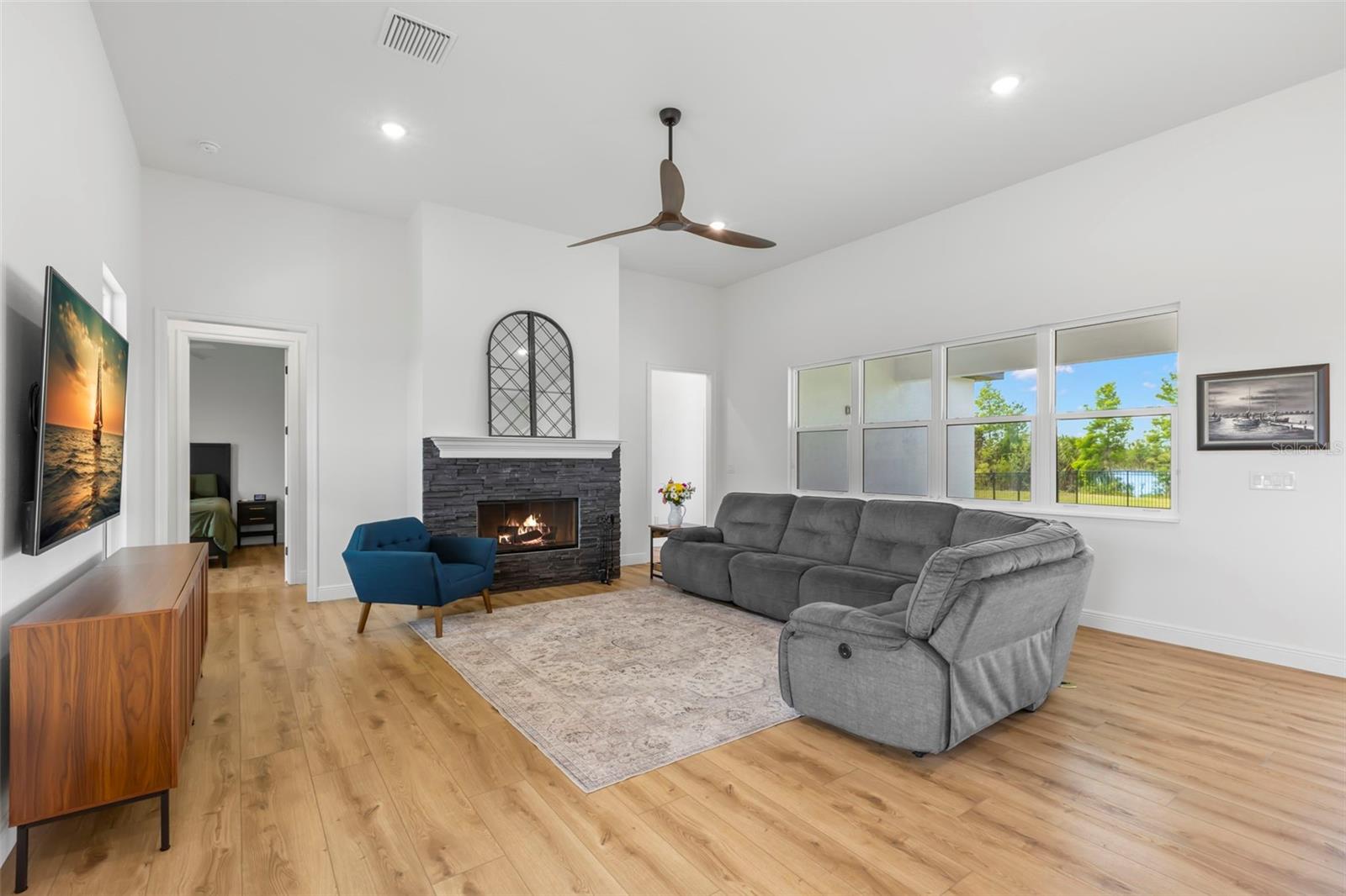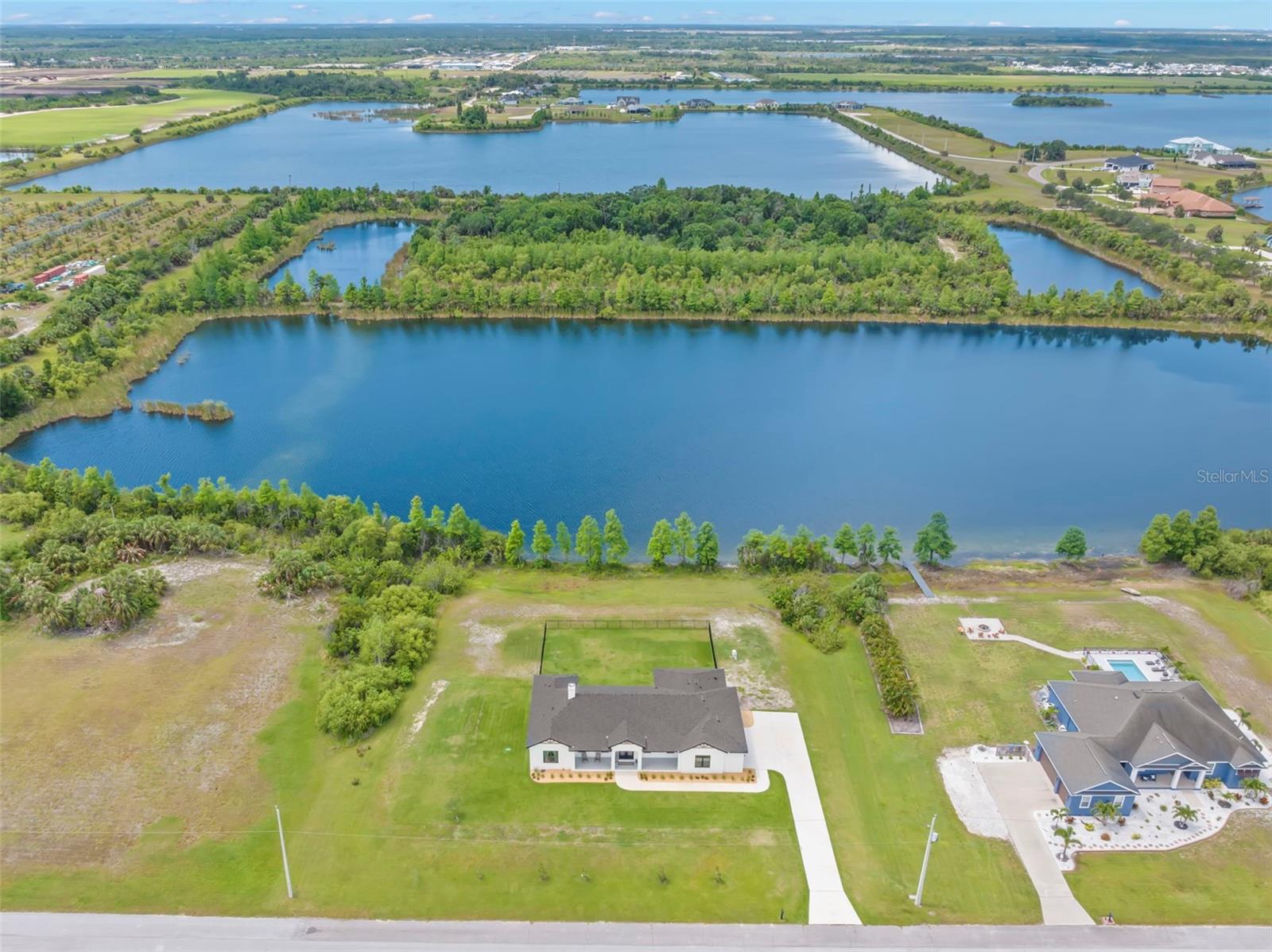 Lost River Preserve is a community with 82 homesites showcasing luxurious executive style properties on oversized lots that are surrounded by 900 acres of nature preserve. This community was featured on HGTV’s 100 Day Dream Home and has hiking trails, covered picnic areas, boat ramps and five private lakes where you will enjoy fishing, boating, waterskiing, kayaking and a variety of wildlife. You can add your own dock and lift if you desire! The community also allows for TWO-STORY detached structures to house all your recreational vehicles and has a lot where you can store your boat for no fee! Custom built by Chadwell Homes, this STUNNING home sits on a waterfront lot that is 1.75 acres and boasts impressive exterior features such as Hardie Board trim, wood gables, a covered entry and a spacious 3-car side-entry garage. The 3-way split floor plan provides privacy and includes 4 bedrooms and 3 full bathrooms. There are two primary bedrooms, each featuring en-suite baths, making this home perfect for multi-generational living. Elegance and comfort blend seamlessly as you enter through the double doors into the GREAT ROOM with 12’ ceilings, LUXURY VINYL PLANK flooring throughout and a fireplace that anchors the living room. The GOURMET kitchen is equipped with double wall ovens, a cooktop, pot filler, a backsplash with herringbone pattern and farmhouse sink with a window view. The white shaker style cabinets blend well with the natural wood cabinetry on the island and custom bar niche complete with open shelving and a wine refrigerator. Extend your living space into the covered rear porch that provides a relaxing area to enjoy gatherings with an expansive backyard which is easily cared for with the automated irrigation system. The yard is fully fenced, there are no backyard neighbors and the 220’ of water frontage provides you with private lake access for many water activities or to simply enjoy the serenity. Back inside, the primary bedroom has a double door entry and windows with motorized blinds. The en-suite is spa-like with a soaker tub, dual split vanities with linen storage, a water closet and a super-sized walk-in shower with seamless glass and shampoo/soap niches. The walk-in closet is large enough to house furniture for if additional storage is needed and has dual shelves. The secondary bedrooms are generously sized and share a hall bath that has tile installed to the ceiling, dual sinks and natural wood cabinetry. The second primary bedroom features a wall niche for furniture and an en-suite bathroom that boasts the same natural wood cabinetry, complete with linen storage. It also includes a walk-in shower adorned with floor-to-ceiling tiles and a seamless glass door. The laundry room has a sink with a vanity, extra storage complemented by countertop folding space, and shelves for hanging your items effortlessly. Additionally, it is connected to the primary bedroom, making this chore a much more enjoyable! Additional features and upgrades include timeless finishes such as black matte hardware and Quartz countertops throughout, a walk-in pantry with an electric outlet, double pane windows, hurricane shutters, oversized garage for larger vehicles, pull down attic access, plumbed for outdoor kitchen and the remainder of the warranties. There is a low HOA, No CDD and this home is not located in a flood zone. In addition to the private lakes, Cockroach Bay State Preserve is 5 minutes away which provides access to Tampa Bay.