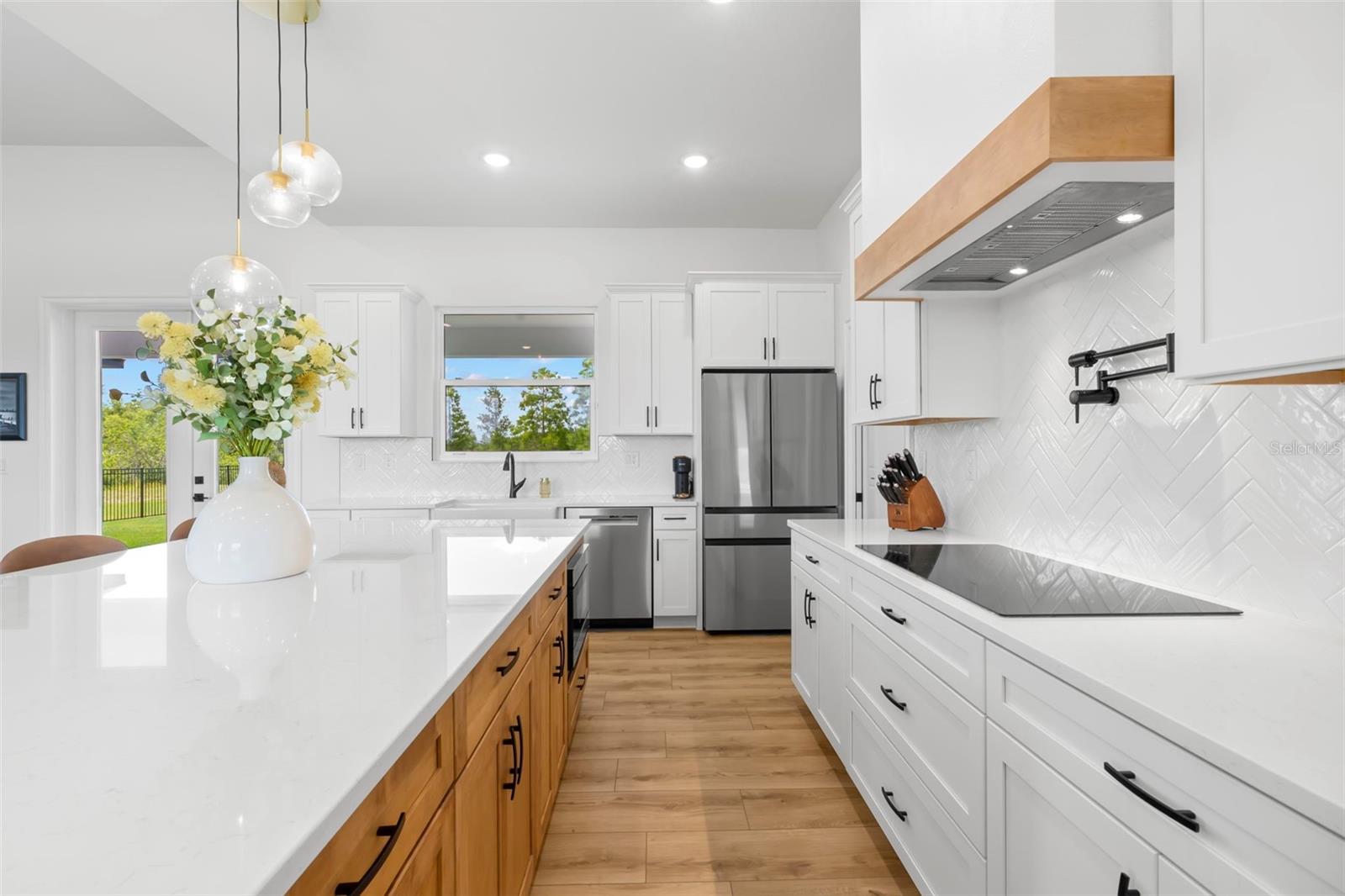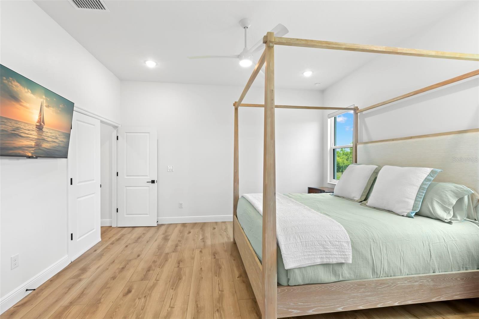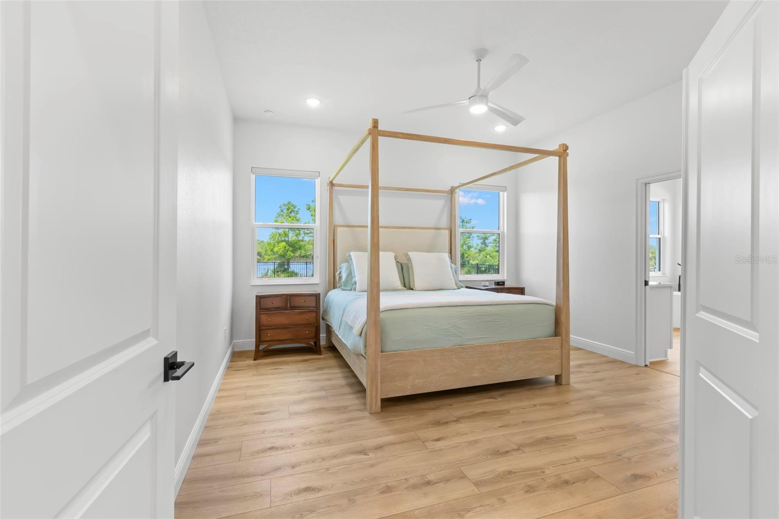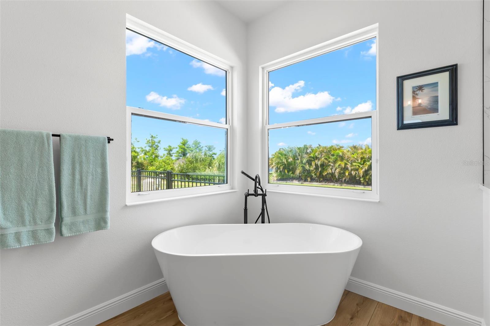 Lost River Preserve is a community with 82 homesites showcasing luxurious executive style properties on oversized lots that are surrounded by 900 acres of nature preserve. This community was featured on HGTV’s 100 Day Dream Home and has hiking trails, covered picnic areas, boat ramps and five private lakes where you will enjoy fishing, boating, waterskiing, kayaking and a variety of wildlife. You can add your own dock and lift if you desire! The community also allows for TWO-STORY detached structures to house all your recreational vehicles and has a lot where you can store your boat for no fee! Custom built by Chadwell Homes, this STUNNING home sits on a waterfront lot that is 1.75 acres and boasts impressive exterior features such as Hardie Board trim, wood gables, a covered entry and a spacious 3-car side-entry garage. The 3-way split floor plan provides privacy and includes 4 bedrooms and 3 full bathrooms. There are two primary bedrooms, each featuring en-suite baths, making this home perfect for multi-generational living. Elegance and comfort blend seamlessly as you enter through the double doors into the GREAT ROOM with 12’ ceilings, LUXURY VINYL PLANK flooring throughout and a fireplace that anchors the living room. The GOURMET kitchen is equipped with double wall ovens, a cooktop, pot filler, a backsplash with herringbone pattern and farmhouse sink with a window view. The white shaker style cabinets blend well with the natural wood cabinetry on the island and custom bar niche complete with open shelving and a wine refrigerator. Extend your living space into the covered rear porch that provides a relaxing area to enjoy gatherings with an expansive backyard which is easily cared for with the automated irrigation system. The yard is fully fenced, there are no backyard neighbors and the 220’ of water frontage provides you with private lake access for many water activities or to simply enjoy the serenity. Back inside, the primary bedroom has a double door entry and windows with motorized blinds. The en-suite is spa-like with a soaker tub, dual split vanities with linen storage, a water closet and a super-sized walk-in shower with seamless glass and shampoo/soap niches. The walk-in closet is large enough to house furniture for if additional storage is needed and has dual shelves. The secondary bedrooms are generously sized and share a hall bath that has tile installed to the ceiling, dual sinks and natural wood cabinetry. The second primary bedroom features a wall niche for furniture and an en-suite bathroom that boasts the same natural wood cabinetry, complete with linen storage. It also includes a walk-in shower adorned with floor-to-ceiling tiles and a seamless glass door. The laundry room has a sink with a vanity, extra storage complemented by countertop folding space, and shelves for hanging your items effortlessly. Additionally, it is connected to the primary bedroom, making this chore a much more enjoyable! Additional features and upgrades include timeless finishes such as black matte hardware and Quartz countertops throughout, a walk-in pantry with an electric outlet, double pane windows, hurricane shutters, oversized garage for larger vehicles, pull down attic access, plumbed for outdoor kitchen and the remainder of the warranties. There is a low HOA, No CDD and this home is not located in a flood zone. In addition to the private lakes, Cockroach Bay State Preserve is 5 minutes away which provides access to Tampa Bay.