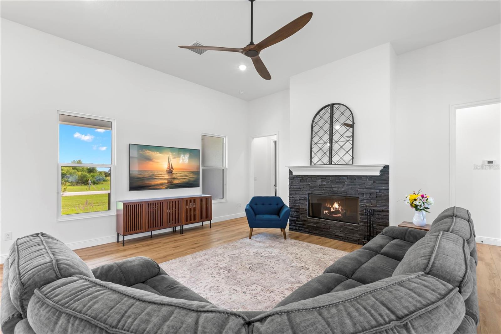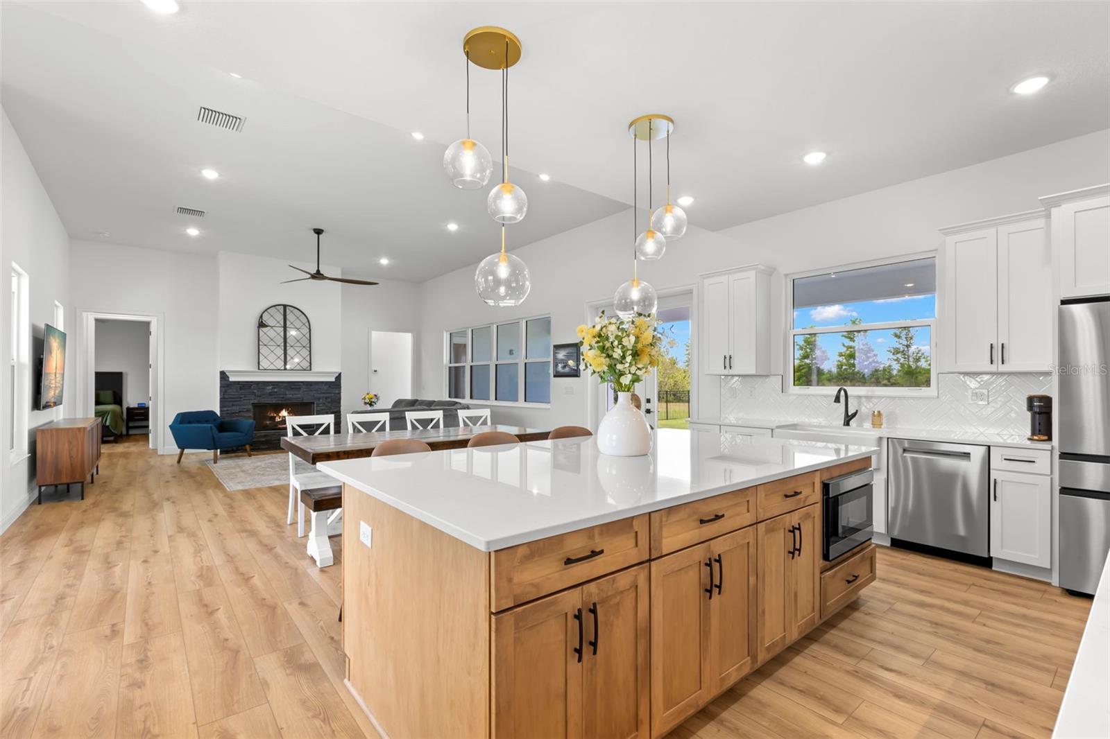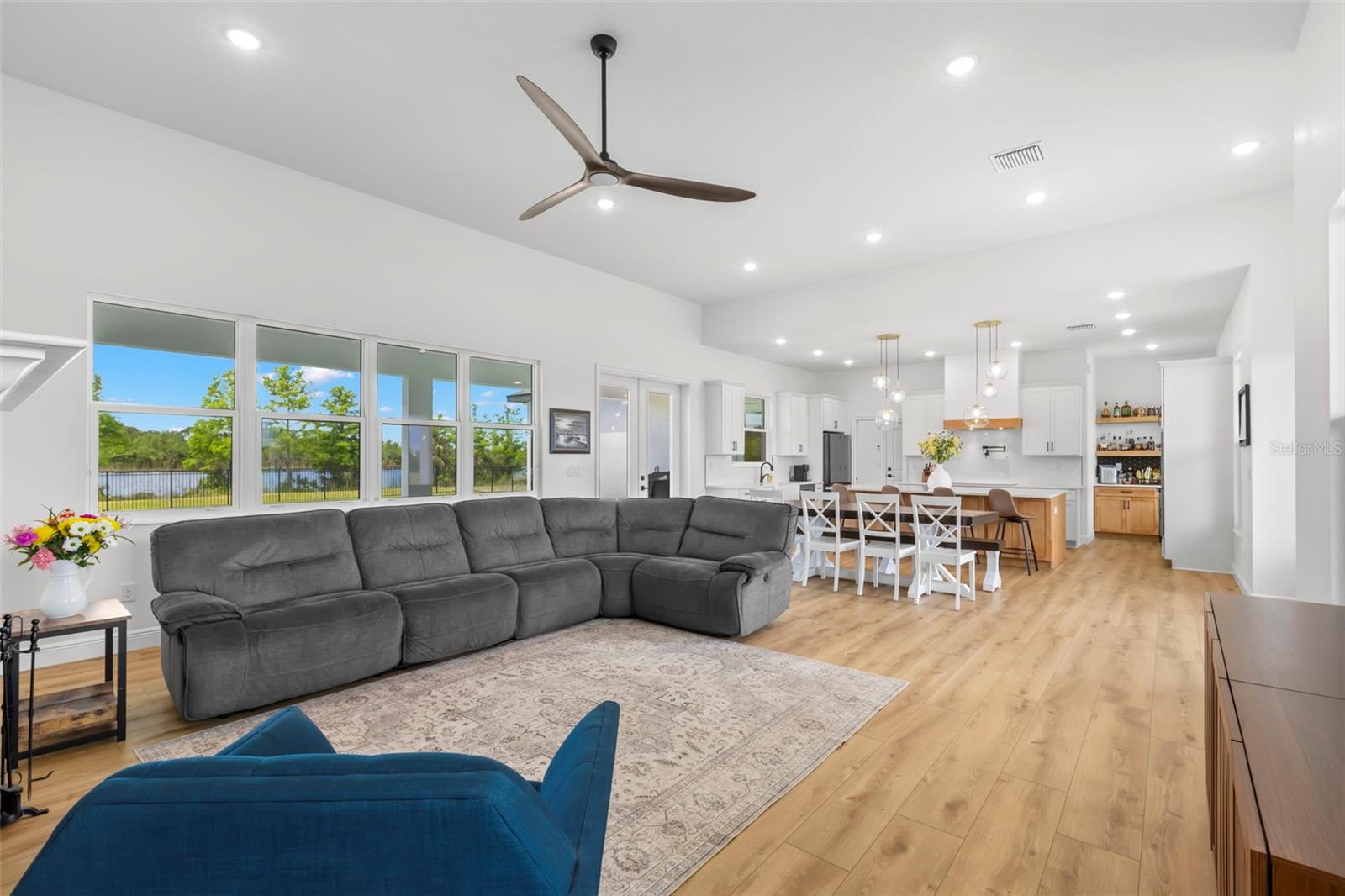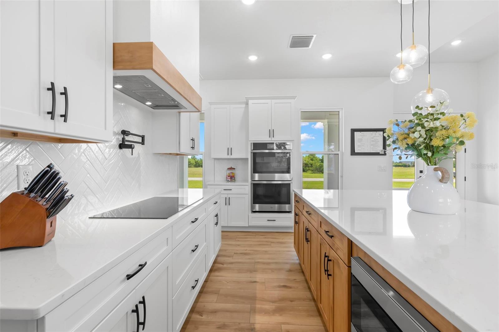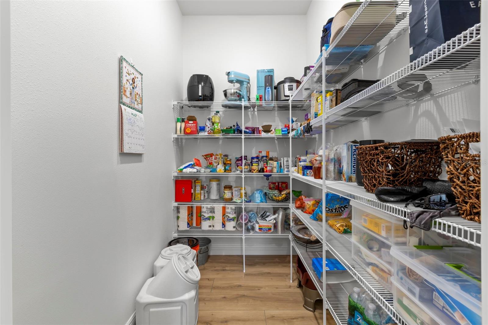 Lost River Preserve is a community with 82 homesites showcasing luxurious executive style properties on oversized lots that are surrounded by 900 acres of nature preserve. This community was featured on HGTV’s 100 Day Dream Home and has hiking trails, covered picnic areas, boat ramps and five private lakes where you will enjoy fishing, boating, waterskiing, kayaking and a variety of wildlife. You can add your own dock and lift if you desire! The community also allows for TWO-STORY detached structures to house all your recreational vehicles and has a lot where you can store your boat for no fee! Custom built by Chadwell Homes, this STUNNING home sits on a waterfront lot that is 1.75 acres and boasts impressive exterior features such as Hardie Board trim, wood gables, a covered entry and a spacious 3-car side-entry garage. The 3-way split floor plan provides privacy and includes 4 bedrooms and 3 full bathrooms. There are two primary bedrooms, each featuring en-suite baths, making this home perfect for multi-generational living. Elegance and comfort blend seamlessly as you enter through the double doors into the GREAT ROOM with 12’ ceilings, LUXURY VINYL PLANK flooring throughout and a fireplace that anchors the living room. The GOURMET kitchen is equipped with double wall ovens, a cooktop, pot filler, a backsplash with herringbone pattern and farmhouse sink with a window view. The white shaker style cabinets blend well with the natural wood cabinetry on the island and custom bar niche complete with open shelving and a wine refrigerator. Extend your living space into the covered rear porch that provides a relaxing area to enjoy gatherings with an expansive backyard which is easily cared for with the automated irrigation system. The yard is fully fenced, there are no backyard neighbors and the 220’ of water frontage provides you with private lake access for many water activities or to simply enjoy the serenity. Back inside, the primary bedroom has a double door entry and windows with motorized blinds. The en-suite is spa-like with a soaker tub, dual split vanities with linen storage, a water closet and a super-sized walk-in shower with seamless glass and shampoo/soap niches. The walk-in closet is large enough to house furniture for if additional storage is needed and has dual shelves. The secondary bedrooms are generously sized and share a hall bath that has tile installed to the ceiling, dual sinks and natural wood cabinetry. The second primary bedroom features a wall niche for furniture and an en-suite bathroom that boasts the same natural wood cabinetry, complete with linen storage. It also includes a walk-in shower adorned with floor-to-ceiling tiles and a seamless glass door. The laundry room has a sink with a vanity, extra storage complemented by countertop folding space, and shelves for hanging your items effortlessly. Additionally, it is connected to the primary bedroom, making this chore a much more enjoyable! Additional features and upgrades include timeless finishes such as black matte hardware and Quartz countertops throughout, a walk-in pantry with an electric outlet, double pane windows, hurricane shutters, oversized garage for larger vehicles, pull down attic access, plumbed for outdoor kitchen and the remainder of the warranties. There is a low HOA, No CDD and this home is not located in a flood zone. In addition to the private lakes, Cockroach Bay State Preserve is 5 minutes away which provides access to Tampa Bay.