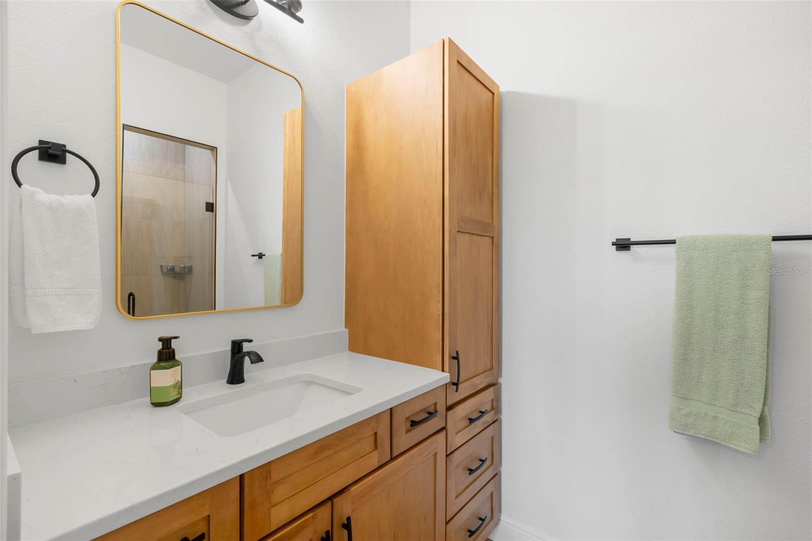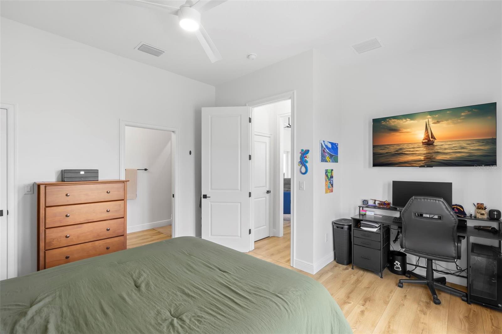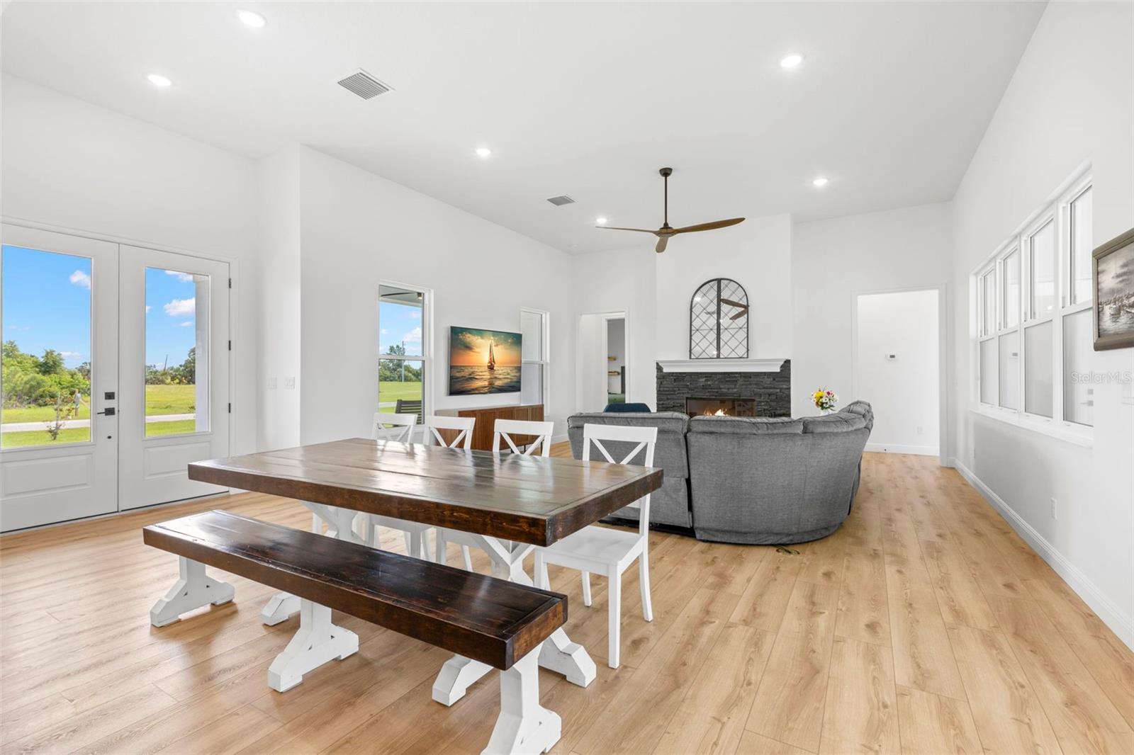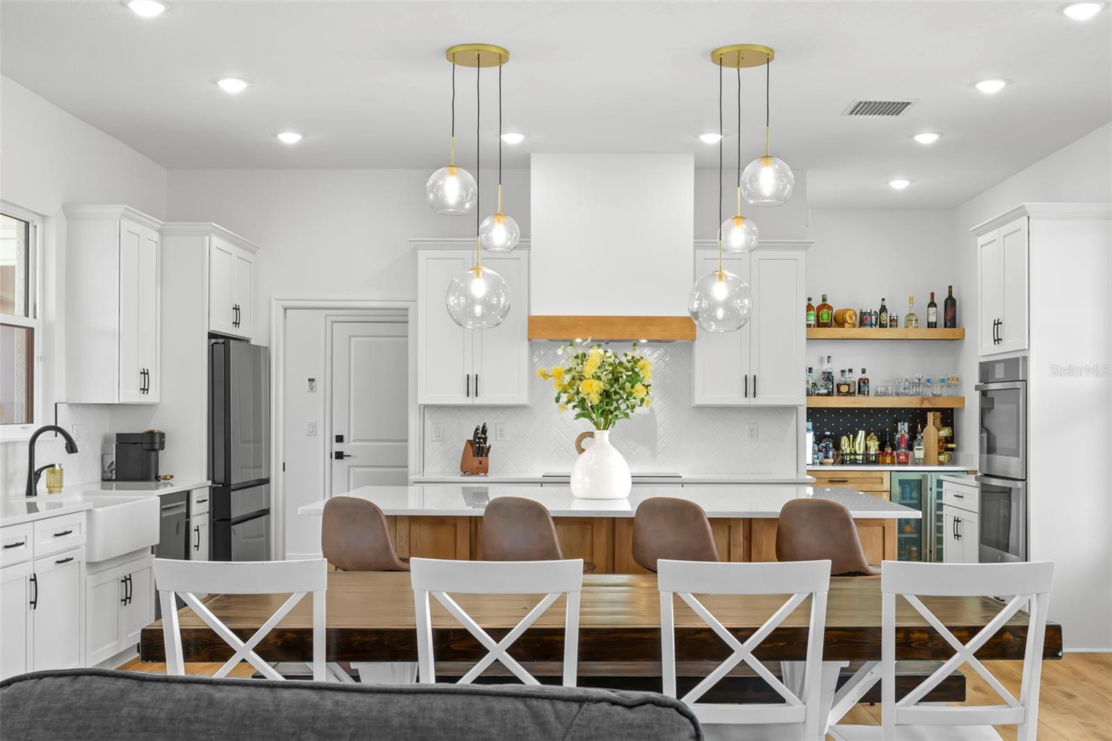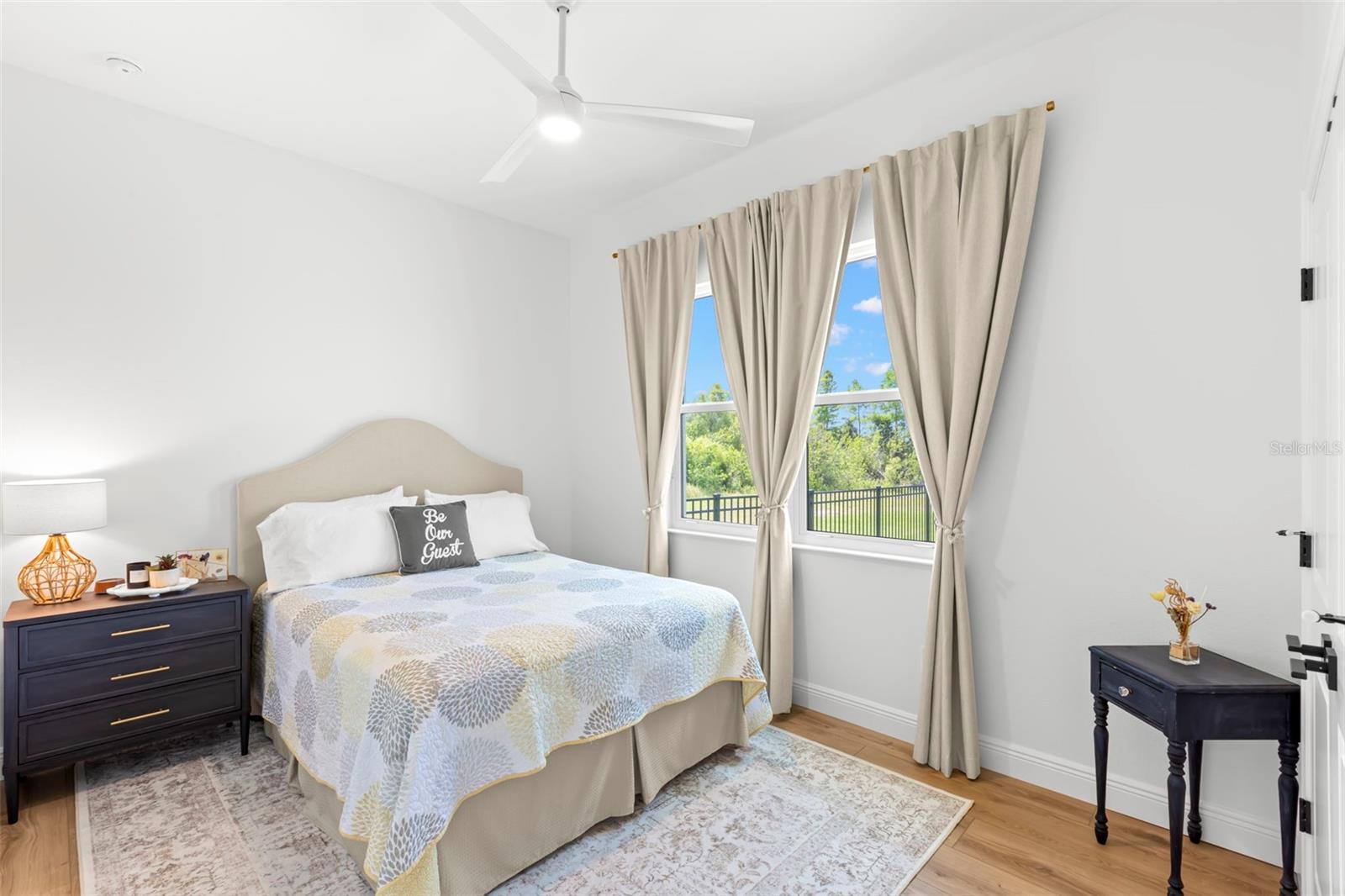 Lost River Preserve is a community with 82 homesites showcasing luxurious executive style properties on oversized lots that are surrounded by 900 acres of nature preserve. This community was featured on HGTV’s 100 Day Dream Home and has hiking trails, covered picnic areas, boat ramps and five private lakes where you will enjoy fishing, boating, waterskiing, kayaking and a variety of wildlife. You can add your own dock and lift if you desire! The community also allows for TWO-STORY detached structures to house all your recreational vehicles and has a lot where you can store your boat for no fee! Custom built by Chadwell Homes, this STUNNING home sits on a waterfront lot that is 1.75 acres and boasts impressive exterior features such as Hardie Board trim, wood gables, a covered entry and a spacious 3-car side-entry garage. The 3-way split floor plan provides privacy and includes 4 bedrooms and 3 full bathrooms. There are two primary bedrooms, each featuring en-suite baths, making this home perfect for multi-generational living. Elegance and comfort blend seamlessly as you enter through the double doors into the GREAT ROOM with 12’ ceilings, LUXURY VINYL PLANK flooring throughout and a fireplace that anchors the living room. The GOURMET kitchen is equipped with double wall ovens, a cooktop, pot filler, a backsplash with herringbone pattern and farmhouse sink with a window view. The white shaker style cabinets blend well with the natural wood cabinetry on the island and custom bar niche complete with open shelving and a wine refrigerator. Extend your living space into the covered rear porch that provides a relaxing area to enjoy gatherings with an expansive backyard which is easily cared for with the automated irrigation system. The yard is fully fenced, there are no backyard neighbors and the 220’ of water frontage provides you with private lake access for many water activities or to simply enjoy the serenity. Back inside, the primary bedroom has a double door entry and windows with motorized blinds. The en-suite is spa-like with a soaker tub, dual split vanities with linen storage, a water closet and a super-sized walk-in shower with seamless glass and shampoo/soap niches. The walk-in closet is large enough to house furniture for if additional storage is needed and has dual shelves. The secondary bedrooms are generously sized and share a hall bath that has tile installed to the ceiling, dual sinks and natural wood cabinetry. The second primary bedroom features a wall niche for furniture and an en-suite bathroom that boasts the same natural wood cabinetry, complete with linen storage. It also includes a walk-in shower adorned with floor-to-ceiling tiles and a seamless glass door. The laundry room has a sink with a vanity, extra storage complemented by countertop folding space, and shelves for hanging your items effortlessly. Additionally, it is connected to the primary bedroom, making this chore a much more enjoyable! Additional features and upgrades include timeless finishes such as black matte hardware and Quartz countertops throughout, a walk-in pantry with an electric outlet, double pane windows, hurricane shutters, oversized garage for larger vehicles, pull down attic access, plumbed for outdoor kitchen and the remainder of the warranties. There is a low HOA, No CDD and this home is not located in a flood zone. In addition to the private lakes, Cockroach Bay State Preserve is 5 minutes away which provides access to Tampa Bay.