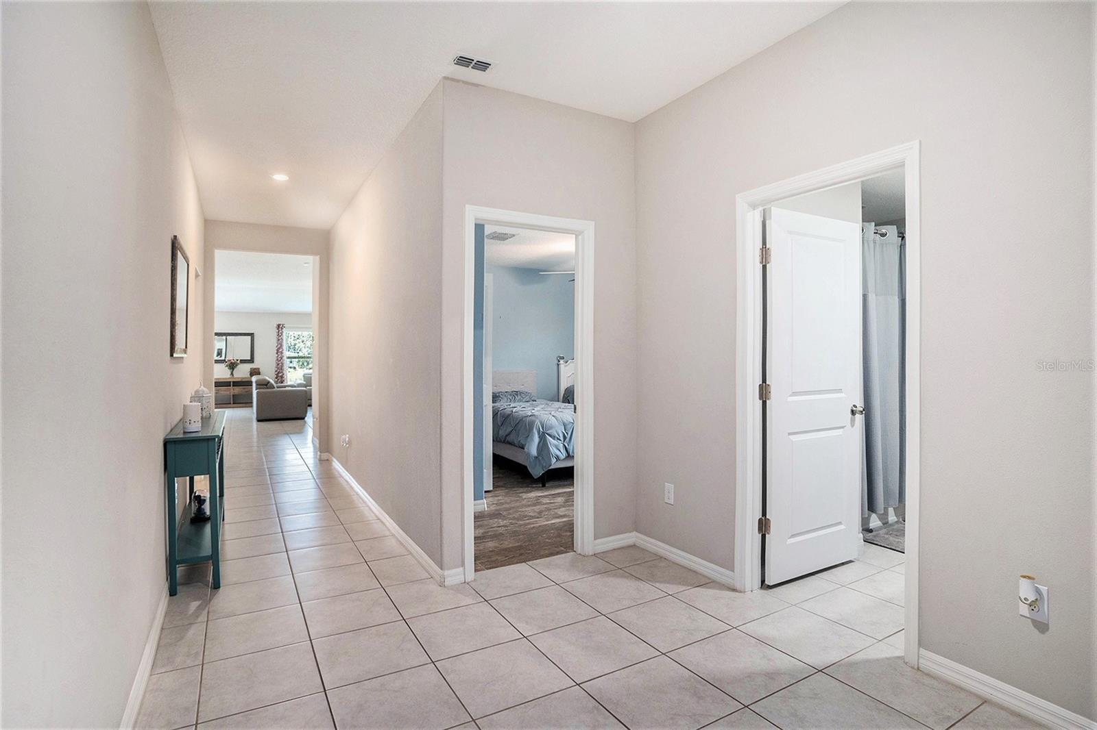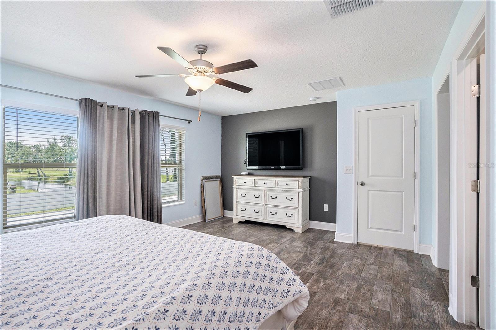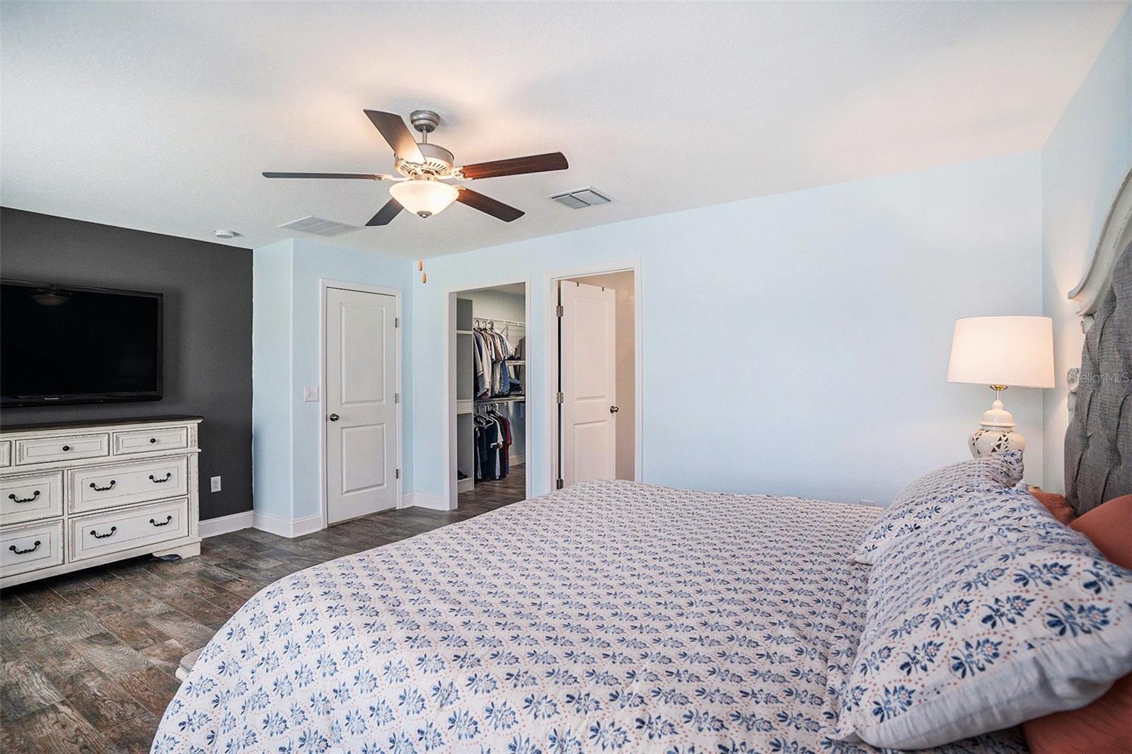 Come tour this exceptional 5-bedroom, 3-bathroom gem built in 2021, featuring an oversized 3-car garage and the only five-bedroom layout in the entire community! This remarkable home makes a lasting impression with its charming front porch framed by elegant columns, delivering timeless curb appeal from the moment you arrive. Inside, you're welcomed by soaring 9-foot ceilings, a spacious foyer, and a thoughtfully designed multi-generational split floor plan with not one, but TWO PRIVATE EN SUITES, each offering generous walk-in closets for ultimate comfort and convenience. Every bedroom offers ample space with no room measuring under 10 feet, and there are no small closets in sight—custom shelving has been added throughout to maximize functionality and style. At the heart of the home lies the expansive open-concept kitchen, living, and dining area. The kitchen is truly a showstopper, featuring an oversized island that comfortably seats five, rich dark wood cabinetry with extensive storage, and sleek dark granite countertops. Upgraded sink fixtures, stainless steel appliances, a large walk-in pantry, and a custom-installed stove vent—rarely included by builders—complete this high-performance culinary space. The kitchen flows seamlessly into a spacious 21-foot-wide living room that easily accommodates oversized furniture while maintaining an open and airy feel. Adjacent, the dining area is illuminated by a chic light fixture and perfectly suited for both formal gatherings and everyday meals. Throughout the home, you’ll find tasteful wooden backsplashes (removable if desired) and stylish upgraded light fixtures that add warmth and personality. The owner’s suite closet has been cleverly closed off from the bathroom to enhance privacy, space, and now features custom shelving—ready to be further tailored to its next owner. The laundry room is currently being used as an office, but can easily transition back into its original purpose. Meanwhile, the washer and dryer remain in the garage and will convey with the sale. The garage itself is a standout space, boasting added overhead storage shelving, a speaker system, and a mounted TV—all of which are included with the home! Step outside to enjoy partial water views and a sprawling patio area, ideal for entertaining or adding your own canopy to create the perfect shaded retreat. Energy-efficient solar panels keep electric bills as low as $65 a month (in the summertime!) and will be fully paid off for your benefit, and a comprehensive ADT security system with doorbell and perimeter cameras adds peace of mind. A fun, unique bonus to this home is the thriving aloe vera plant ready for use - your next home is ready to take care of you already! The home will be professionally cleaned prior to closing and is move-in ready for its next chapter. Located in the rapidly growing city of Ruskin, this home is minutes from everyday essentials, with new development and amenities continuously emerging. Just a few miles from I-75 and conveniently positioned along Highway 41, commuting is simple and stress-free. Schedule your private tour today—this is a rare opportunity to own a home that blends thoughtful upgrades, expansive space, and modern comfort in one remarkable package.