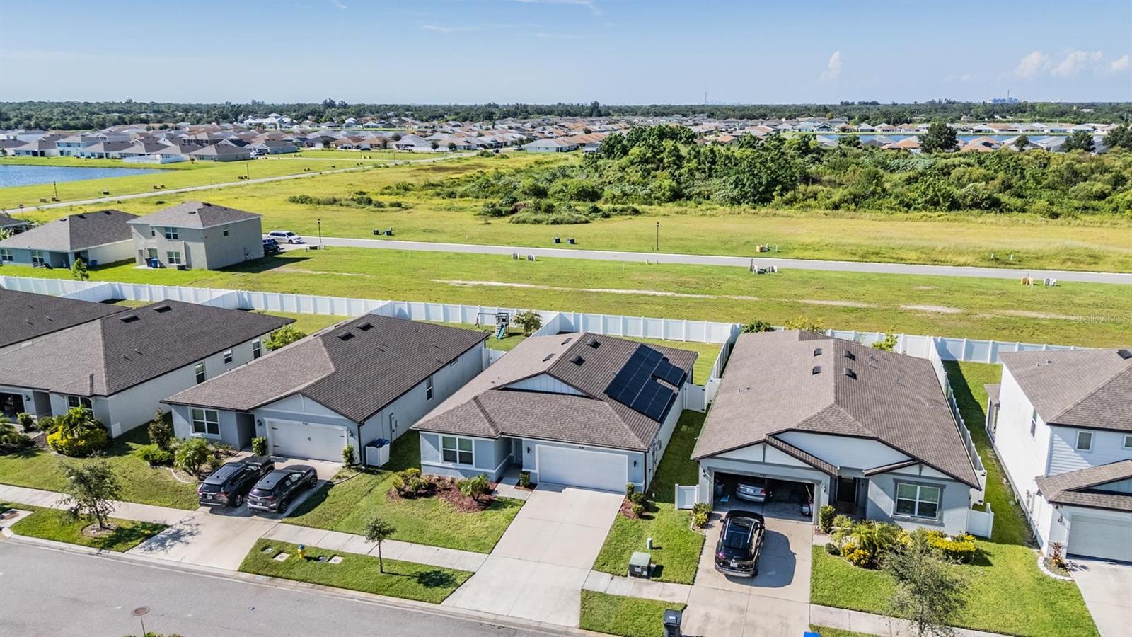 One or more photo(s) has been virtually staged. PRICE DROP – NOW $339,000! Skip the wait for new construction — this move-in ready 3-bed, 2-bath home in Brookside is packed with upgrades and ready to go right now. You’ll love the open floor plan, granite countertops, large kitchen island, and all appliances included. The spacious living and dining areas flow to a covered lanai and fenced backyard, perfect for entertaining or relaxing in privacy. The primary suite features a walk-in closet, dual vanity, and tiled walk-in shower. Two additional bedrooms and a full guest bath complete the layout — ideal for family, guests, or a home office. This home also comes loaded with extras you won’t find in new builds at this price: paid-off solar panels, a Tesla charger, Generac transfer switch, and washer/dryer included. All this in a low-fee community with a pool, clubhouse, playground, and mail station — just $10/month HOA! At this price, this one won’t last long. Secure a move-in ready, energy-efficient home in one of South Shore’s most convenient locations before it’s gone!
