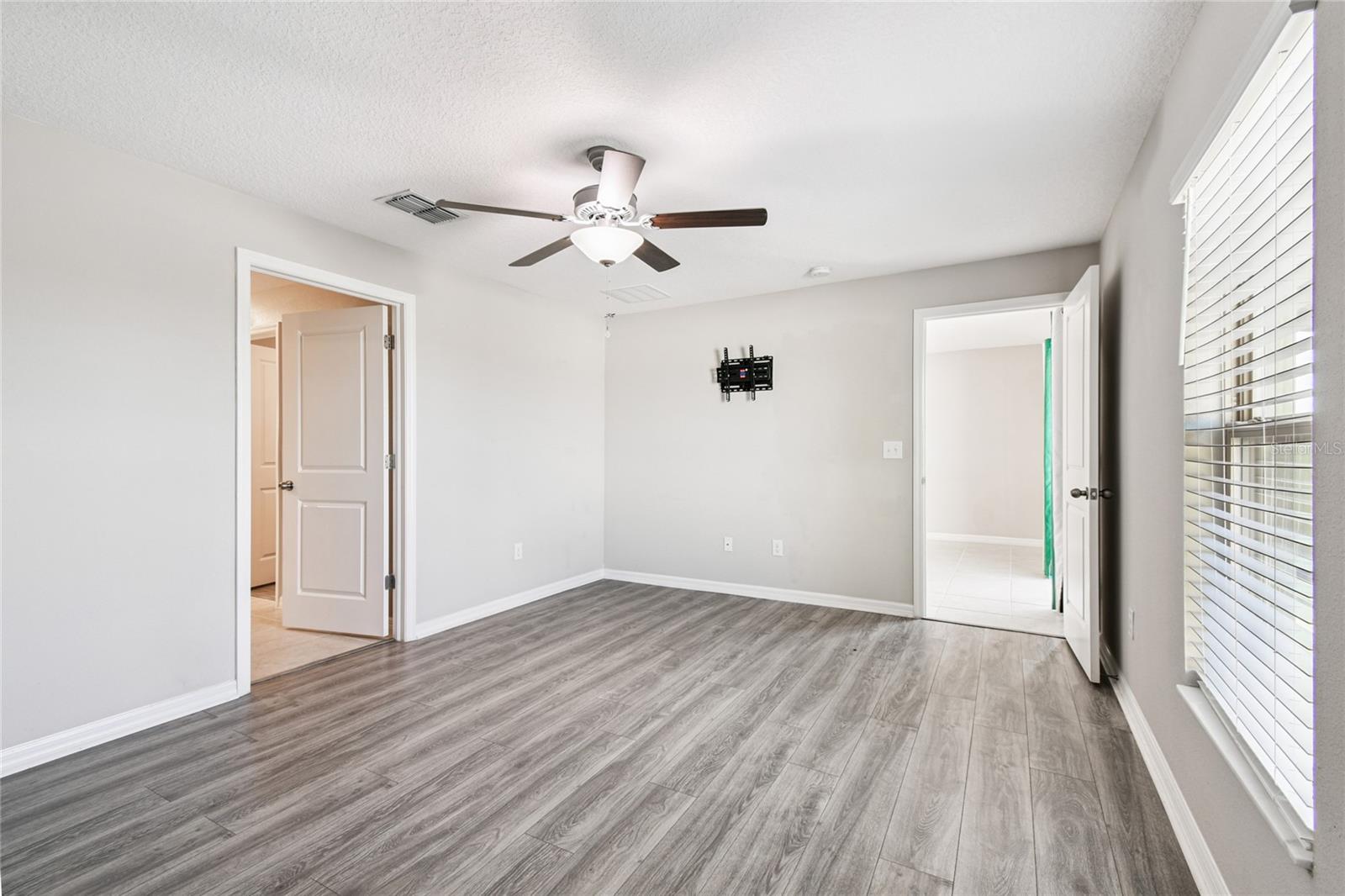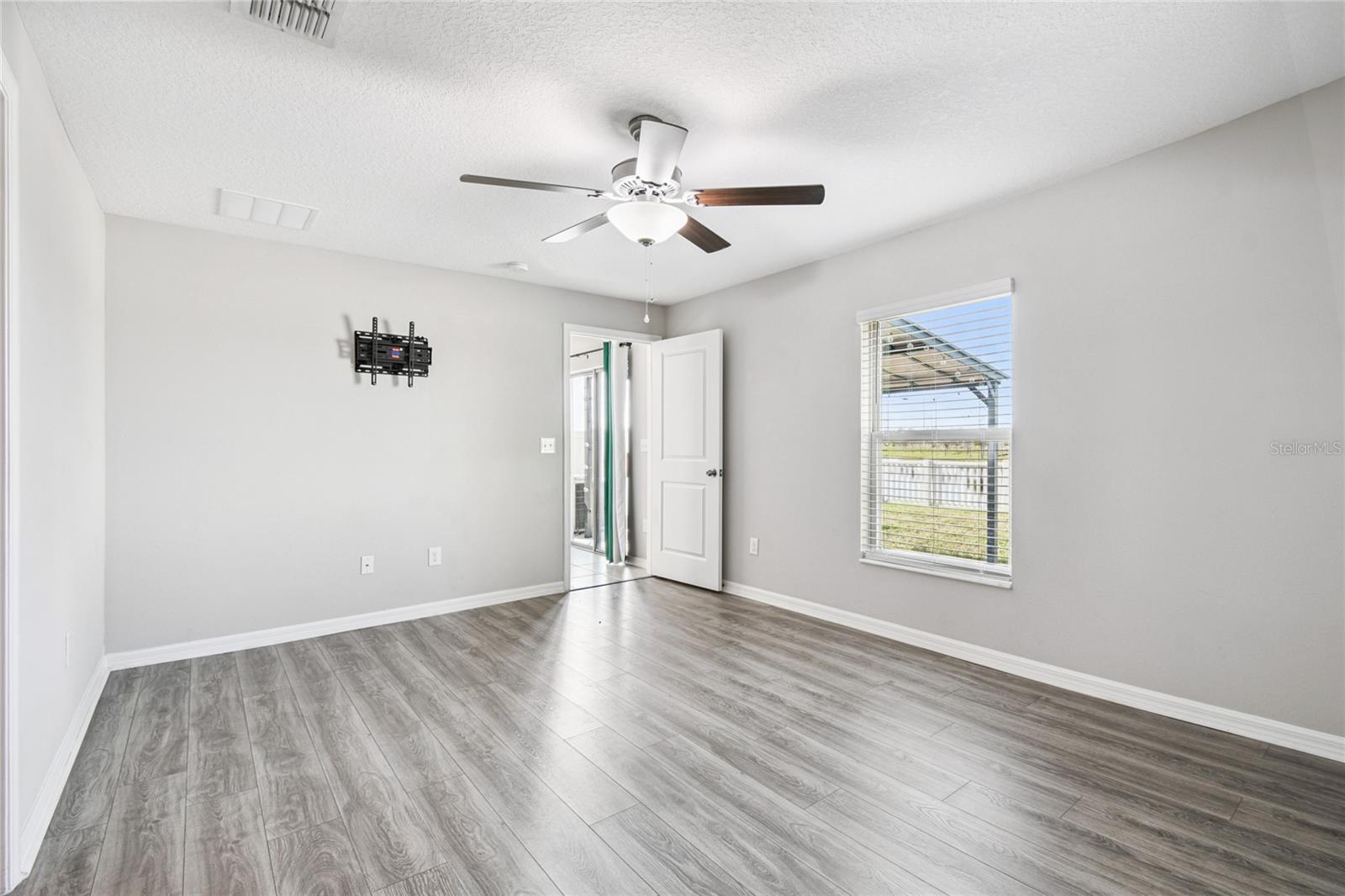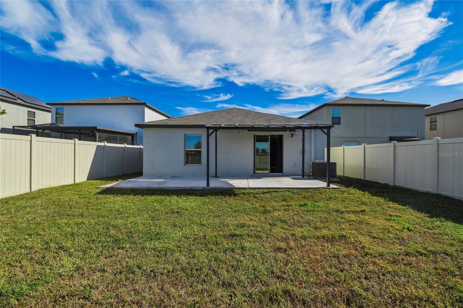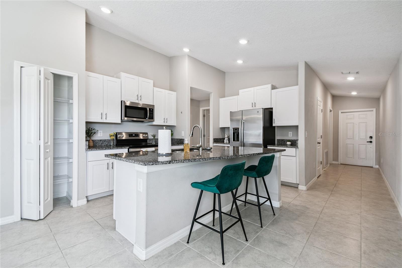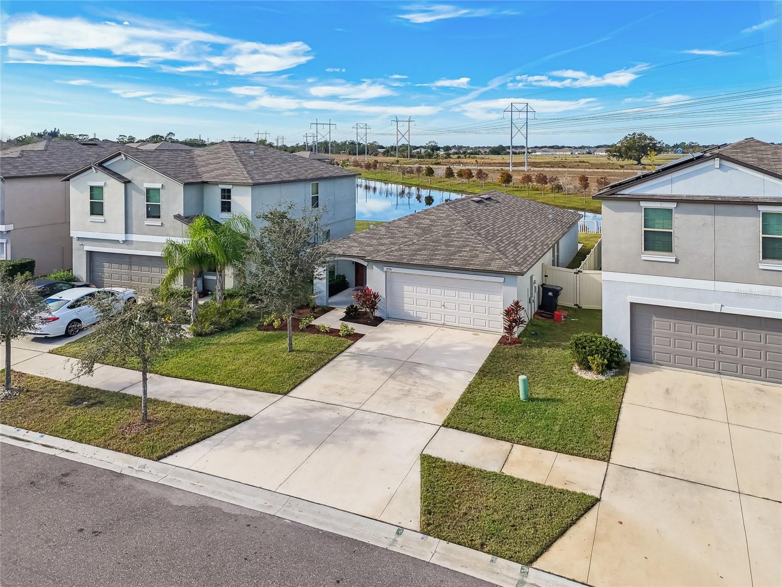 Set on a pond with no rear neighbors, this 2021 Ruskin home blends privacy and low upkeep with 3 bedrooms, 2 bathrooms, and a 2-car garage. Plus, the low HOA fee of $157 per year keeps monthly costs friendly while you enjoy the community. Step through the foyer into an open floor plan that connects kitchen, dining, and living spaces for daily comfort and effortless entertaining. Tile floors carry through the main areas while vinyl-plank flooring in the bedrooms adds a warm, practical finish. Recessed lighting brightens the kitchen, foyer, laundry, and baths for a clean, consistent look. The kitchen sits beside the dining area and features an island with seating, generous prep space, and a sink with a built-in glass rinser. Granite countertops, stainless-steel appliances, abundant cabinetry, and a pantry keep cooking streamlined and storage simple. Sliding glass doors extend the living room to the back patio and frame a relaxing pond view. Tucked at the rear of the home for added privacy, the primary suite includes a large walk-in closet, a dual-sink vanity, a glass-enclosed walk-in shower, and a toilet room with a door. Two additional bedrooms are positioned up front with comfortable dimensions and large closets, while the second bath offers a tidy tub-and-shower combination with a white vanity. Daily function is dialed in with a laundry room by the garage entry and wire-rack shelving for supplies. The 2-car garage is spacious and clean with metal hurricane shutters stored on site. Extra storage includes a closet near the front entry and a linen closet near the second bath. Out back, the seller expanded the patio with poured concrete and added a covered steel pergola with a durable roof panel, creating a shaded place to relax, grill, or unwind by the water. Spencer Creek rounds out the setting with a community pool, playground, and basketball court, and the location keeps shopping, dining, and major routes within easy reach. Move-in ready and quietly set on the water, this home is prepared for easy living from day one.