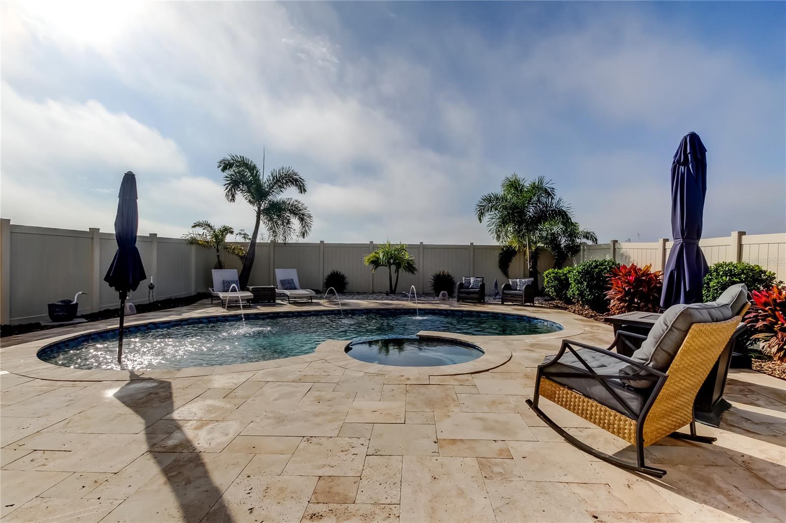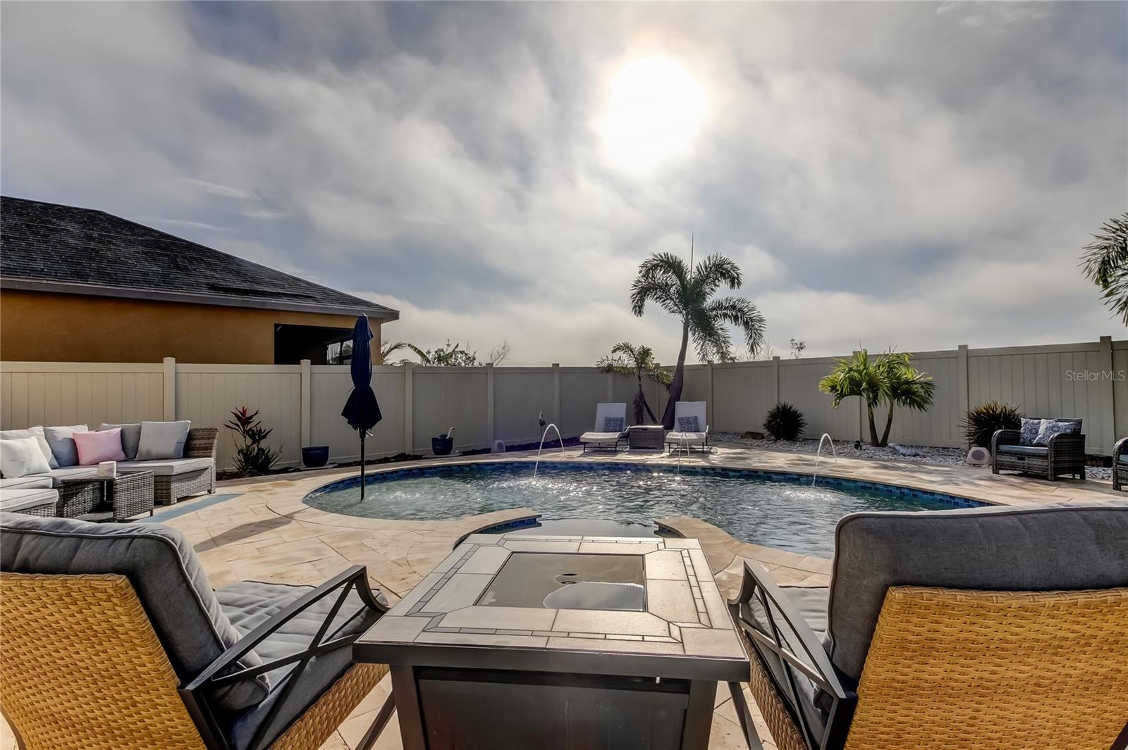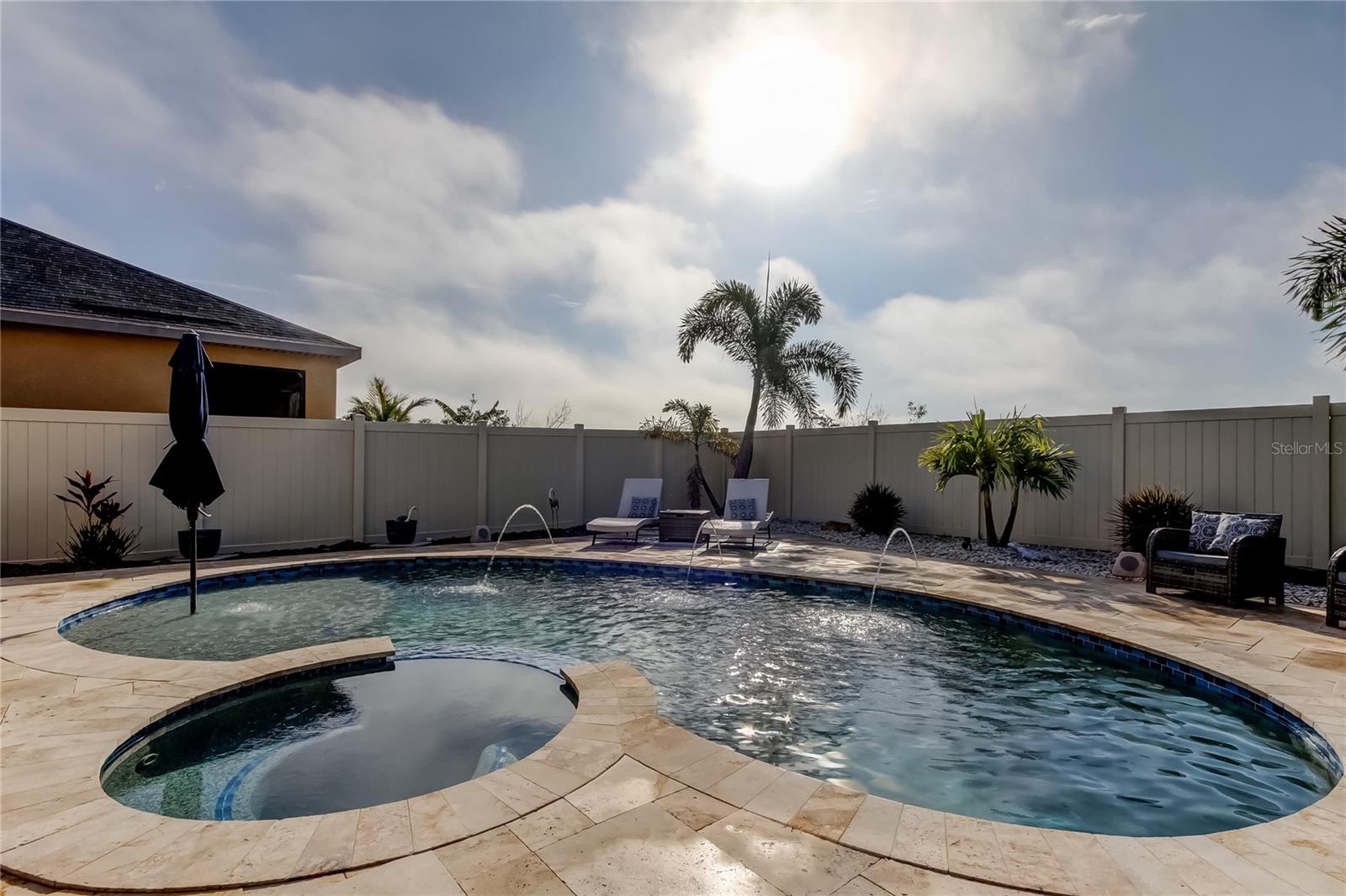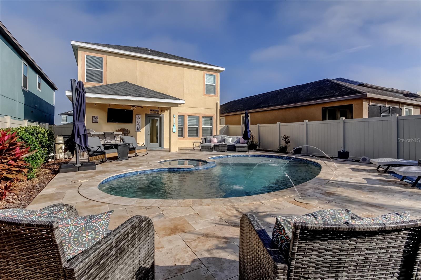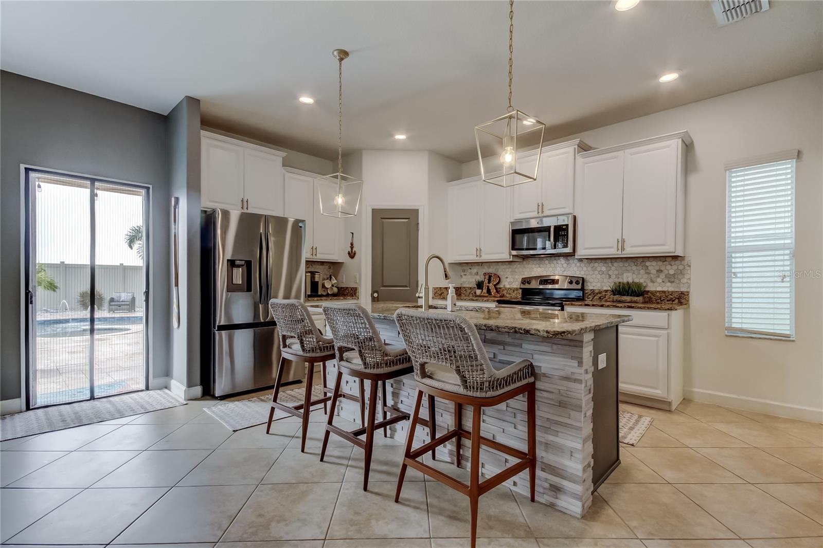 Welcome to this beautifully updated three-bedroom, two-and-a-half-bath home with a versatile loft, private pool, and outdoor kitchen, backing to a conservation area with no rear neighbors. Inside, enjoy soaring 10-foot ceilings, updated lighting, ceramic tile on the first floor, and NEW luxury vinyl plank flooring upstairs (2023)—with no carpet throughout. The open kitchen features granite countertops and stainless steel appliances. Major upgrades include a NEW HVAC system with transferable warranty (2025), NEW IntelliChlor pool system (2025), and NEW refrigerator and dishwasher (2025). Also included is a full camera security system. The spacious owner’s suite features a walk-in closet with custom built-ins and an en-suite bathroom with double sinks, a walk-in shower, and a garden tub. Step outside to a private, fully fenced backyard oasis with a saltwater pool and spa plus a fully equipped outdoor kitchen with stainless steel cabinetry, built-in grill, and mini bar refrigerator—perfect for entertaining. Located in the desirable Belmont community, residents enjoy resort-style amenities including a community pool, walking trails, playground, basketball court, tennis and pickleball courts, and a clubhouse—all with low HOA fees. This home is ideally situated near major highways, shopping, and restaurants, offering the perfect blend of comfort, convenience, and Florida living.