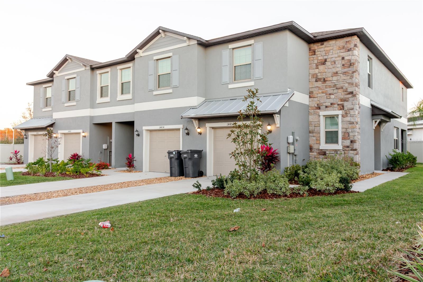 Welcome to Townhomes at Belmont! Located within a secure, gated enclave of the highly sought-after Belmont master-planned community, this stylish, newly built (2023) townhome offers the perfect blend of modern design, comfort, and functionality across 1,701 square feet of living space. From the moment you enter, you’ll know this home is truly a class apart. The bright and airy open-concept floor plan features beautiful ceramic tile flooring throughout the main level and a spacious living, dining, and kitchen combination—ideal for everyday living and entertaining family and friends. The modern kitchen is equipped with stainless steel, like-new appliances, a breakfast bar, ample cabinetry, and generous counter space. A conveniently located powder room completes the first floor. Upstairs, a versatile loft area provides the perfect space for a home office, study, or additional living area. The expansive primary suite offers a private retreat with a large walk-in closet and an elegant en-suite bathroom featuring dual vanities, a glass-enclosed walk-in shower, a separate toilet area, and a linen closet. Two generously sized secondary bedrooms include ceiling fans and built-in closet space and share a full guest bathroom with a granite countertop and tub/shower combination. A second-floor laundry room with washer and dryer adds everyday convenience. This home comes fully equipped with major appliances, including refrigerator, range, dishwasher, microwave, washer, and dryer. Step outside to the covered lanai, perfect for grilling, relaxing, or enjoying the backyard. The attached one-car garage provides ample space for parking and additional storage. Residents enjoy access to a community pool, as well as Belmont’s extensive amenities, including parks, walking trails, playgrounds, and recreational spaces. Water is included through the HOA. Ideally located near Publix, shopping, dining, and everyday conveniences, this home also offers easy access to US-301 and I-75, making commutes to Tampa, Brandon, and surrounding areas quick and convenient. Don’t miss this opportunity—come make Townhomes at Belmont the place you call home today!