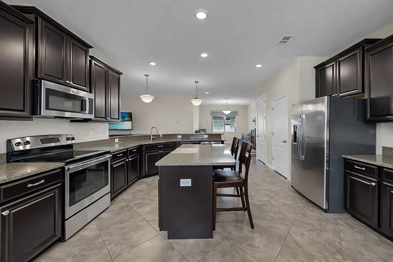 Situated on a beautifully manicured lot with a serene pond view, prepare to be impressed by this well loved and maintained 4 Bedroom/3 Bath/3 car garage home located in the Gated community of Spyglass at RiverBend. Upon arrival you will notice the upgraded landscaping with concrete borders, spacious yard, NEW ROOF (2025),and freshly painted exterior (2024). Once inside, the floorplan is open and inviting with lots of natural light throughout! The large eat-in kitchen is the perfect place to entertain with TONS of counterspace, beautiful Quartz counters, center island, breakfast bar, and 42” espresso cabinetry with pull-out shelving for added storage and organization. There is a separate formal dining area, and a well appointed Living room with views of the peaceful outdoors. The owner’s retreat is the perfect place to unwind, and includes a large walk in closet and en-suite bathroom complete with relaxing garden tub, amazing walk-in shower, and granite countertops with double sink vanity. The secondary bedrooms are spacious, and the guest bathrooms feature granite counters and great space. Bedroom 4 includes its own en-suite bathroom that is perfect for guests or multi-generational living. The covered and screened in patio includes a beautiful view of the pond and Large backyard. There is plenty of room to put your finishing touches and to create your own personal oasis! Located in a NON Flood Zone, Riverbend offers tons of amenities that include a Clubhouse, Fitness Center, New Resort Style Pool, Dog Park, Walking Trails and Community Events. Conveniently located close to major highways, shopping, and restaurants - and an easy drive to MacDill AFB and gorgeous gulf beaches! The BEST of Florida living!
