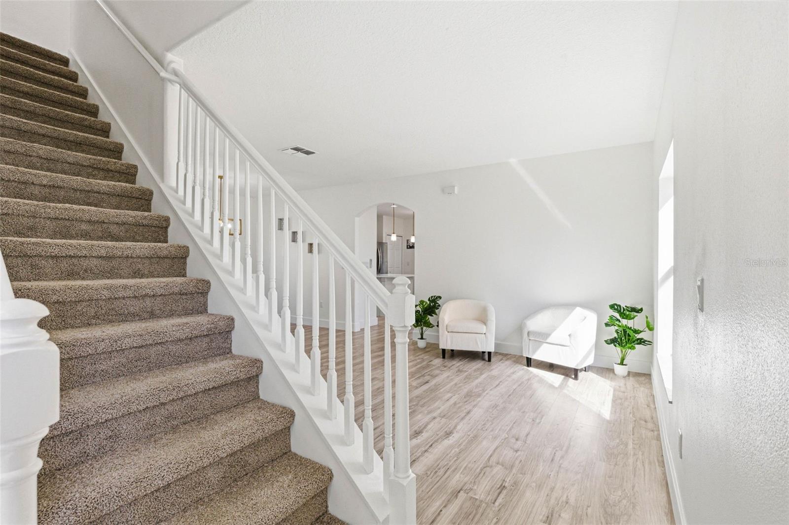 SELLER WILL ASSIST WITH BUYERS CLOSING COSTS! Tucked away on a quiet cul-de-sac, this beautifully renovated home sits on an oversized lot with peaceful lake views and room to truly breathe. From the moment you arrive, the fresh exterior paint, landscaping and brand-new sod set the tone for what’s waiting inside. Enjoy peace of mind with a BRAND NEW ROOF and NEW HVAC! Step through the door and you’ll feel it immediately — light, open, and completely move-in ready. The main level features durable, stylish LVP flooring throughout, leading you into an updated kitchen designed for both everyday living and entertaining. The bathrooms have each been updated with eye-catching tile that gives each space a clean, modern feel, while brand-new carpet upstairs adds warmth and comfort where it matters most. Outside, the oversized backyard with tranquil lake views is the perfect setting for morning coffee, weekend gatherings, or simply unwinding at the end of the day. And with a very low HOA, you get the lifestyle without the heavy monthly fees. Homes with this combination of updates, lot size, location, and view are rare — seeing it in person is when it really hits.