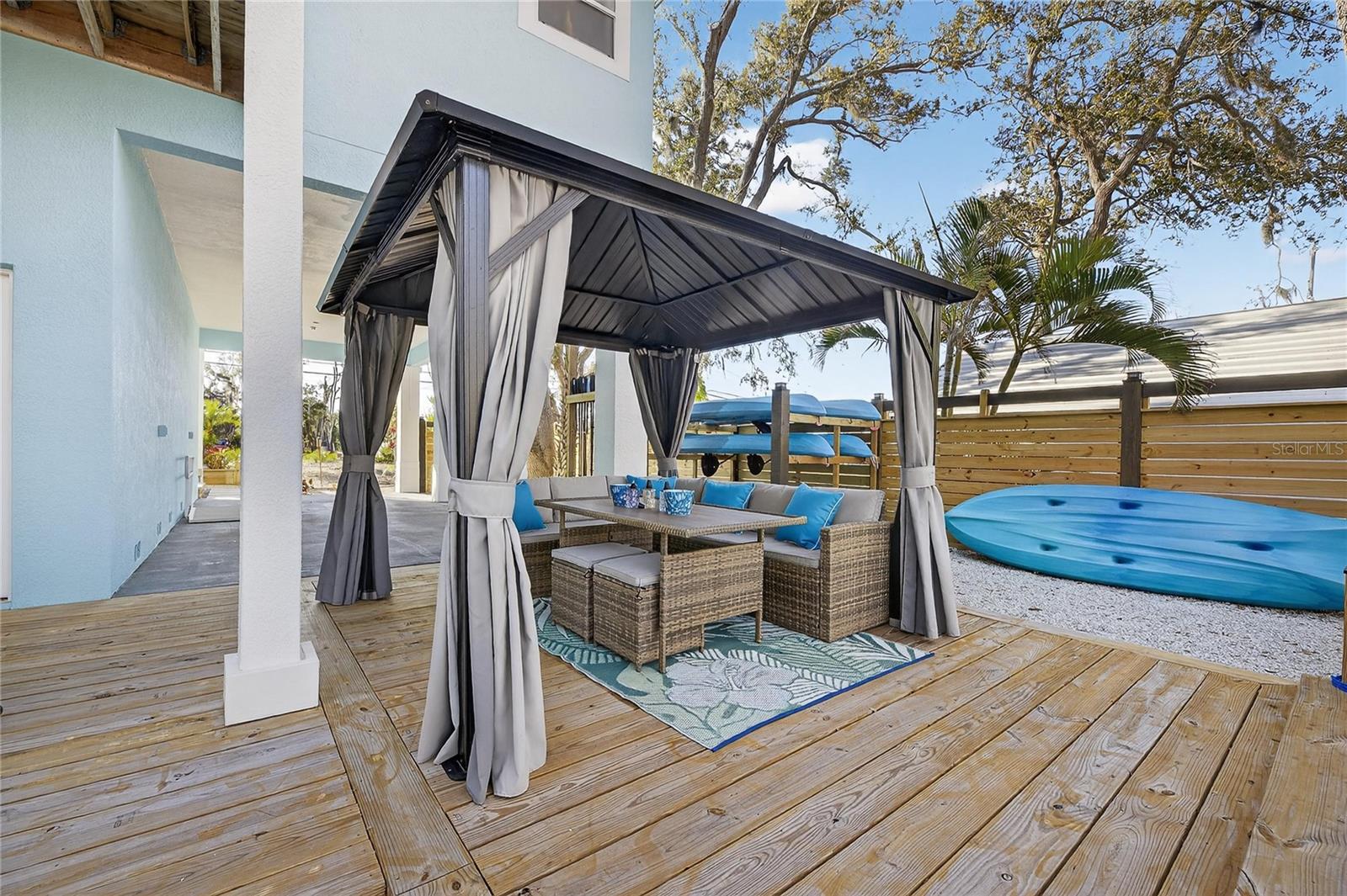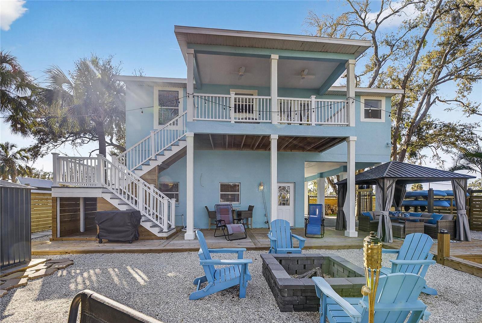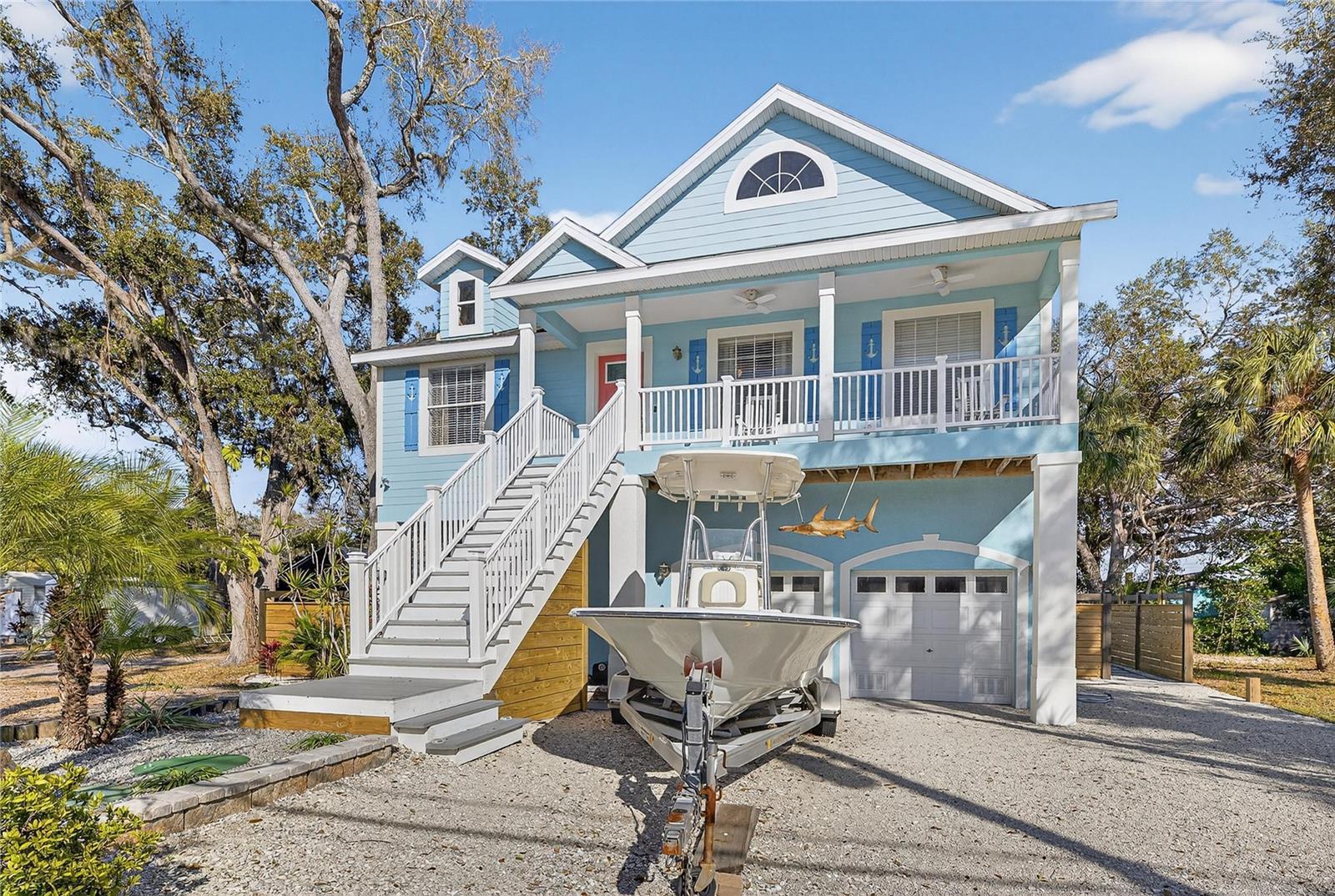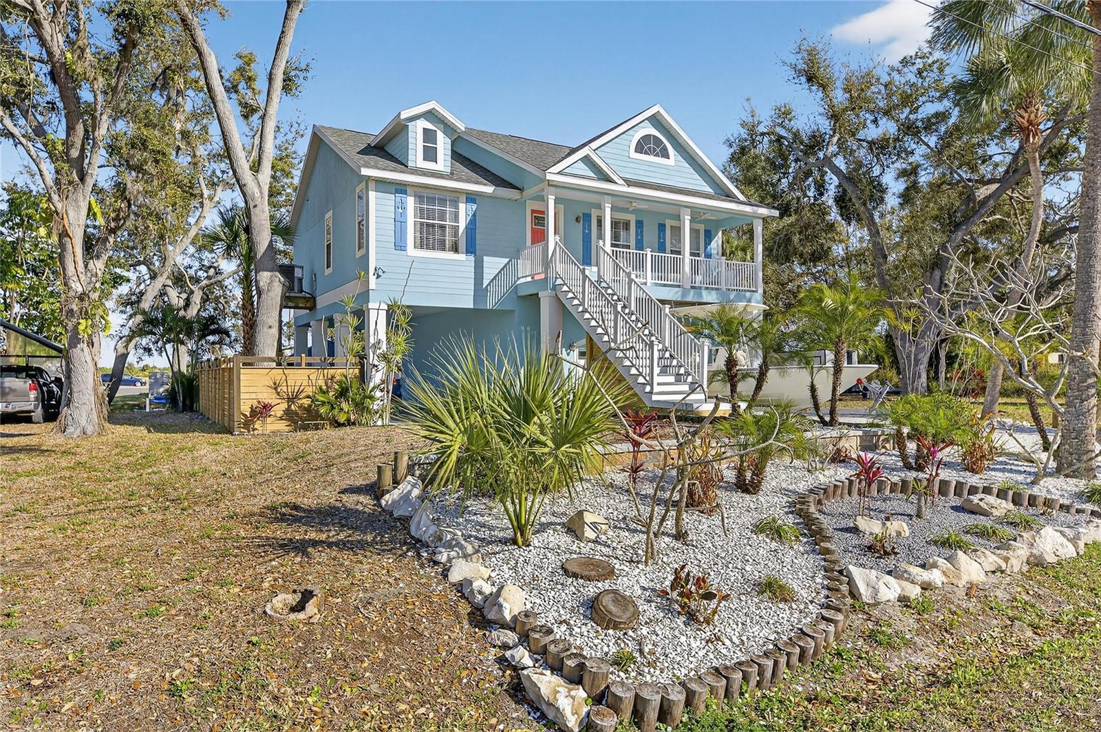 1116 Canal St | 4 Bedrooms | 3 Bathrooms | 1,545 Sq Ft | Canal Front | No HOA Canal-front living with no HOA in this fully remodeled 4-bedroom, 3-bath, 2-car garage home located in a quiet Ruskin neighborhood Steps from Tampa Bay. This property offers direct canal access, a private dock, and a separate in-law suite, making it ideal for multi-generational living, guests, or rental flexibility. The main living level features luxury vinyl flooring, vaulted ceilings, wainscoting, plant ledges, and French doors, all finished in modern coastal-inspired colors and design. The kitchen includes white cabinetry, granite countertops, pendant lighting over the island with breakfast bar, stainless steel appliances, French door refrigerator, tile backsplash, recessed lighting, and a window overlooking the canal. The primary suite offers dual closets and a well-appointed bath with a jetted garden tub, separate shower with decorative niche and glass doors, split custom cabinet vanities, framed mirrors, and shiplap accents that continue the coastal feel of the home. The downstairs in-law suite functions as a studio apartment and includes a ceiling fan, crown molding, kitchenette with stainless steel refrigerator and microwave, granite counters, recessed lighting, a full bath with shower, quartz vanity with framed mirror, and a private washer and dryer. Outdoor living is a standout feature with bay views from the front patio and a backyard designed for waterfront enjoyment. The yard is finished with crushed shell and includes a 10x10 gazebo, firepit, a 6-boat kayak rack, kayak/canoe launch, and a private dock on a quiet canal. The dock features solar-powered lighting, and the covered rear patios on two levels include ceiling fans and outdoor lighting. Paver walkways with glued gravel connect the outdoor spaces, and mature trees provide privacy. There is also an outdoor shower and abundant storage space under both the front and rear patio stairs. Additional practical features include major mechanical systems thoughtfully elevated above ground level for added peace of mind. Conveniently located off US Highway 41 with easy access to St. Petersburg, Bradenton, Sarasota, Tampa, major sporting and concert venues, and world-class Gulf beaches, this canal-front home offers a rare combination of location, functionality, and waterfront lifestyle.