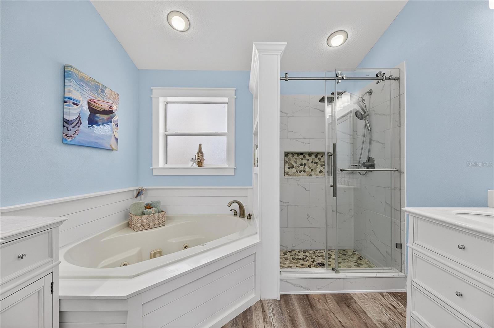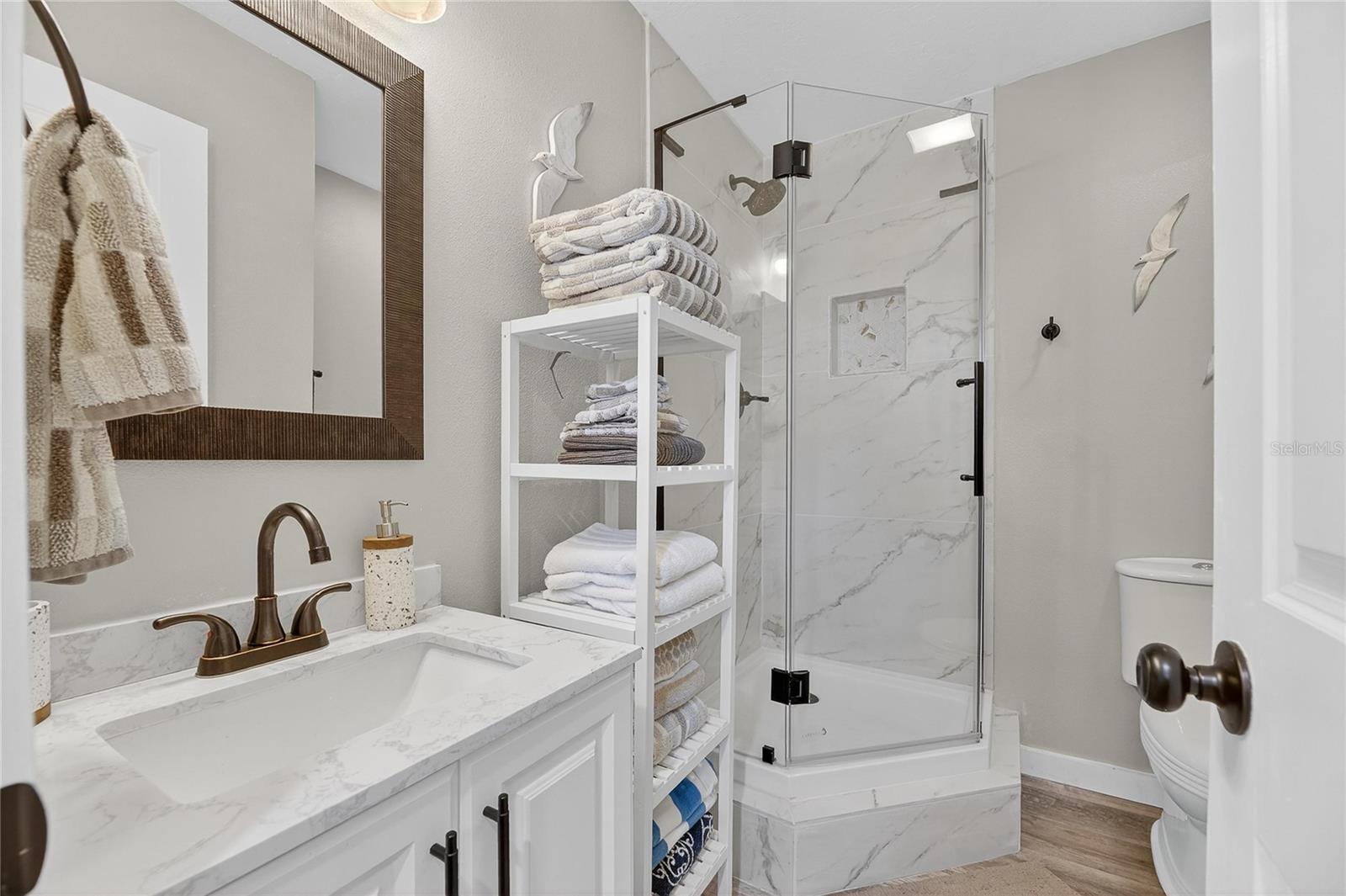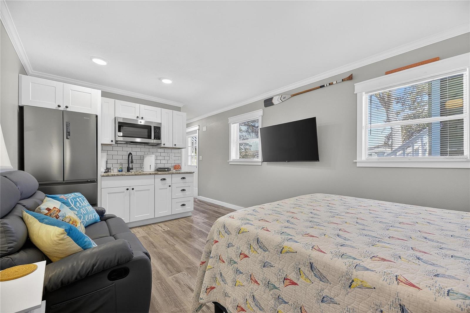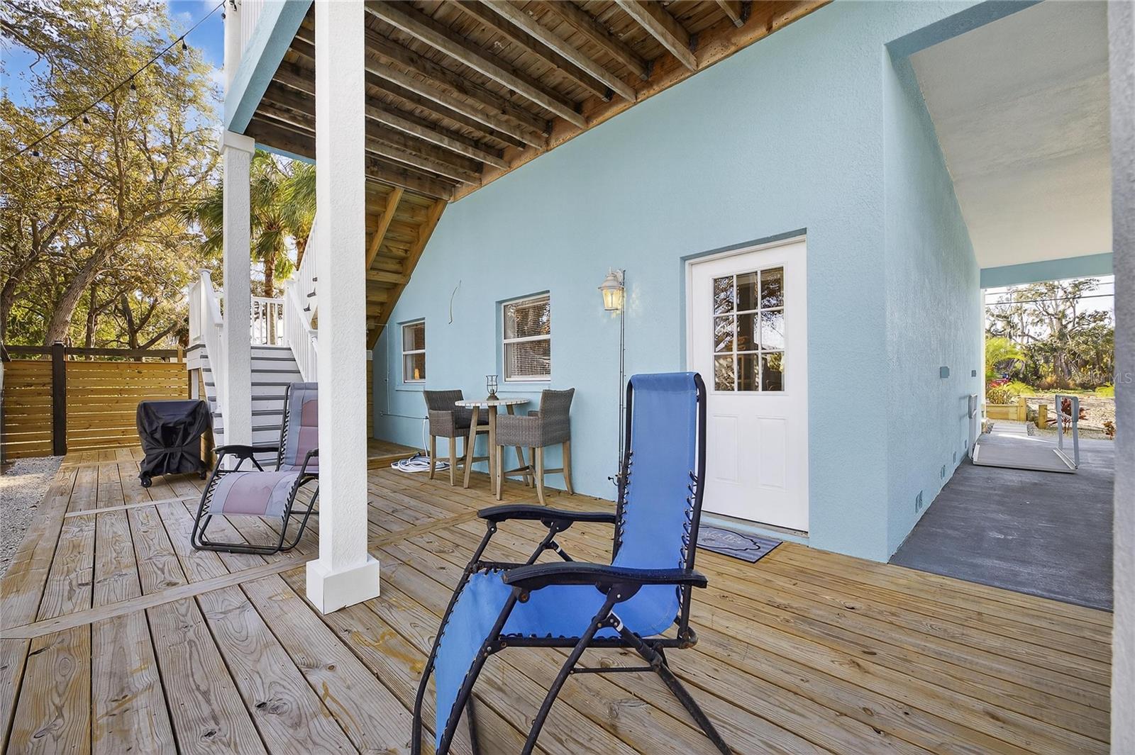 1116 Canal St | 4 Bedrooms | 3 Bathrooms | 1,545 Sq Ft | Canal Front | No HOA Canal-front living with no HOA in this fully remodeled 4-bedroom, 3-bath, 2-car garage home located in a quiet Ruskin neighborhood Steps from Tampa Bay. This property offers direct canal access, a private dock, and a separate in-law suite, making it ideal for multi-generational living, guests, or rental flexibility. The main living level features luxury vinyl flooring, vaulted ceilings, wainscoting, plant ledges, and French doors, all finished in modern coastal-inspired colors and design. The kitchen includes white cabinetry, granite countertops, pendant lighting over the island with breakfast bar, stainless steel appliances, French door refrigerator, tile backsplash, recessed lighting, and a window overlooking the canal. The primary suite offers dual closets and a well-appointed bath with a jetted garden tub, separate shower with decorative niche and glass doors, split custom cabinet vanities, framed mirrors, and shiplap accents that continue the coastal feel of the home. The downstairs in-law suite functions as a studio apartment and includes a ceiling fan, crown molding, kitchenette with stainless steel refrigerator and microwave, granite counters, recessed lighting, a full bath with shower, quartz vanity with framed mirror, and a private washer and dryer. Outdoor living is a standout feature with bay views from the front patio and a backyard designed for waterfront enjoyment. The yard is finished with crushed shell and includes a 10x10 gazebo, firepit, a 6-boat kayak rack, kayak/canoe launch, and a private dock on a quiet canal. The dock features solar-powered lighting, and the covered rear patios on two levels include ceiling fans and outdoor lighting. Paver walkways with glued gravel connect the outdoor spaces, and mature trees provide privacy. There is also an outdoor shower and abundant storage space under both the front and rear patio stairs. Additional practical features include major mechanical systems thoughtfully elevated above ground level for added peace of mind. Conveniently located off US Highway 41 with easy access to St. Petersburg, Bradenton, Sarasota, Tampa, major sporting and concert venues, and world-class Gulf beaches, this canal-front home offers a rare combination of location, functionality, and waterfront lifestyle.