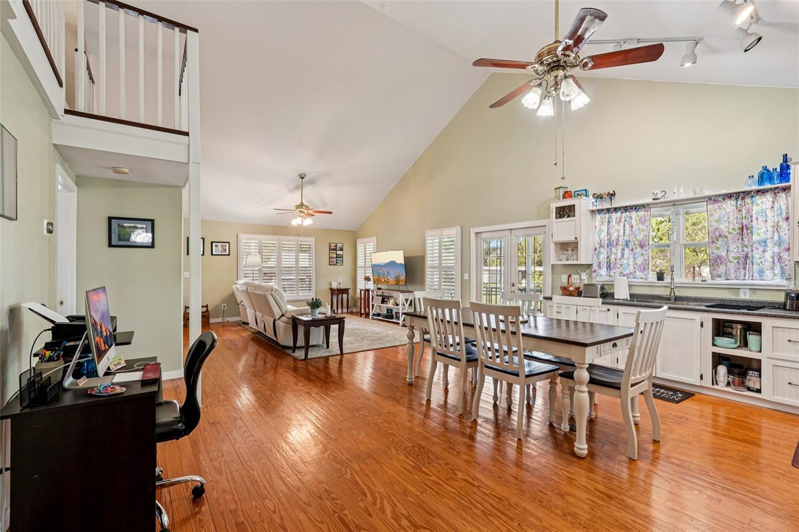 Welcome to this unique farmhouse-style home on nearly 1 acre in South Ruskin. This property offers a rare combination of space, functionality, and rural charm while remaining conveniently located just minutes from I-75. This beautiful Florida-style farmhouse features soaring 21-foot ceilings, wood flooring, and an open-concept layout with a spacious kitchen and great room designed for comfortable everyday living. A loft-style upper level provides flexible space that can be used as a second bedroom, office, or additional living area. Outdoor features set this property apart. A 36x40 barn with electric serves as a three-car garage and includes both 30-amp and 50-amp hookups, making it ideal for RV or boat storage, workshop use, or additional equipment. A separate 12x14 storage shed provides added utility or space for small livestock. The property is enhanced by mature landscaping and a variety of fruit trees. With no HOA or deed restrictions, this property offers flexibility for a variety of uses. A rare opportunity to enjoy privacy, space, and versatility in a growing South Shore location.