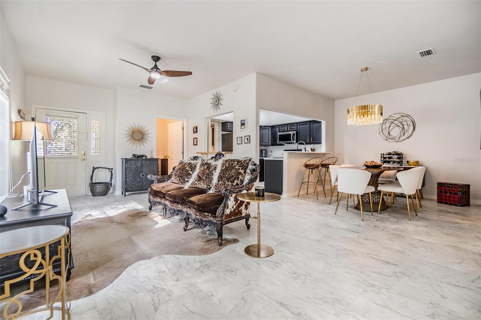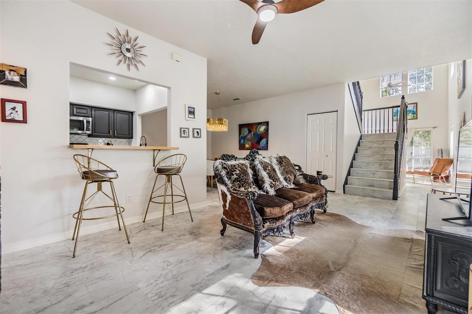Welcome to Safety Harbor! Are you looking for a spacious 4-bedroom, 2.5-bathroom 2 car garage end-unit townhome? You have found it here in the Village of Safety Harbor! This home offers a perfect blend of comfort and style! Walking through the front door you are greeted with your first of two living spaces. To the left there is a half bathroom. For the chef in the home, you will have an updated kitchen featuring stainless steel appliances, quartz countertops, and plenty of cabinetry. The kitchen overlooks the dining area, making hosting a breeze! Down the hall you are led into the second living area, a perfect place to relax and read your favorite book. Sliding doors from the living area lead out to a screened patio, offering access to a GENEROUS SIZED, FULLY FENCED backyard! Ideal for relaxation, entertaining and a great place for your fur pups to run. The primary bedroom is also located on the first floor, complete with a large walk-in closet and an updated ensuite bathroom with a modern shower. Upstairs, you'll find three well-sized bedrooms, two of which feature private screened balconies, perfect for enjoying fresh air and views. The upstairs bathroom has also been tastefully updated with a shower/tub combo. This townhome includes a downstairs laundry room and a two-car garage for added convenience. With tall ceilings there is no shortage of natural light. Other updates include recently installed luxury vinyl floors, new lighting fixtures and ceiling fans. Located in a golf cart-friendly neighborhood, this property is just moments from the charming shops and dining options of Safety Harbor, with easy access to both Tampa and Clearwater. Many furnishings in the home are also available to purchase. Schedule your showing today! It’s not just a home…but the Safety Harbor lifestyle!