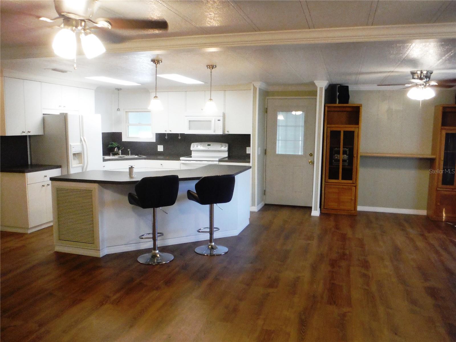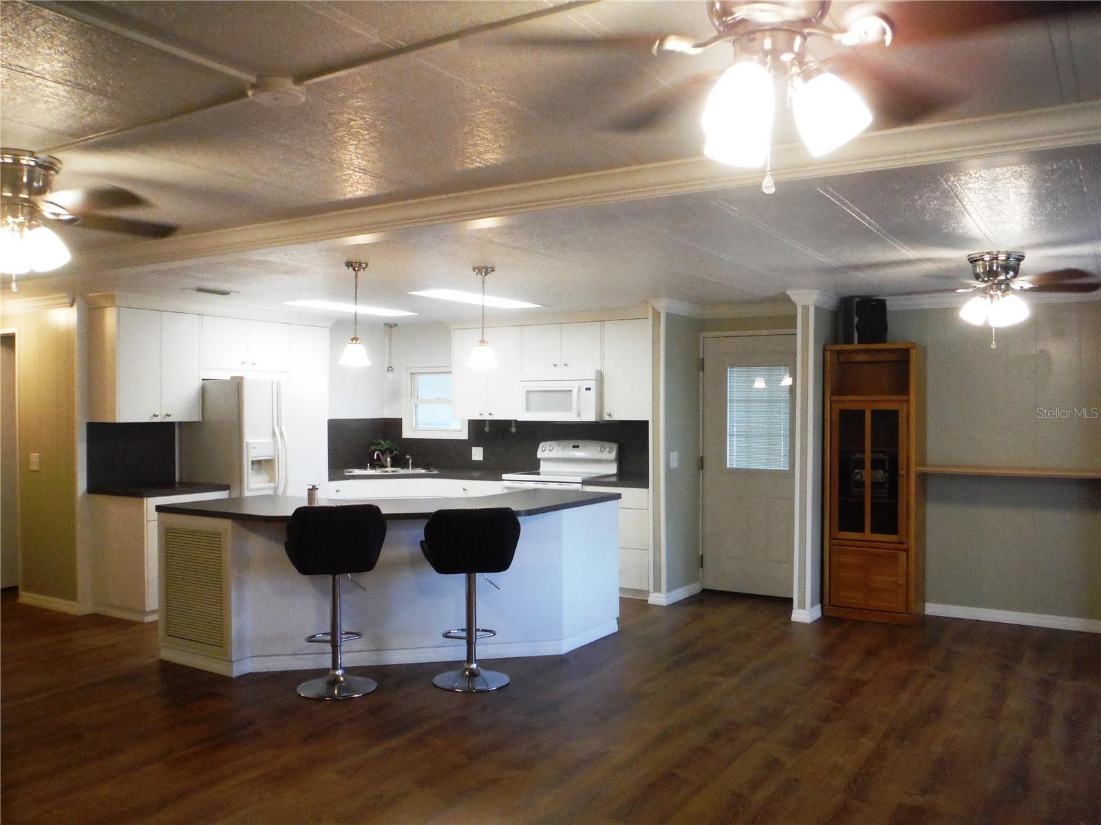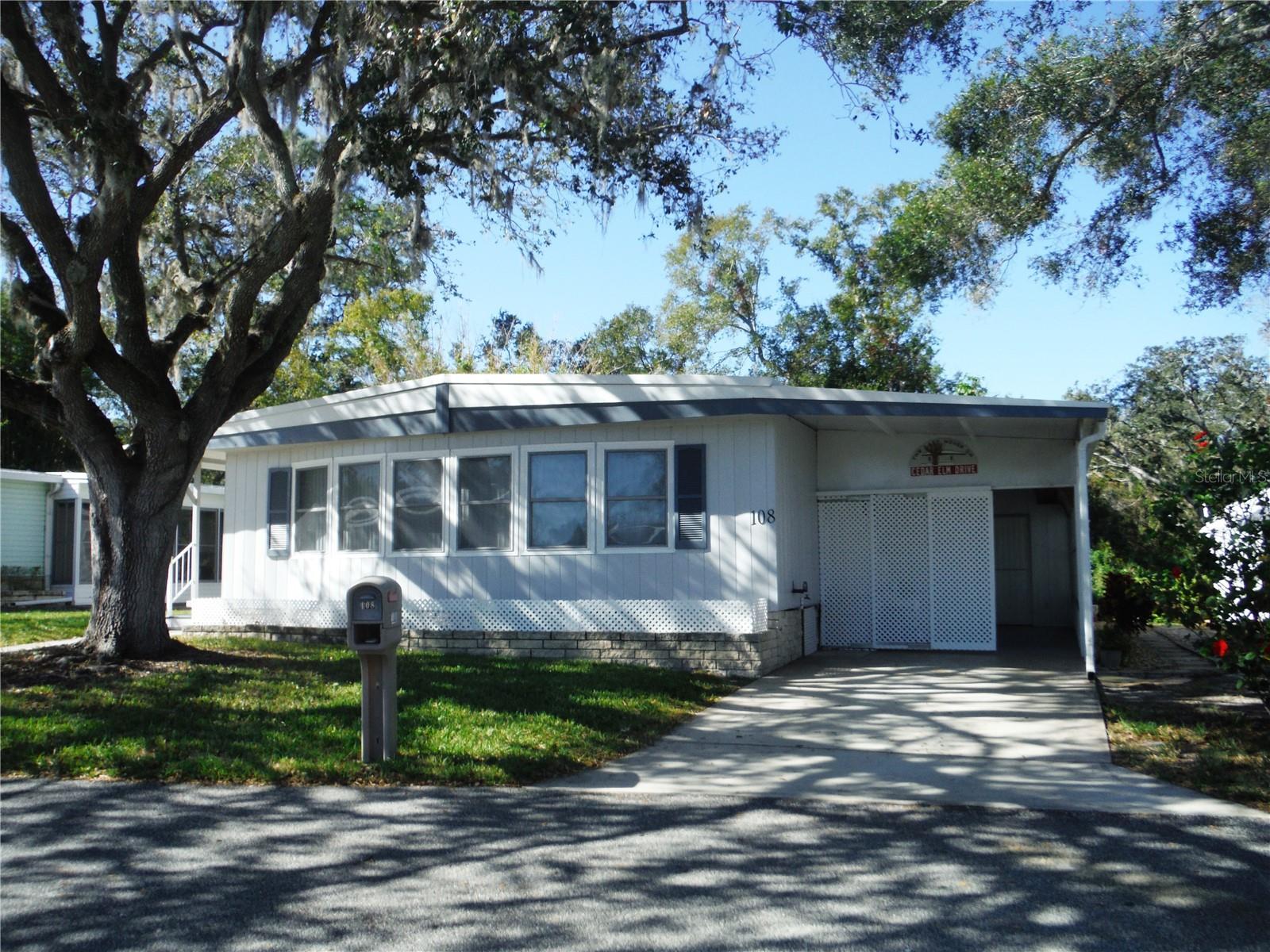 Beautifully renovated 2 bedroom 2 bath with a very open great room plan. Crown molding throughout - even in the closets. Luxury vinyl floors with 3/4" subfloor installed in 2021. 3 ceiling fans in the great room and a fan in each bedroom. Walk-in closet in master. The guest bedroom has both a walk-in closet and a built-in closet. The hall bath was remodeled in July 2024 and has a beautiful walk-in shower. The kitchen was remodeled approximately 4 1/2 years ago. Seller is a woodworker by trade and built new cupboards and soft close drawers lined with birch plywood. The vapor barrier was done in 2023, electrical panel new in 2022. There is a tankless water heater in the 11 1/2X11 1/2 shed installed in 2022. The carport roof has been reinforced and the carport has a lattice door that pulls across to give you extra parking and privacy. I think you will find these renovations to be done to perfection. You may have a cat in this property but it is not in the dog area. There are no rear neighbors because this home sits high above the creek with tropical vegetation. There was no damage to this home in the hurricanes. It is in an X flood zone (No Flood). The deeded lot 55X80 is included in the price. Come and see this amazing house in the very in demand Briar Creek community. Room measurements approximate.