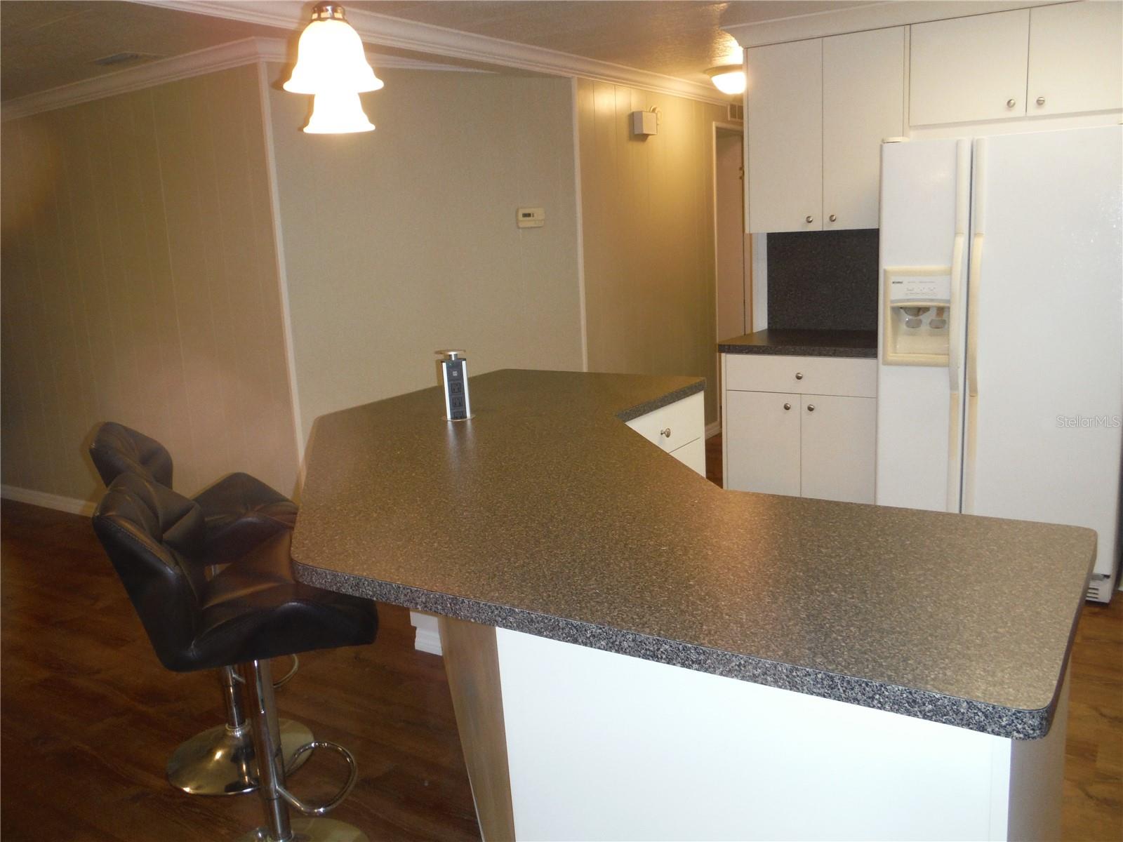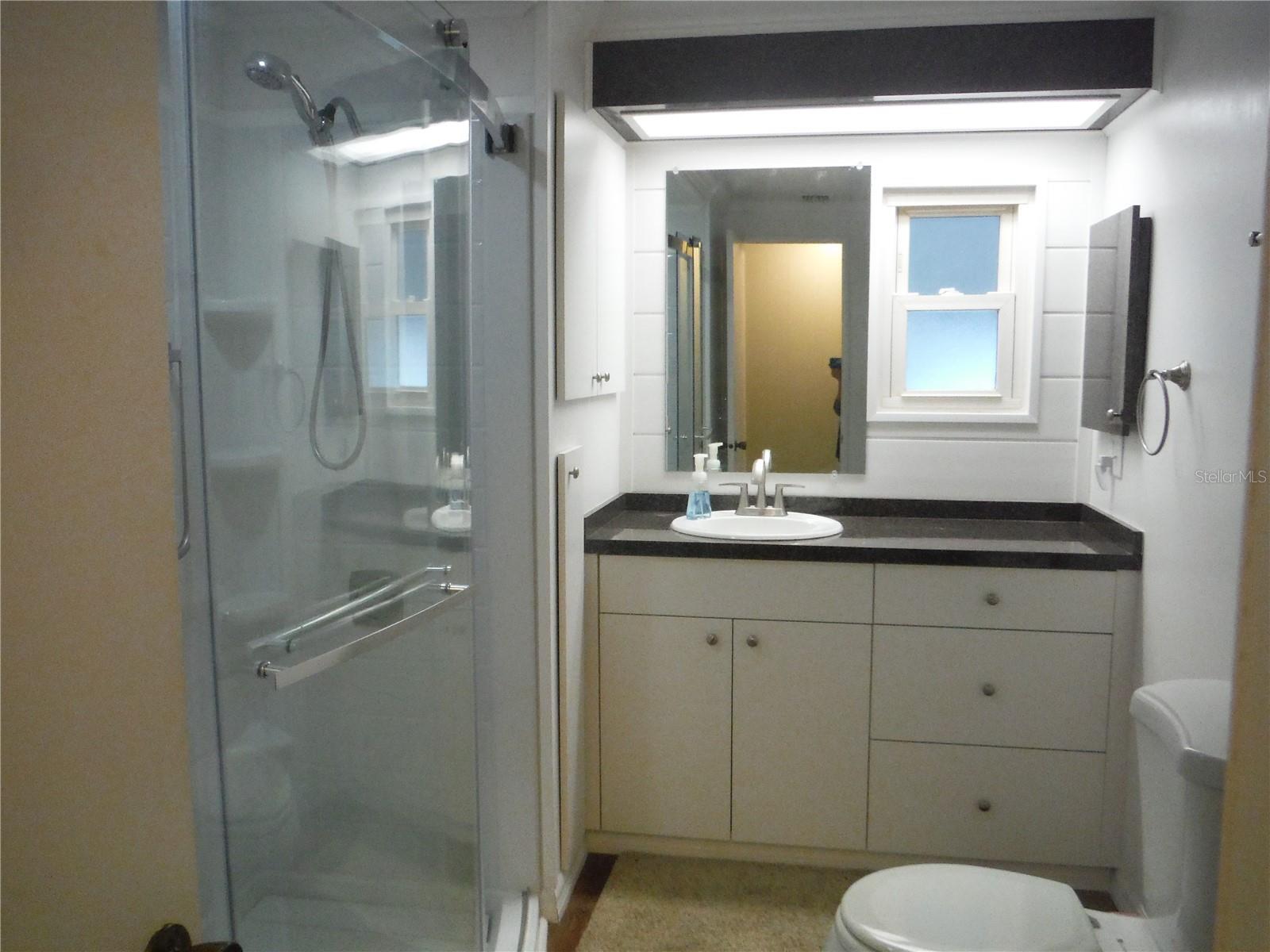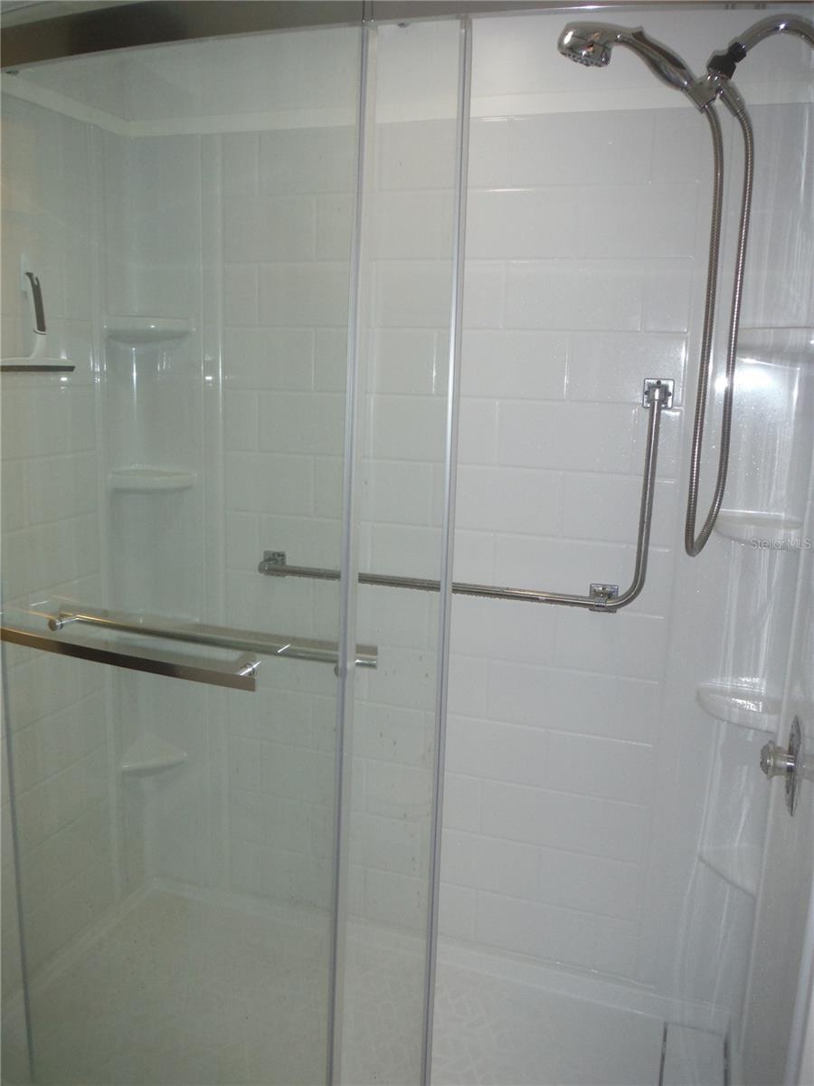 Beautifully renovated 2 bedroom 2 bath with a very open great room plan. Crown molding throughout - even in the closets. Luxury vinyl floors with 3/4" subfloor installed in 2021. 3 ceiling fans in the great room and a fan in each bedroom. Walk-in closet in master. The guest bedroom has both a walk-in closet and a built-in closet. The hall bath was remodeled in July 2024 and has a beautiful walk-in shower. The kitchen was remodeled approximately 4 1/2 years ago. Seller is a woodworker by trade and built new cupboards and soft close drawers lined with birch plywood. The vapor barrier was done in 2023, electrical panel new in 2022. There is a tankless water heater in the 11 1/2X11 1/2 shed installed in 2022. The carport roof has been reinforced and the carport has a lattice door that pulls across to give you extra parking and privacy. I think you will find these renovations to be done to perfection. You may have a cat in this property but it is not in the dog area. There are no rear neighbors because this home sits high above the creek with tropical vegetation. There was no damage to this home in the hurricanes. It is in an X flood zone (No Flood). The deeded lot 55X80 is included in the price. Come and see this amazing house in the very in demand Briar Creek community. Room measurements approximate.