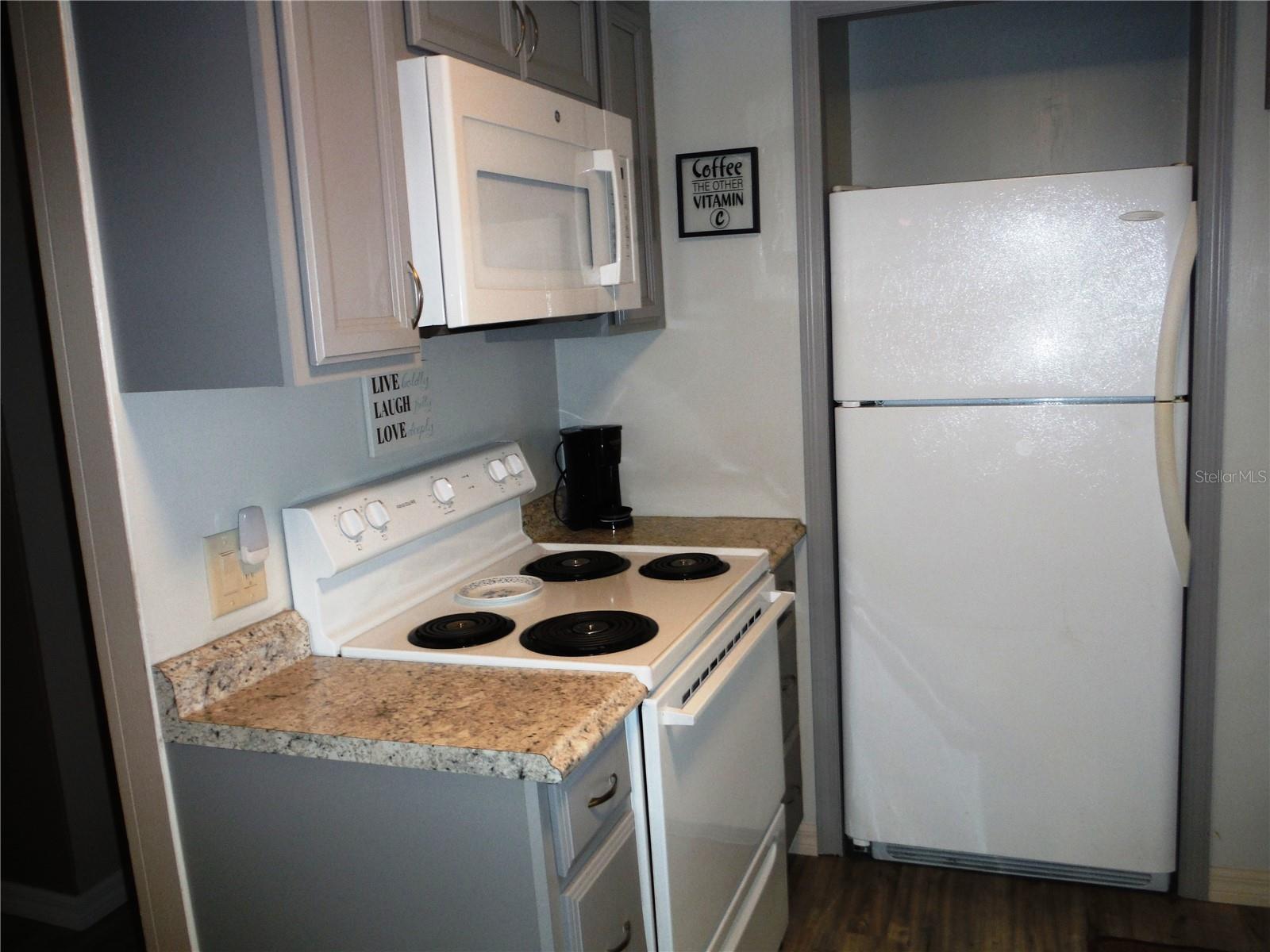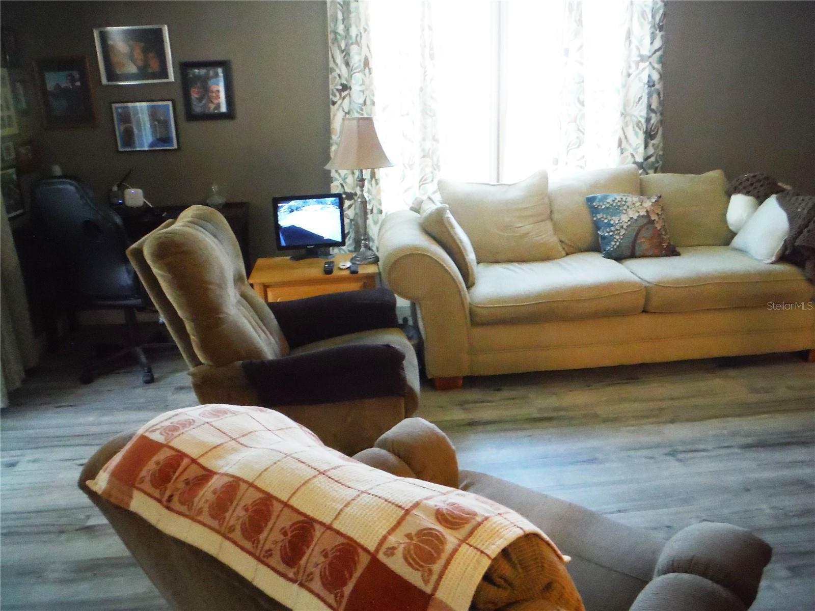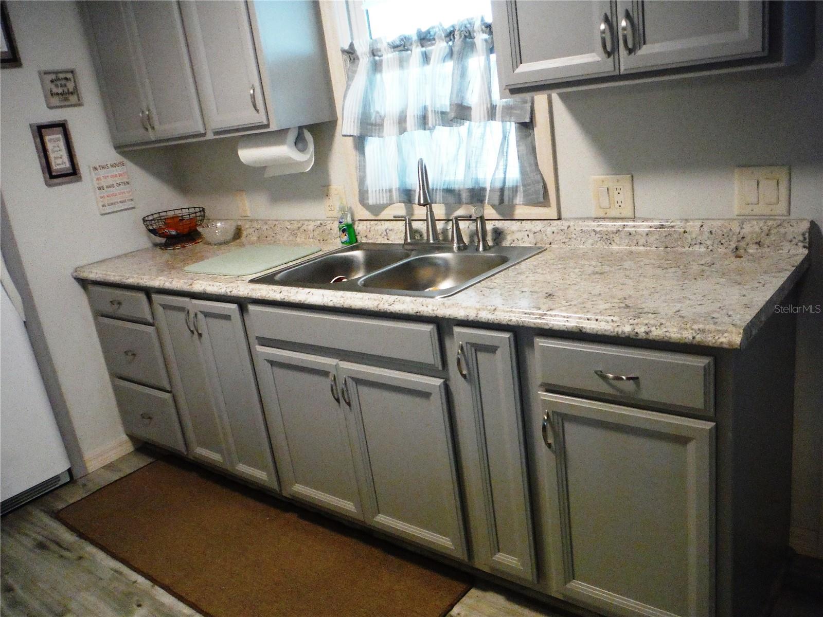 Reduced by $20,000 for a quick sale! 3 bedroom 2 bath home with all kinds of upgrades. Vinyl plank flooring throughout with 3/4" plywood subfloor. Soft close drawers in the kitchen which has been remodeled. The kitchen ceiling has been upgraded to an Armstrong Country Ceiling. Windows are approximately 6-7 years old. The 2 year old central heat & air has cold air returns in each room. There are 7 cameras hard wired for security reasons. The entry door is 36" wide and the other interior doors are 34" wide to accommodate a wheelchair. A water leak detection system is installed and can be alerted on your cell phone that tells you if there is a leak in the house and where it is. The water can be turned on and off to the house with your cell phone. Crown molding is throughout the house and the driveway is extra sized. There are many closets as well. Most everything stays with the house. Move right in. This home made it through the hurricanes with flying colors. The 56 X 80 ft deeded lot is included in the price. Enjoy the clubhouse, pool, spa, and shuffleboard across the street in this friendly 55+ community. You may have a cat in this property, but sorry, no dogs. Room measurements approximate.