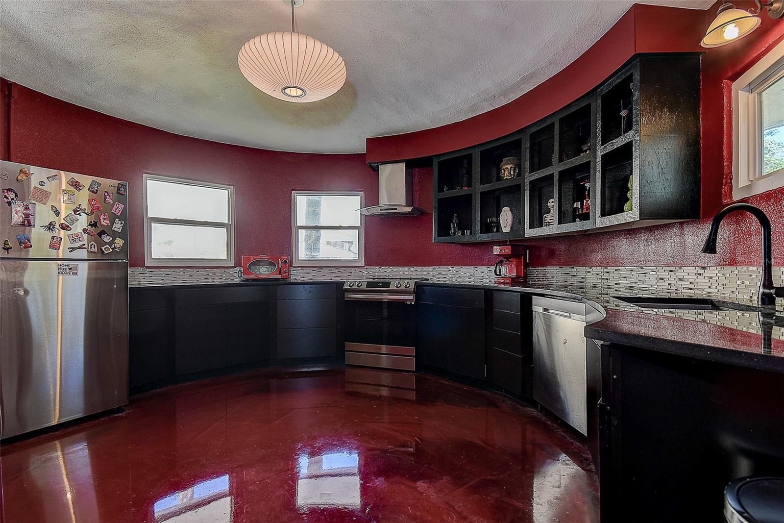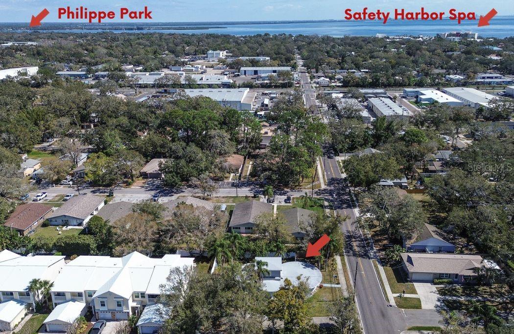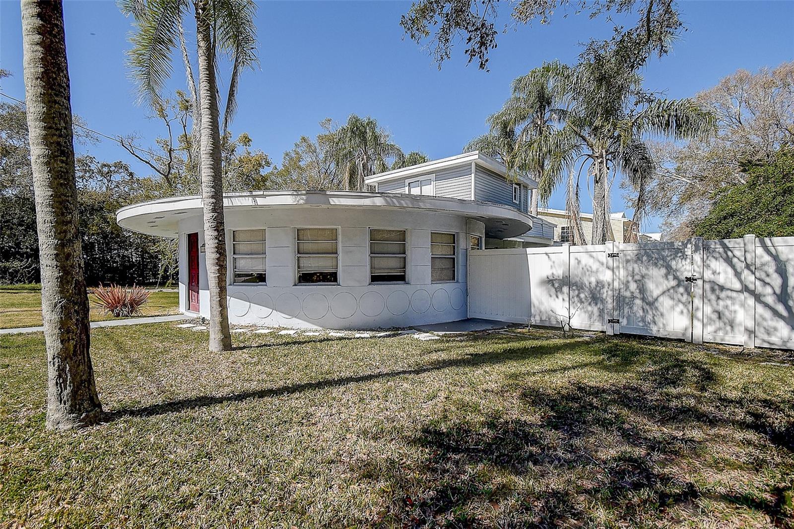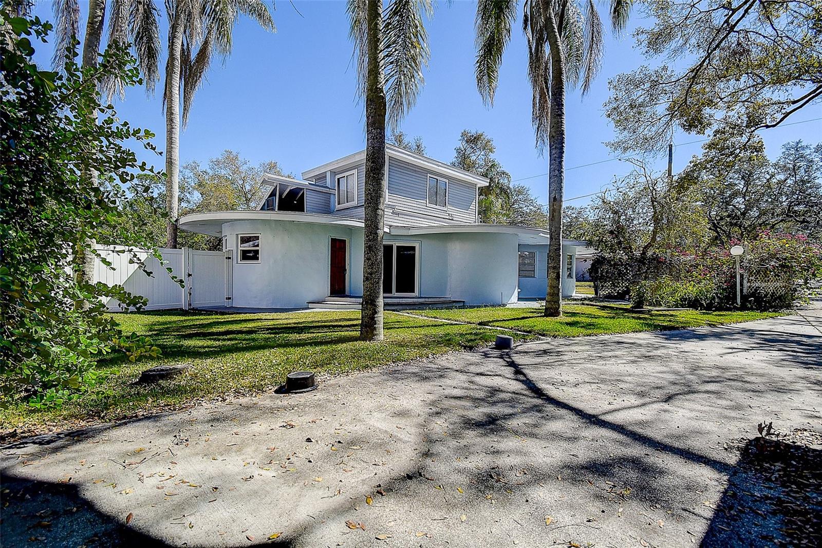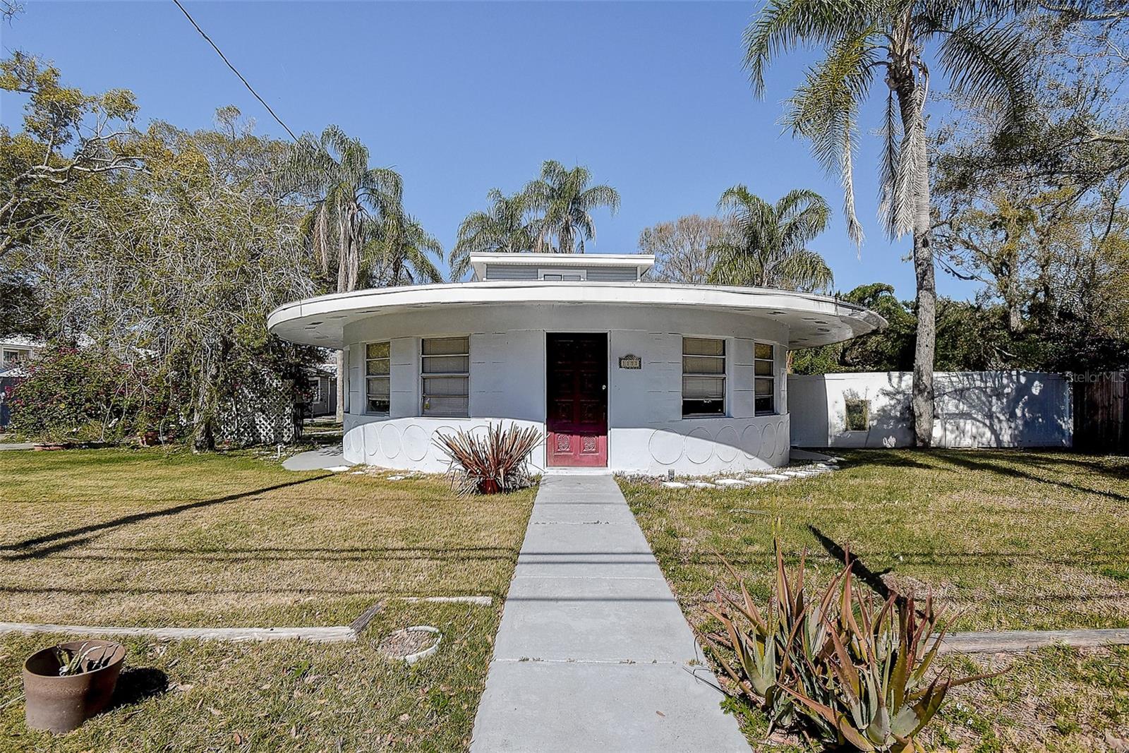 Looking for an amazing, one-of-a-kind home? One of Tampa Bay’s most REMARKABLE HOME DESIGNS, welcome to the iconic “ROUND HOUSE” IN SAFETY HARBOR! This home was the first Community Center in Safety Harbor, then a Church, and now can be your home! R2 SFR ZONING means possible daycare, church, library, duplex. This space is perfect for an art studio, yoga studio, or other home-based business. TWICE AS BIG AS MOST DOWNTOWN LOTS – Over ¼ Acre, 120ft wide by 100ft deep. CAN BE SPLIT INTO TWO LOTS. And it’s a CORNER LOT FOR EAST ACCESS. On Corner Lots like this the City of Safety Harbor allows in-law apartments and ACCESSORY DWELLING UNITS, either detached or attached! The home’s design is guided by a strong organizing geometry. Yes this house is round, and the circular shapes define this architectural gem and are formative to the experience of each interior space! The impressive-size CIRCULAR GREAT ROOM will open your interior design horizons, make your bold or calming statements with proper furniture and decorations. This room is large enough to have a spacious sitting area, entertainment area with built-in bar, pool table and dining, and is flooded with natural light through numerous windows! A CIRCULAR CENTRAL ROOM offers one bedroom and has access to a full-size, renovated guest bathroom with double sinks and glass-enclosed frameless shower. A SPIRAL STAIRCASE will bring you to the large upstairs primary bedroom, with its own en-suite bathroom. THE ROUND KITCHEN has plenty of cabinetry and countertop space and has its own entrance. The décor is reminiscent of a Cabaret such as Moulin Rouge on Champs Elysees in Paris, fashionable and chic. The eclectic vibe of this house is also reflected on the floors. From the bright color epoxied floors in the kitchen and foyer, to the completely restored beautiful original terrazzo floors in the living room. The 576SQFT DETACHED GARAGE has endless possibilities!!! Easily fits a large truck or 2 small cars, plus room for a WORKSHOP, GYM, office and/or CONVERT TO AN APPARTMENT or ADU. The parking pad will fit your recreational vehicle! And the EXTRA LONG DRIVEWAY accommodates 10 vehicles for guests! The back yard (go through the gate) is private with white vinyl fence, perfect for pets to roam or children to play! Roof new 2022. HVAC (5 ton) 2020. NO FLOOD INSURANCE NEEDED. NON EVACUATION ZONE. No Hoa fee. A short walk, golf cart drive, or bicycle ride will bring you to the best restaurants in town, breweries, shops, the Safety Harbor Marina, Pier, and the iconic Safety Harbor Resort & SPA. The vibrant scene of downtown Safety Harbor with festivals, art shows and music is just blocks away! Bike to picturesque Philippe Park, offering 122-acres, 1 mile of shoreline, a boat launching facility, fishing, and play areas. Great schools … Safety Harbor Elementary, Safety Harbor Middle, & Countryside High. Top Rated in the US Clearwater Beach is close by as well as Tampa Intl Airport and local attractions. Special homes like this one do not become available often!!