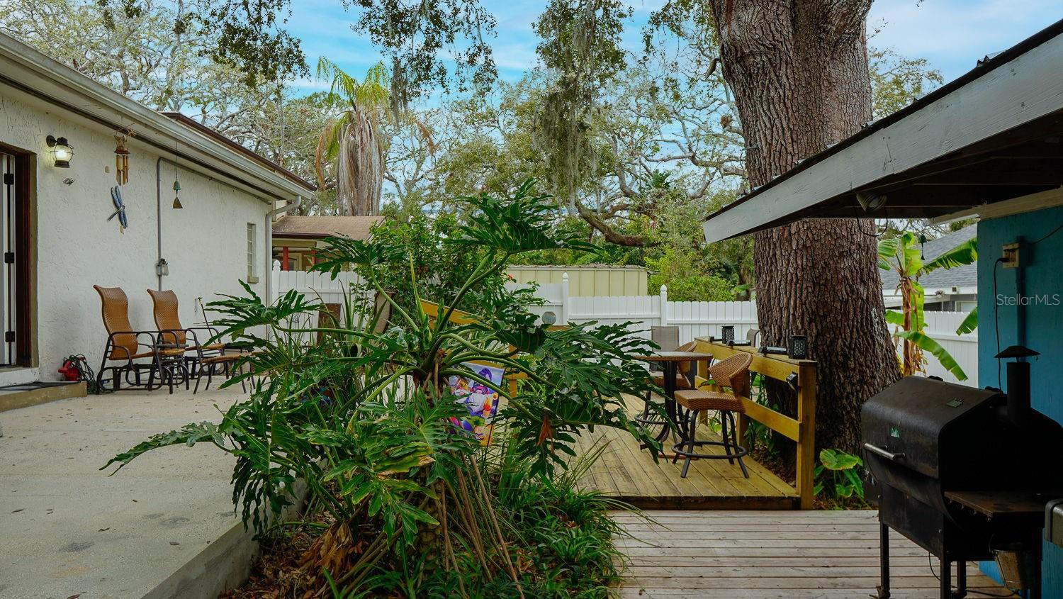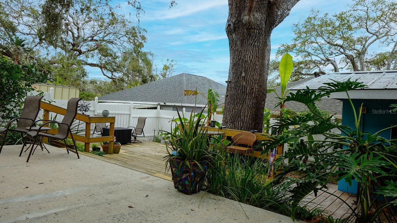 Location, Location, Location! Welcome to this beautiful corner lot in a vibrant yet peaceful neighborhood of Safety Harbor. Conveniently located 2 blocks from Main St making all the boutique shops and great food spots easily walkable. Featuring a very functional, low maintenance outdoor area with an expansive deck that is fully lighted and wired with electrical outlets. Your new backyard will be perfect for a quiet glass of wine, a family gathering or anything in-between. You will find fruit producing banana trees and pineapple bushes, fully fenced in backyard with multiple gates and porches to fit your lifestyle. You will have the perfect balance of shade and sunshine with great views of the Florida sky. Energy efficient tankless gas water heater, whole house water filtration system with filtered water spigot in the kitchen. Seller is willing to sell the house fully furnished, partially furnished or completely empty. Property was not affected by the hurricanes or floods. Book your private showing today!
