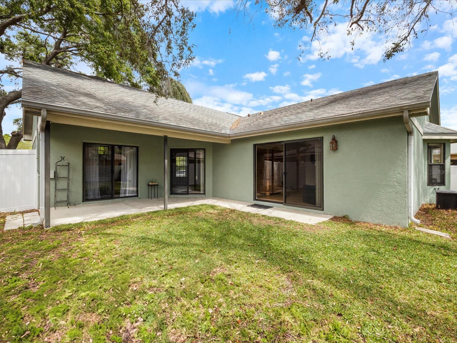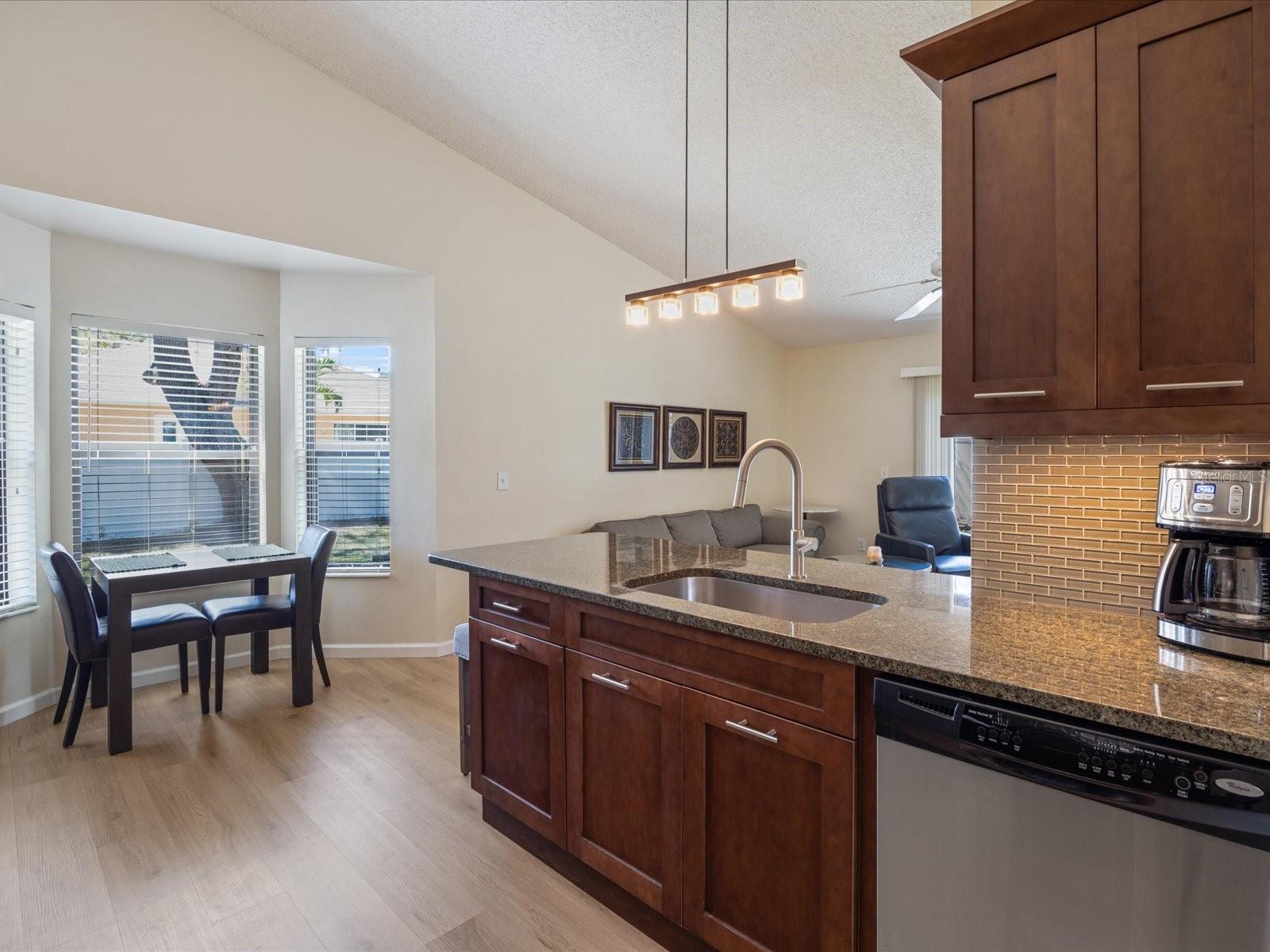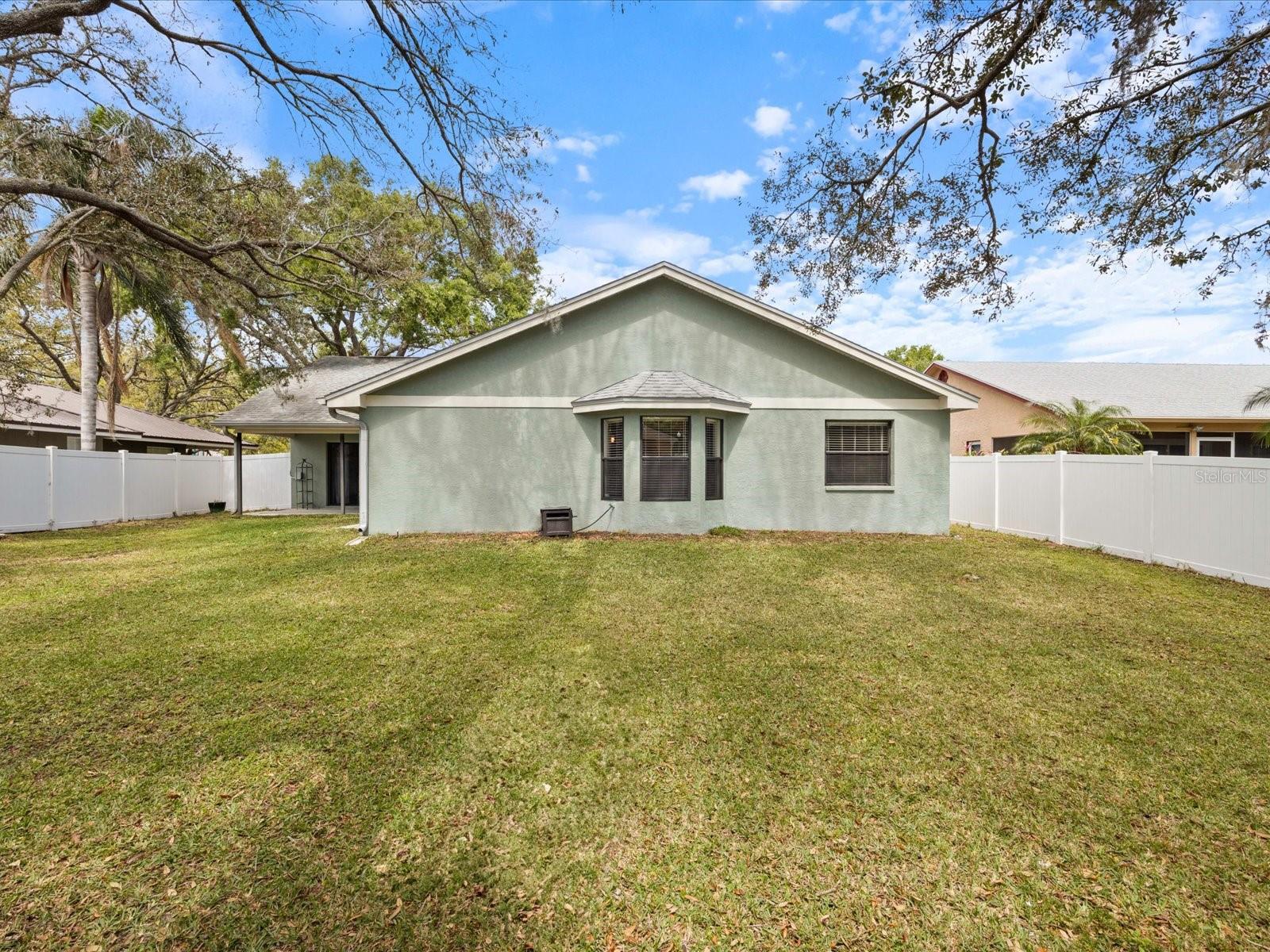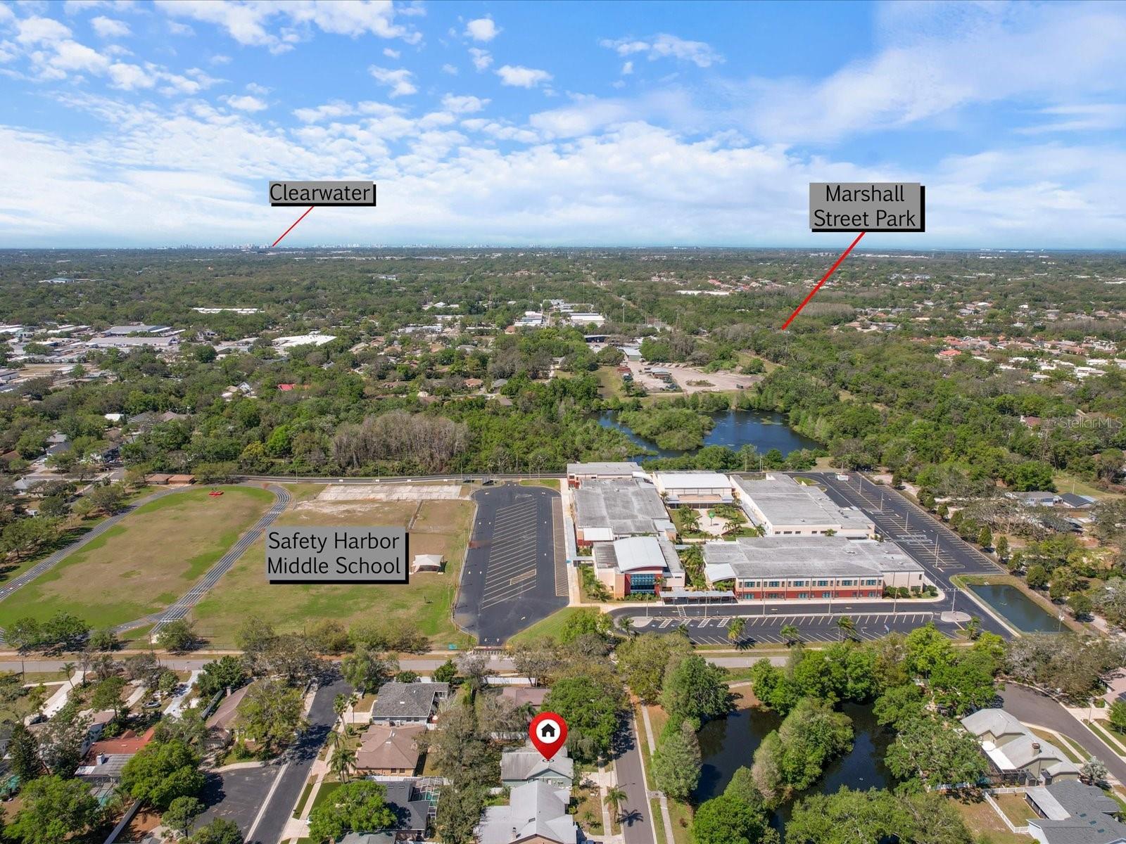 Within a few minutes of downtown Safety Harbor with its wide array of restaurants, unique shops, art gallery, Bayshore trail, and more, this home fits the bill of convenience along with architectural beauty. Positioned across the street from a lush, serene pond, this lovely home greets you with a look of fresh paint. As you walk through the front door you enter into a combined living room/dining room open plan complete with vaulted ceilings, sliding doors and windows all creating a large open feel. You will quickly notice the warm flow of new luxury vinyl flooring, carpet, and baseboards throughout the house installed in 2024. A Master ensuite is located on the right and has immediate access to the oversized porch through sliding glass doors. The vaulted ceilings, along with the light from the sliders provide a feeling of spaciousness. An updated Master bath offers Marble flooring with a wood vanity topped with quartz. The glass door enclosure for the shower allows the beauty of the matching Marble tiles that extend up the shower walls. A sliding door opens into a spacious walk-in closet. Near the back of the home, a family room combines with the kitchen area to provide great interaction with Family and friends. The custom wet bar, complete with granite top, provides another convenient entertaining feature while the breakfast bar is a great seating overflow. A breakfast nook at one end of the kitchen offers just the right space and a lovely view of the open backyard. An update of the kitchen included granite over custom stained wood cabinets complete with soft closing features. A new oven, refrigerator, and microwave were added in late 2022! Additional bedrooms share the 2nd updated bath with Marble floors, wood vanity with a solid surface countertop. The beauty of the lush backyard can be enjoyed from the covered porch at the back of the home or the lovely view of the pond at the start or end of your day. The backyard is large enough for a pool if one wants. Only a short walk will get you to both the local elementary and/or middle school. Newer items include a sprinkler system upgraded with a new timer and water-efficient heads in the front yard, garage door springs, water heater, and AC compressor