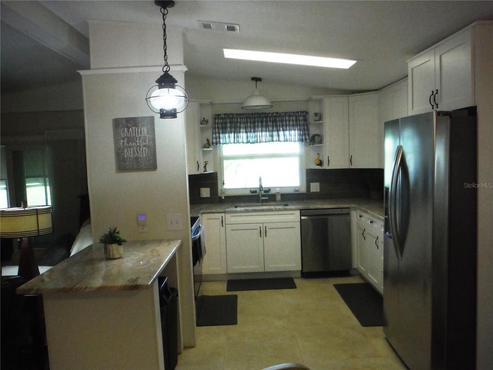 Priced to sell!!! This property is phenomenal! Seller purchased this property in May 2020 and has done tons of renovations. Modernized the kitchen with granite countertops, cabinets, stainless steel appliances, porcelain floor, etc. If you are standing at the sink, you will see that there is a window over the sink with a gorgeous view of Dove Lake. There is also a view of the lake from the lanai off the living room and the patio outside. Both baths have been modernized, and the 2 bedrooms have as well. The bedrooms have very attractive wainscotting and laminate floors. All the rooms were painted. Vinyl windows were put into the side lanai to the tune of $4500. This home is being sold fully furnished including the golf cart. What a deal! You can't beat this. You are allowed to have a cat in this property, but it is not in the dog area. The deeded lot 50X90 is included in the price. The monthly maintenance fee is $241. It includes water, sewer, trash, clubhouse, heated pool & spa, private roads, gym, shuffleboard, and a lot where you can park your RV or boat. Room measurements approximate.
