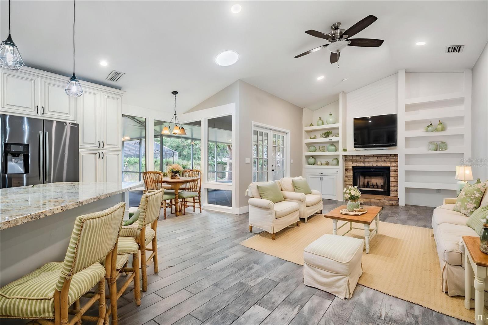 One or more photo(s) has been virtually staged. MASSIVE PRICE REDUCTION! MOTIVATED SELLER WHO'S ALREADY MOVED! Live the ultimate Florida lifestyle in this VERY RARE opportunity to own a home in the highly sought-after Beacon Place East community in beautiful Safety Harbor! This spacious and thoughtfully designed home is truly a hidden gem. The home is surrounded by durable hardy board and brick siding. Step inside and feel the welcoming flow of the open layout. The expansive living room greets you with a cozy nook perfect for a home office or creative corner, while the formal dining area to the right makes entertaining a breeze. At the rear, triple pocket sliders lead to an oversized L-shaped screened lanai, instantly expanding your living space and inviting you to soak in Florida’s sunshine, sip morning coffee, or unwind with friends in the fresh air. The private primary suite, tucked behind a stylish barn door, is your personal retreat—featuring a beautifully updated en-suite with dual sinks, garden tub, separate shower, and generous closet space. Also, with a sliding door to access the huge enclosed screened in patio. The kitchen is equally impressive, with antiqued solid wood cabinets, crown molding, soft-close drawers, granite countertops, Samsung appliances, a snack bar, and a sunny breakfast nook overlooking the cozy family room with a wood-burning fireplace. An indoor laundry room connects to a spacious two-car garage, while a third full bath off the lanai is perfect for cleaning up after gardening or outdoor fun. The fully fenced backyard is lushly landscaped and includes a separate dog run—perfect for your four-legged family members. There is plenty of room for a pool and the 3rd Bathroom can be accessed from the back yard and perfect for a designated pool bath. Also, don't miss out on see the large back yard storage shed built onto the back of the home which is perfect for all of your lawn tools or pool toys. Updates? Covered! Roof, A/C, water heater, and appliances were all replaced in 2016, with a brand-new washer/dryer in 2023. And the location? You’re just minutes from Philippe Park’s scenic trails and bayfront views, the world-famous Safety Harbor Resort & Spa, vibrant Main Street dining and festivals, and the powdery white sands of Clearwater Beach. Plus, you’re less than 30 minutes from both Tampa International and St. Pete–Clearwater airports—making travel a breeze. Whether you're working from home, enjoying backyard BBQs, or heading out for sunset strolls along the bay, this home delivers the perfect blend of comfort, style, and the laid-back, sunny vibe Florida is famous for. Come claim this home your new paradise!