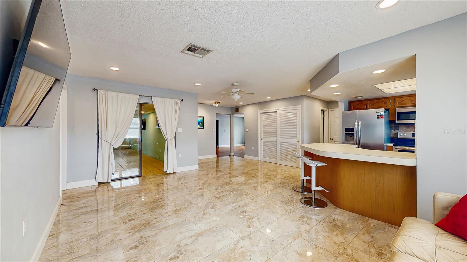 Step into comfort and style with this beautifully updated home in the desirable community of Safety Harbor. Offering just under 1,900 square feet, this 3-bedroom, 2.5-bathroom residence is tailored for relaxed living and memorable gatherings with family and friends. Situated outside of the flood zone, the home features a thoughtfully laid-out split-bedroom floor plan that ensures privacy and functionality. A spacious, air-conditioned bonus room provides the perfect space for a home office, media room, or hobby area. The private courtyard and covered patio provide a serene outdoor setting for relaxation and quiet enjoyment. Inside, you'll find tasteful finishes, stylish flooring, recessed lighting and ceiling fans, and plenty of storage throughout. This home is equipped with modern conveniences including a tankless water heater for on-demand hot water, a reverse osmosis system for purified drinking water, and a whole-house water softener for added comfort. Additional peace of mind comes with a built-in alarm system for enhanced security. The attached two-car garage adds convenience and flexibility, with ample space and storage for both vehicles and belongings, features an epoxy floor coating, an additional garage refrigerator, service door, and recessed lighting. Roof 2019. HVAC 2020. Located with easy access to Tampa, Dunedin, St. Petersburg, and nearby beaches, this home is also close to local parks, golf courses, and scenic trails—offering a balanced lifestyle of leisure and accessibility. Schedule your private tour today and discover everything this exceptional Safety Harbor property has to offer.