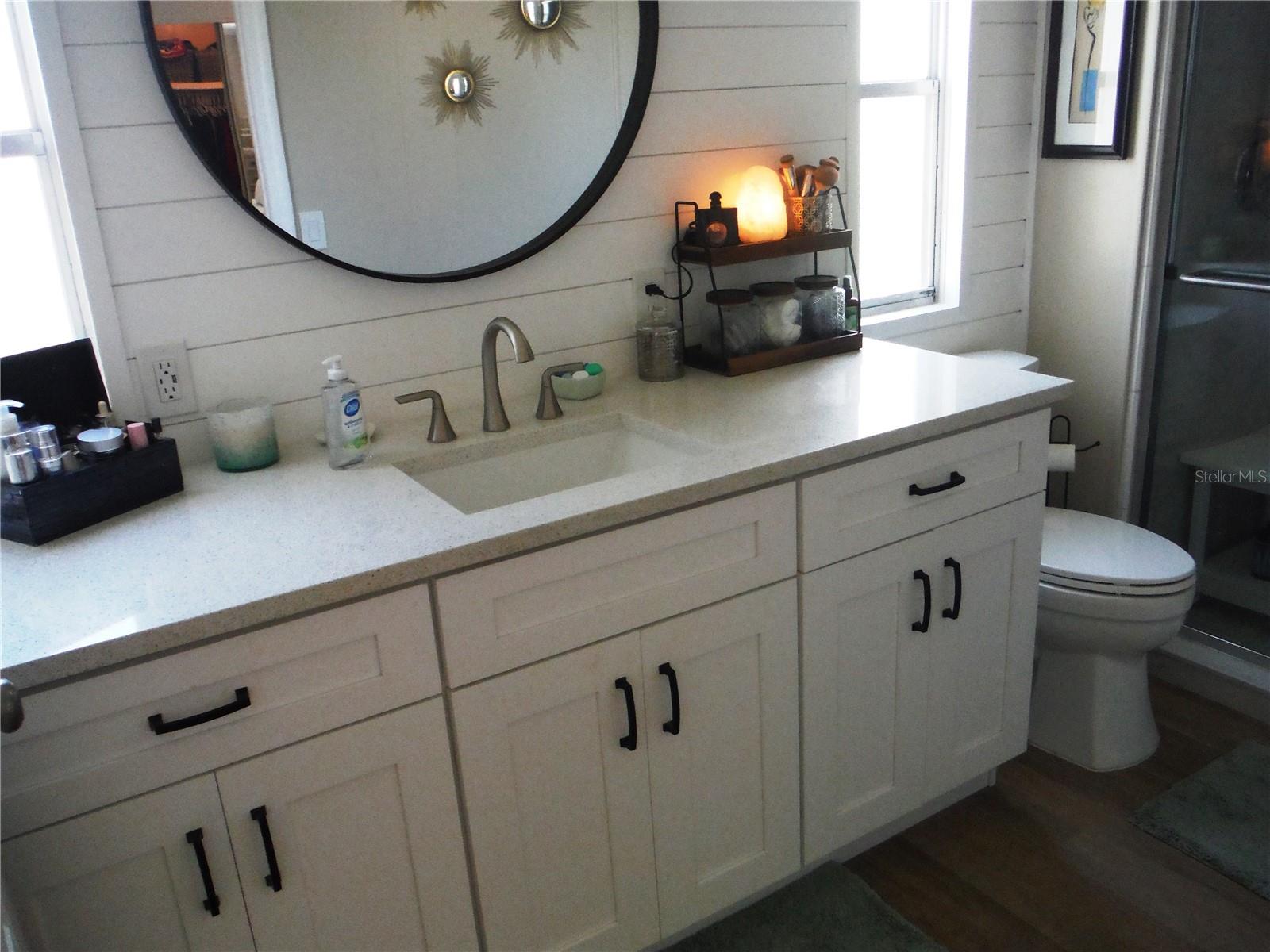 2-bedroom, 2 bath "1152 sq ft"- Open Floor Plan - Beautifully Renovated in May 2024 to include All New Soft Close White Shaker cabinets in Kitchen & Bathrooms, Beautiful Quartz Countertops, New Samsung Appliances "Refrigerator, range, built in microwave, dishwasher, washer & dryer" there is also a built-in wine fridge. Additional Renovations include... All New ¾" subfloors, luxury vinyl flooring and new base boards throughout. Beautifully renovated bathrooms, All electrical outlets replaced, Cordless Blinds, Freshly Painted Interior. Vapor barrier installed Sept 2024 with a transferable warranty. New Hot Water Heater Dec 2025. Fully furnished - Move in Ready - Comes with 2 Queen Beds, linens. Furnishings also include your kitchen essentials, a 65" LG TV and more. This is a 55+ community, and this home allows you to bring your sweet little furry cat. The deeded lot 50x80 is included in the price and is in a No Flood Zone. Maintenance fee is $235/Month and includes water, sewer, trash, lawn, private roads, laundry room (in case your appliances break), clubhouse, heated pool & spa, and shuffleboard. You will be very impressed with this friendly community with little lakes, winding roads, & huge trees. Room measurements approximate.