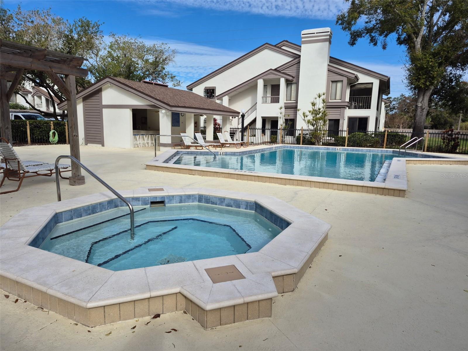 Cypress Trace North is a beautiful community in Safety Harbor, and this condominium is exceptional! From the moment you enter, it will impress. You walk into the living room with a cathedral ceiling, newer large no impact/hurricane windows and sliding doors that were installed in 2022, beautiful hardwood flooring, recently painted throughout, and a floor to ceiling stone covered wood burning fireplace. The large kitchen was renovated in 2023, new cabinets, new stone quartz counters, new luxury vinyl flooring, a new range with hood, plumbing and lighting replaced. There are 2 large windows allowing plenty of light into the room. The 2nd bedroom is lovely, large closet and two large windows. There is a en-suite bath with tub, attached with hall access. The dining area has a mirrored dry bar and storage. The master bedroom is separate, off the living room. Both the living room and master have access to the screened with windows lanai. Beautiful green space, tree views, you’ll feel like there’s no one near you. It’s very peaceful. The bedroom has a cathedral ceiling and en-suite bath, lots of closet space with a walk in closet. Attic access with huge storage space. There is a walk in shower with seat. Both baths were renovated in 2018, ac replaced in 2018, new roof in 2019, painted exterior in 2021. There is a large pool/hot tub/patio area and tennis courts. Water, sewer, garbage, internet, live TV and streaming included in the monthly maintenance fee. Wonderful neighbors, and one of the few condominium communities allowing large dogs with a limit of 2. Make an appointment today!
