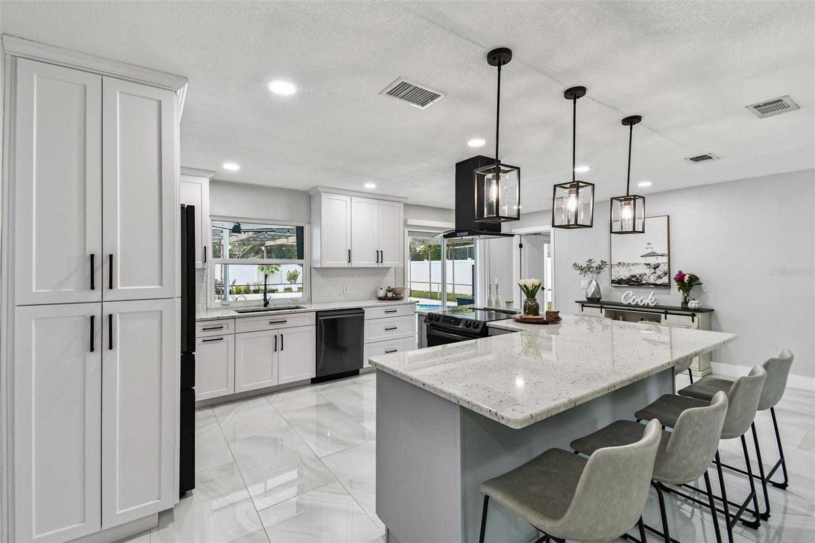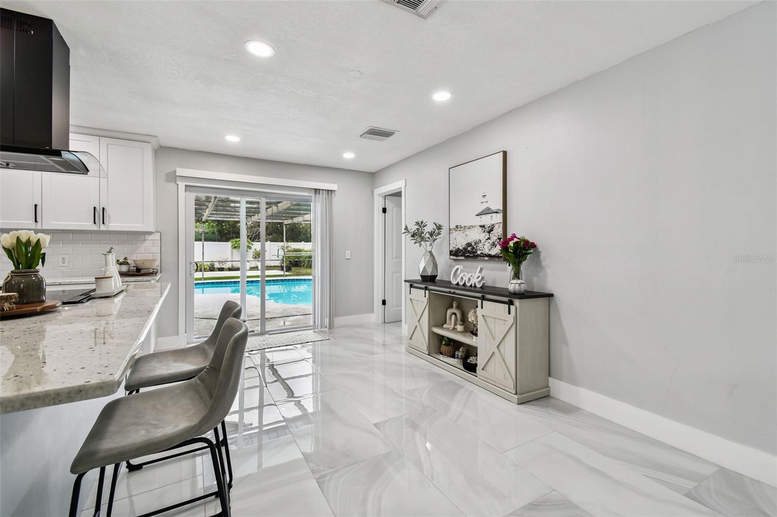 Pool Home – Remodeled for Style and Comfort in Safety Harbor Beautifully remodeled 3-bedroom, 2-bath pool home in highly desirable Safety Harbor. Porcelain tile flows seamlessly throughout, offering both durability and elegance. Thoughtful updates include new baseboards, doors and frames, sliding doors and windows, upgraded outlets, and modern lighting. The fully renovated kitchen showcases granite countertops, a subway tile backsplash, a breakfast bar, and contemporary finishes. The master bath features custom tile work and dual vanities. A versatile office/flex space adds extra functionality—perfect for working from home, a home gym, or a playroom. The laundry room is equipped with built-in cabinets, providing additional storage and convenience. Exterior enhancements include a new front porch, driveway, fencing, and a spacious patio. The pool area has been upgraded with a new ceiling, sound system, and fan perfect for entertaining or relaxing. The garage offers a new water heater, water softener, side door, tiled floor, and finished ceiling. Roof replaced in 2017, HVAC updated in 2020. Located just minutes from Downtown Safety Harbor’s dining, shopping, markets, and festivals, with easy access to beaches and Tampa International Airport. Schedule your private showing today and discover the upgraded lifestyle this Safety Harbor pool home. A preferred lender is also offering up to a 1 percent credit toward closing costs or a rate buy-down for added savings.