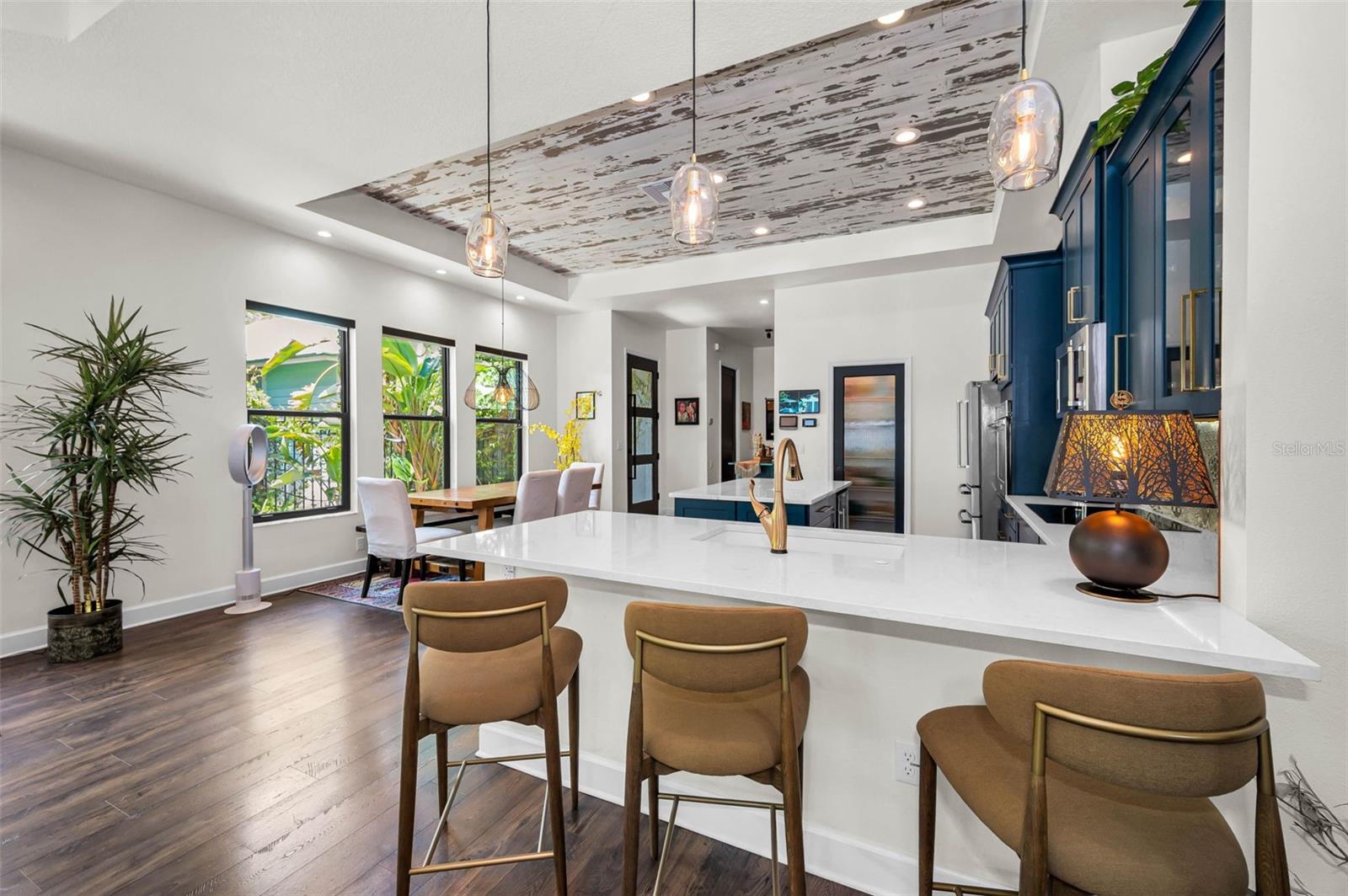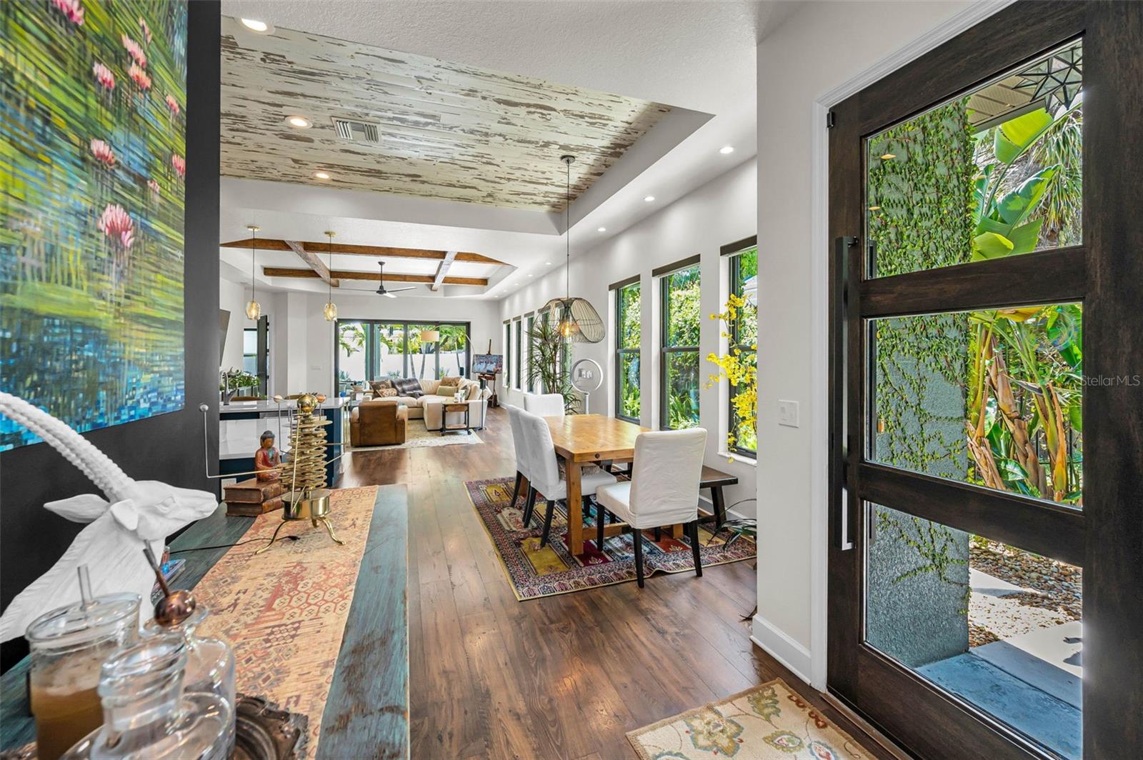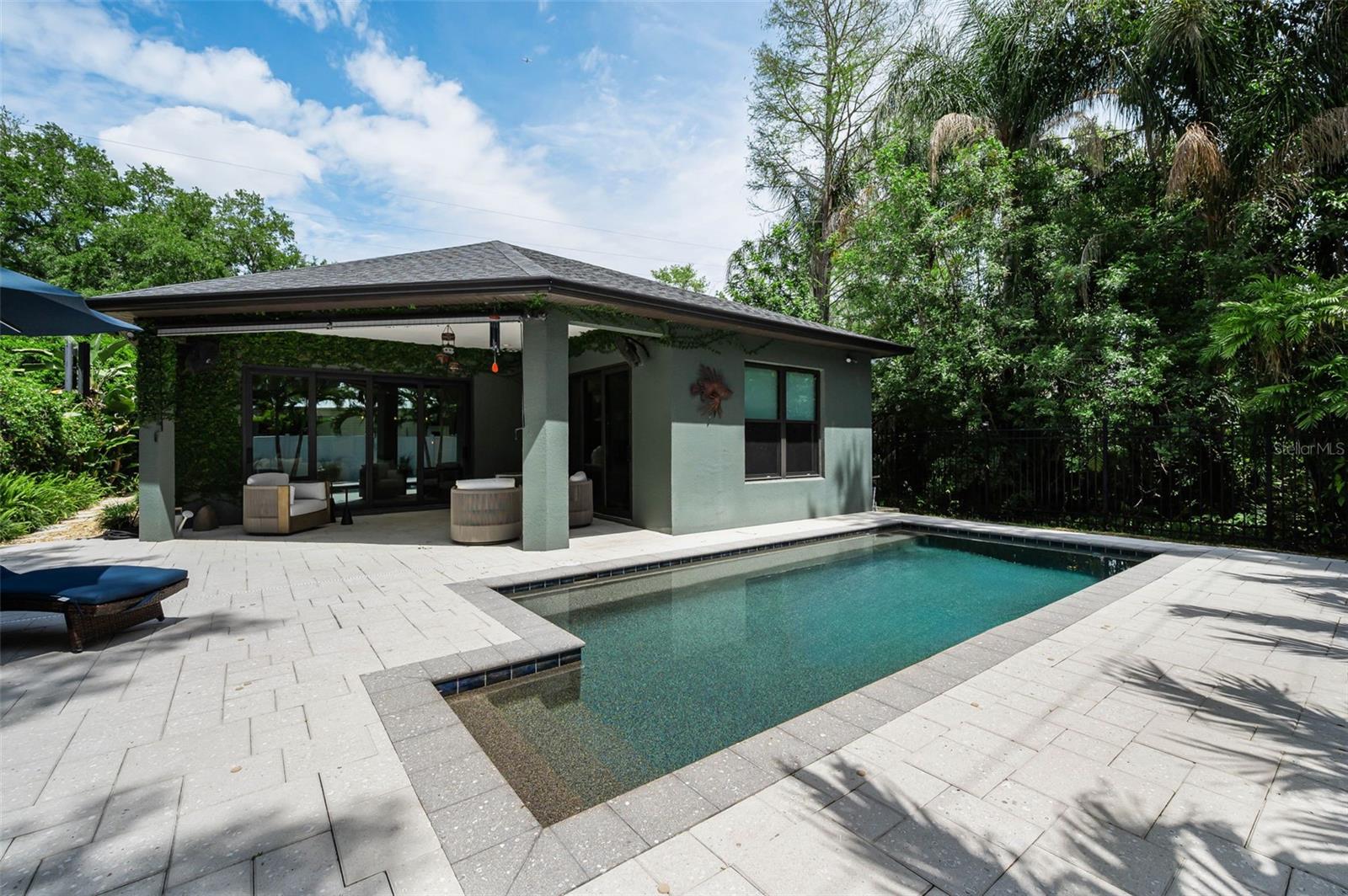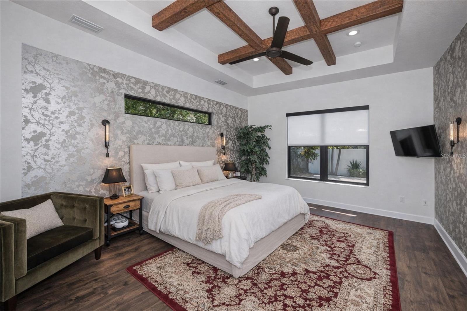 Welcome to this extraordinary modern, coastal-inspired home. Perfectly positioned on one of Safety Harbor’s most coveted streets. Custom built in 2018 as a true forever home, this one-of-a-kind property blends thoughtful design, superior construction, and refined luxury—offering a lifestyle that is both elevated and effortless. Ideally located just moments from the charm of downtown Safety Harbor, yet tucked away to provide peace, privacy, and freedom from event traffic, this home delivers the rare balance of walkability and tranquility. From the moment you enter, the level of craftsmanship is undeniable. Soaring 11- 13-foot ceilings, rare 9-foot solid core doors throughout, beautiful custom wood cabinetry, and designer-curated finishes create a cohesive, high-end aesthetic. Natural light floods the interior of the home through custom bronze hurricane-rated windows, including a dramatic wall of glass that seamlessly connects indoor and outdoor living. The kitchen is both beautifully designed and highly functional featuring an induction cook top with gas line already in place for those that prefer a gas range along with a convenient pot filler for effortless cooking and a wine refrigerator for entertaining. The thoughtfully designed floor plan features two private suites on the main level, including an expansive primary retreat and a secondary ensuite bedroom—ideal for guests or multigenerational living. Upstairs, additional living space includes a stunning office or bedroom with panoramic “world view” windows, along with a private guest suite and bath. Built for both comfort and efficiency, the home is equipped with a state-of-the-art high-efficiency HVAC system (2025), spray foam attic insulation, a whole-house generator on city gas, tankless gas water heater, Emporia energy management system, and full home water filtration including carbon system and softener. The oversized three-car garage is a standout feature, designed to accommodate not only vehicles but also an active coastal lifestyle, with space for bikes, paddleboards, golf cart and more. Step outside to your private resort-style retreat. The custom saltwater pool with sun shelf and electric heater is complemented by an artistic paver deck designed to stay cool underfoot. The covered patio is thoughtfully equipped with retractable shades and misting-ready fans, creating a comfortable outdoor living space ideal for year-round enjoyment. The professionally designed landscape, enhanced by ambient lighting, delivers both beauty and low-maintenance living. Additional features include hurricane-rated windows (no shutters required), a comprehensive camera security system, insulated garage doors, sound insulation between bedrooms, custom blinds, solid interior doors, and countless thoughtful upgrades throughout—even down to strategically placed outlets for modern convenience. Located outside of a flood zone and just a short stroll across a pedestrian bridge to Philippe Park, this home offers a lifestyle that is truly unmatched. This is not a spec build—it is a meticulously designed, deeply intentional custom home where every detail has been considered.