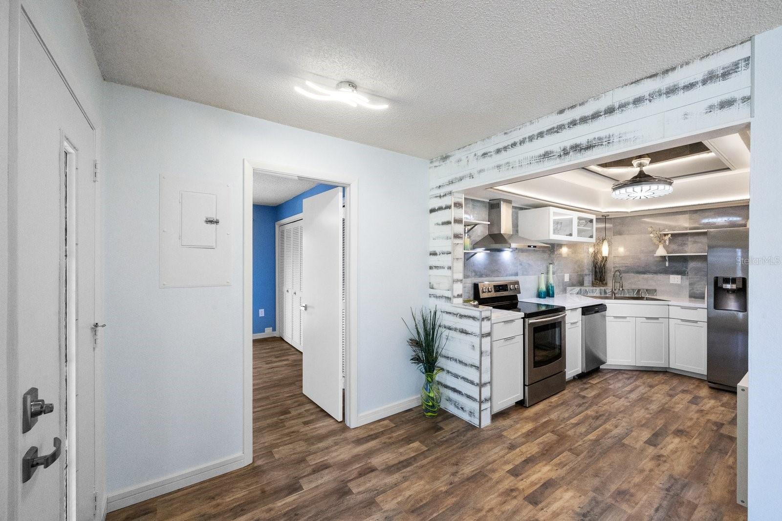 Welcome to this meticulously remodeled 2-bedroom, 1-bathroom condo nestled in the serene community of Yorktown at Beacon Place! Yorktown is a special complex which is undergoing a million dollar renovation of the pool area, all the buildings are being painted, the landscaping is being overhauled and the streets have just been repaved...all of this without a special assessment! In fact the condo fee has been reduced from $630 to $541 per month! Strong reserves & Budget! Step into a haven of modern comfort and style, where every detail has been carefully crafted to offer an unparalleled living experience. As you enter, you're greeted by an open floor plan and newly installed laminate floors that seamlessly flow throughout the living space, creating an inviting ambiance. The heart of the home boasts an entirely new kitchen adorned with sleek stainless-steel appliances, complemented by contemporary fixtures, gorgeous cabinets, and beautiful endless countertops. A spacious and open pantry provides ample storage, ensuring culinary essentials are always within reach. Laundry convenience is at your fingertips with a discreet closet setup including a new full sized washer and dryer, within the kitchen area. Enjoy effortless entertaining in the bright and airy living and dining rooms, perfect for hosting gatherings or simply relaxing with loved ones. The open layout seamlessly connects these spaces, offering versatility and ample room for your lifestyle needs. The bathroom has undergone a stunning transformation, featuring modern finishes and fixtures that exude luxury and sophistication. Step through sliding doors onto the screened patio, extending your living space outdoors and providing the ideal setting for al fresco dining, morning coffee, or simply soaking in the sunshine. With this additional space, you'll have plenty of room to entertain guests or unwind in your own private oasis. The split bedroom plan ensures privacy, with the primary bedroom thoughtfully positioned separate from the secondary bedroom. After a long day, retreat to the primary bedroom, which boasts a generously sized walk-in closet, offering ample storage space for all your wardrobe essentials. Additionally, a welcoming open porch at the front of the unit offers a charming space to unwind and soak in the tranquil surroundings, and also offers more storage options. In addition, the carport will keep your car cool in summer and the additional storage closet will hold all your tools and toys. This condo also features a newer air conditioning system (2023), ensuring comfort year-round with efficient cooling. The community amenities include a clubhouse and a sparkling pool, offering residents a delightful retreat without the hassle of maintenance. Life here is easy, with a liberal pet and leasing policy. A reasonable monthly condo fee covers water, sewer, trash, exterior maintenance, pool, amenities, the roof, ground maintenance, and even cable and internet! Experience maintenance free, effortless living in this thoughtfully renovated condo! So close to all amenities including TIA, world class golf, fine dining, DT Safety Harbor, Philippe Park & DT Tampa. Don't miss the opportunity to make this your new home sweet home!