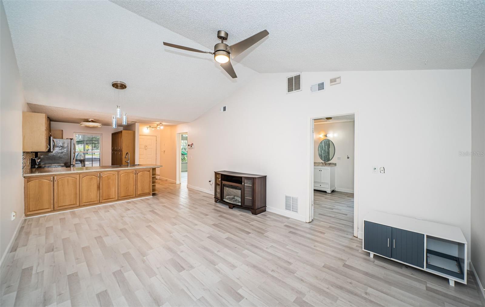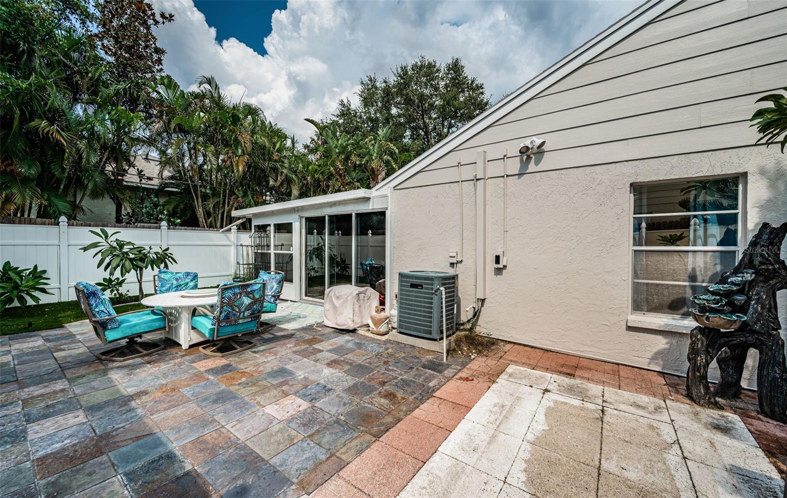BIG PRICE REDUCTION! End Unit with large bonus room/bedroom. Private, fenced side yard, maintenance free. New interior paint. This home features brand new luxury vinyl flooring throughout the villa and newly updated master bathroom. 1 year old, never used, home generator included. Roof has been replaced in the last 3 years. Updated kitchen appliances and plenty of kitchen storage. Large stainless steel kitchen sink and wood cabinets. Ceiling fans in bedrooms, living room and bonus room. The bonus room (approximately 15 x 20) has a closet and can be used as a bedroom. It features plenty of windows for natural light. Access to the side yard through the sliders. The front porch has been screened in and makes a nice sitting area. Being sold AS-IS for seller convenience. Not located in a flood zone. Centrally located by Phillipe Park, Safety Harbor Main Street and Marina.