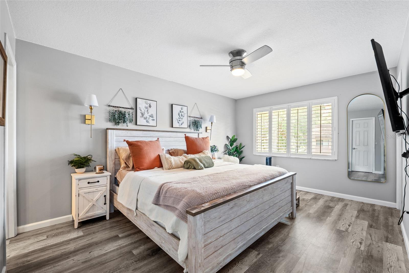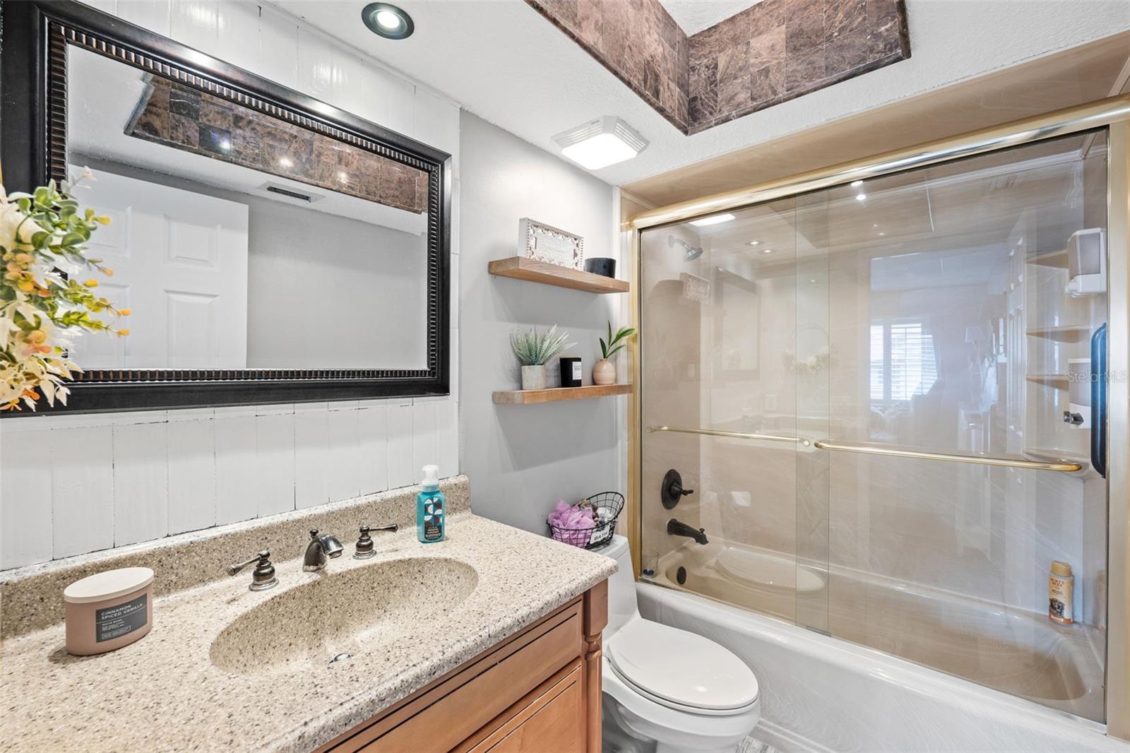 !!!Price Reduction!!! (Buildings are currently being painted a new color, examples have been added in listing photos) This gorgeous, renovated second floor condo is tucked away in the heart of Safety Harbor. A wonderful end unit with big windows to provide an abundance of natural light. Every room has been remodeled starting with new luxury vinyl flooring throughout in 2021, plantation shutters on every window and sliding door, removal of popcorn ceiling in 2021, new interior paint in 2021, new light fixtures in entryway and hallway in 2022, new range with built in air fryer in 2023, new hot water heater in 2023, and a custom master bedroom walk in closet in 2023. The kitchen has stainless appliances, breakfast bar, granite counter tops, and tons of cabinet space! The living room has sliding doors that lead right out to the freshly painted patio (2024) that also has all-weather windows so it can be used year-round! Master bedroom has a walk-in closet and an extra coat closet and includes a private bathroom with a tub. Bedroom 2 has sliding doors that lead out to a balcony! In the hallway leading to bedroom 2, you will see the washer & dryer closet (both convey). Buyer will get a carport space and an additional storage room. Community pool is right across the street! Great location!! Only within minutes to Philippe Park and under 10 minutes to Downtown Safety harbor filled with entertainment, restaurants and shops. HOA includes common area maintenance, exterior maintenance, trash, water, sewer, pest control, cable, and access/use of the clubhouse and pool!
